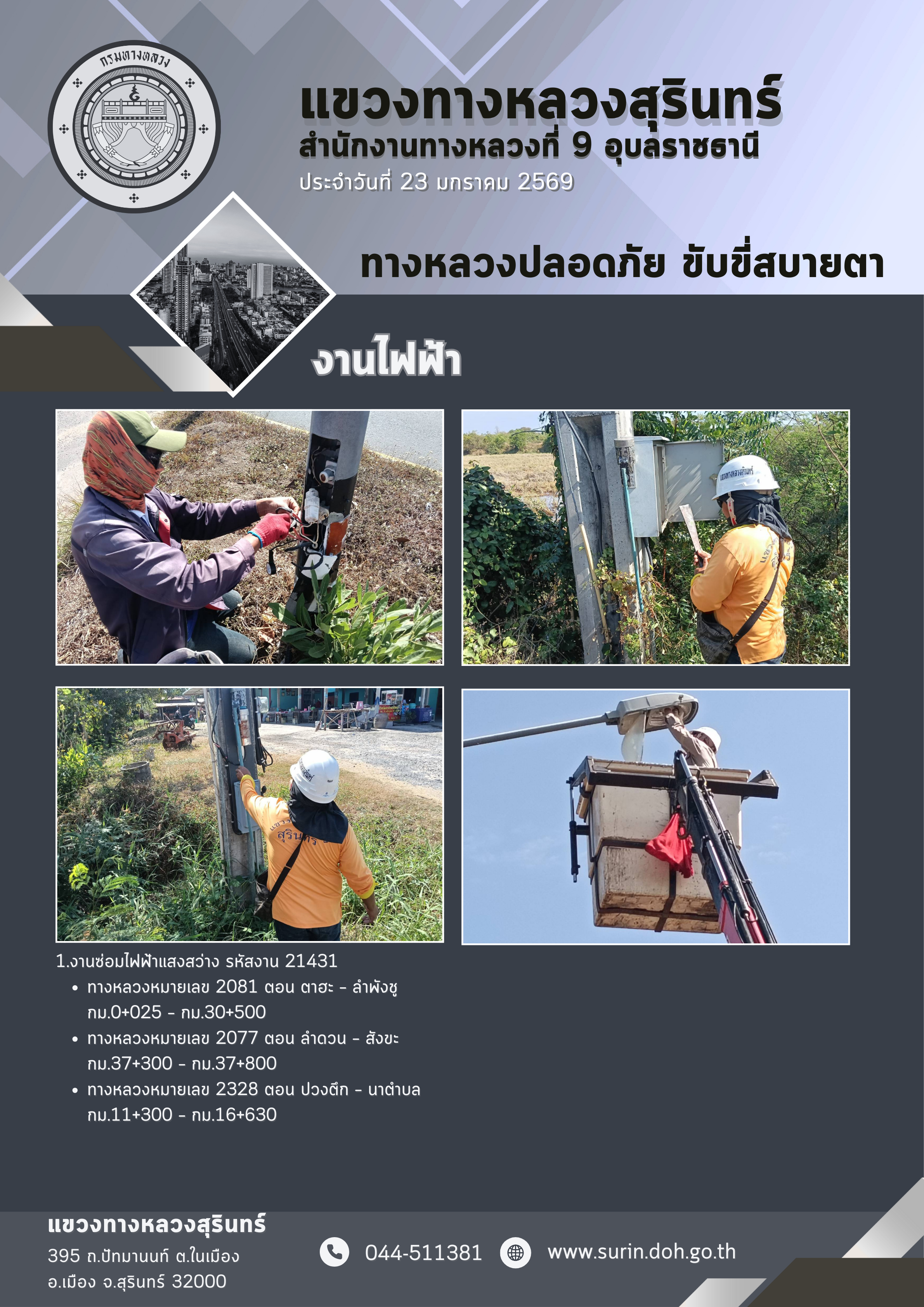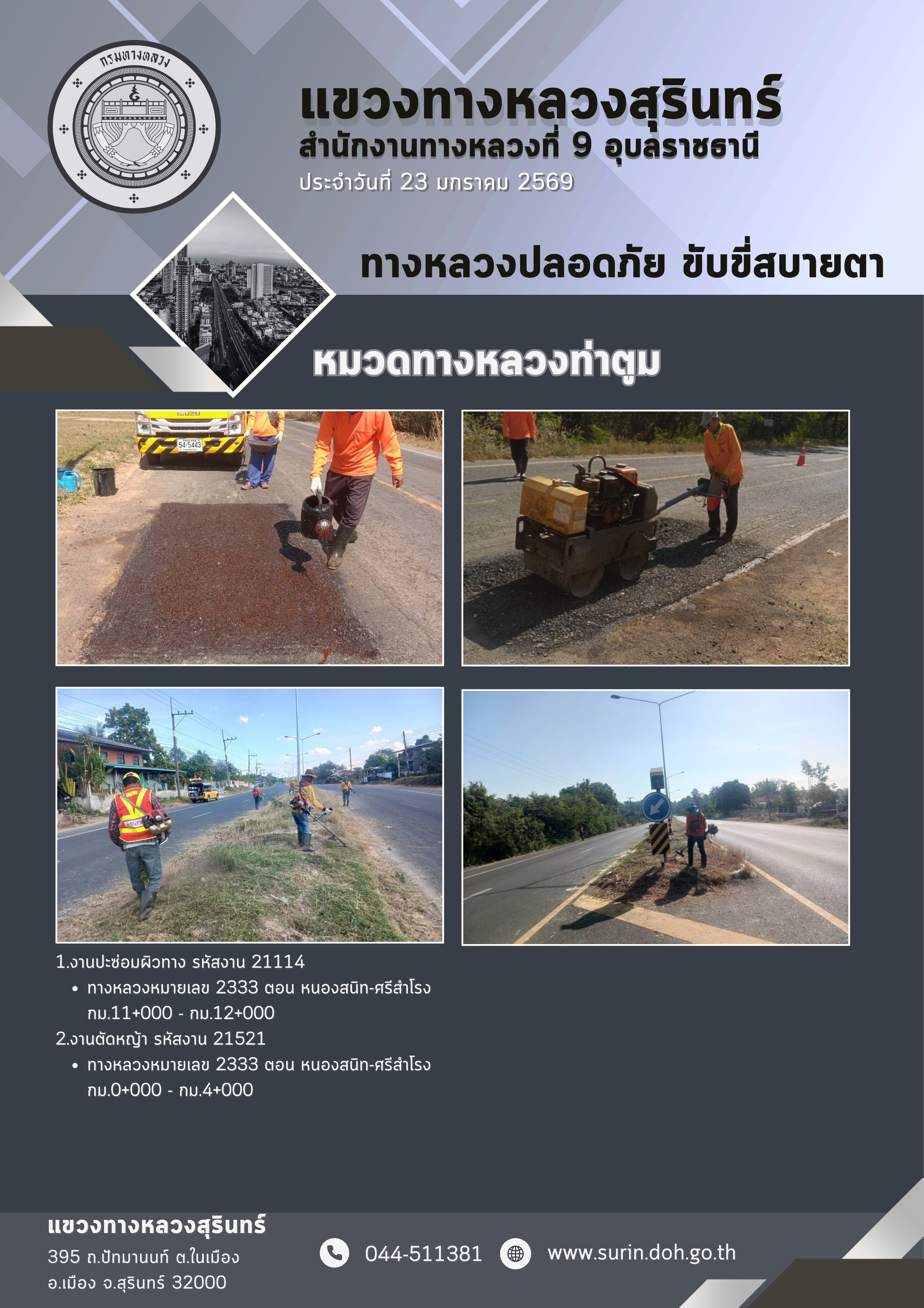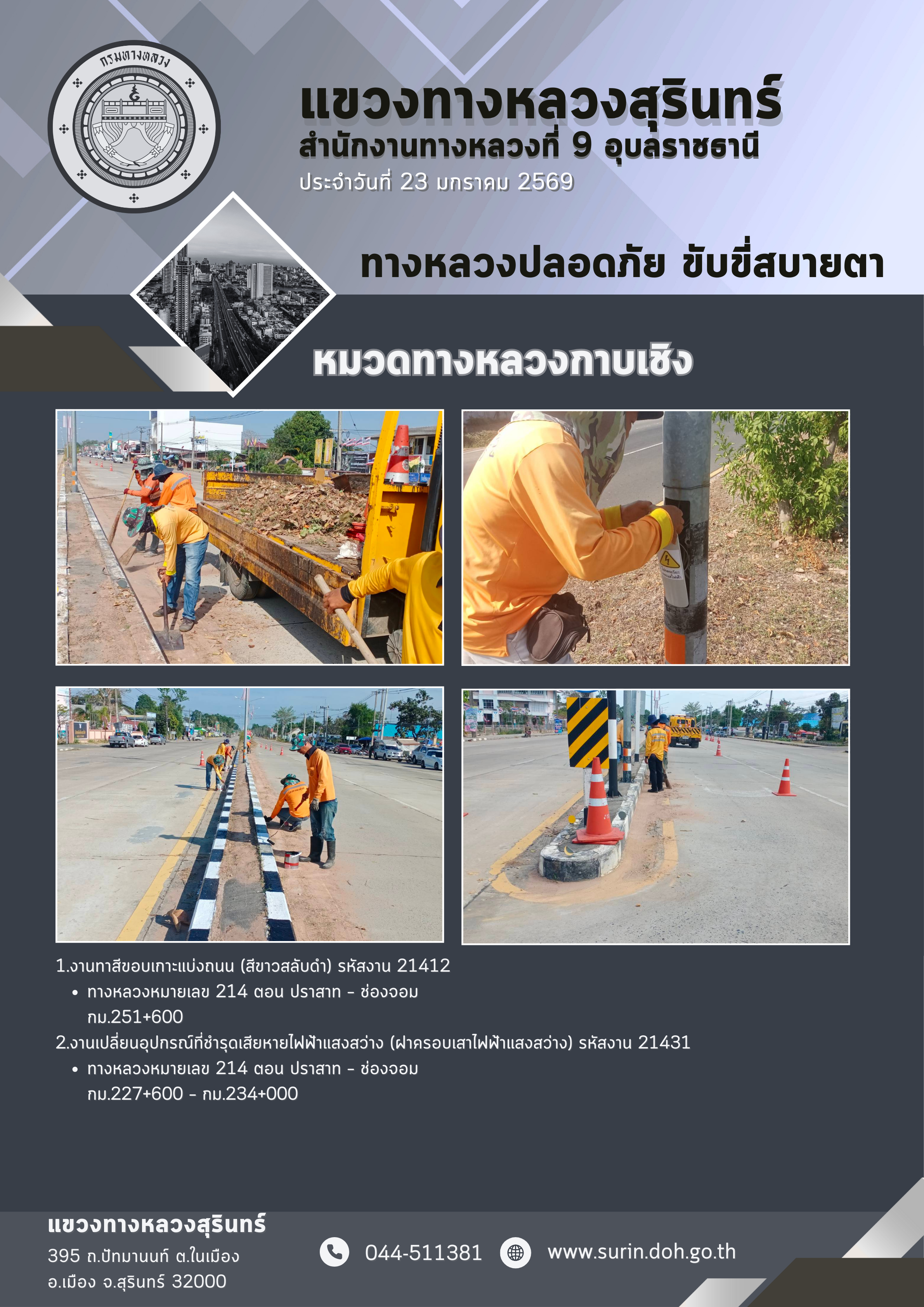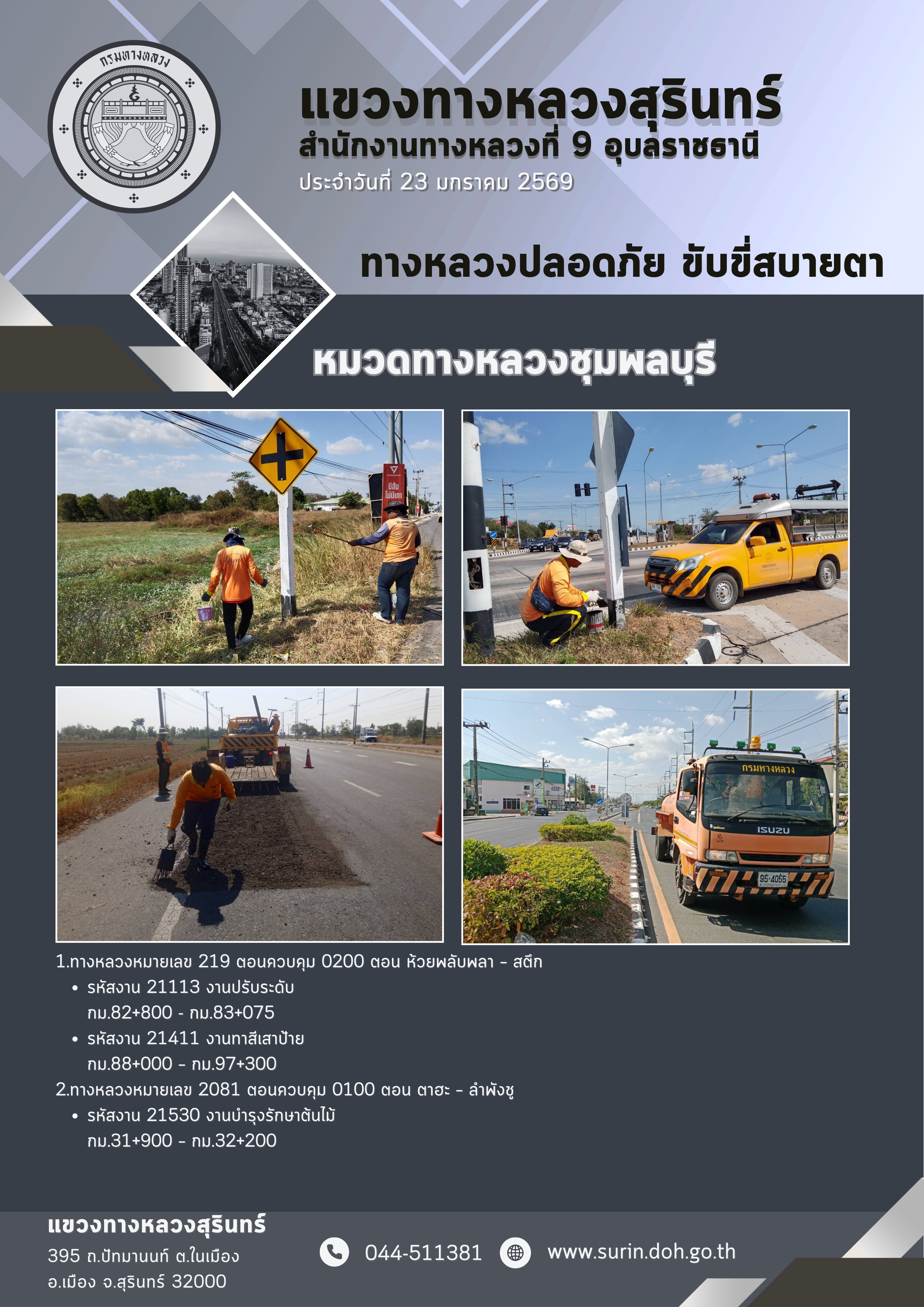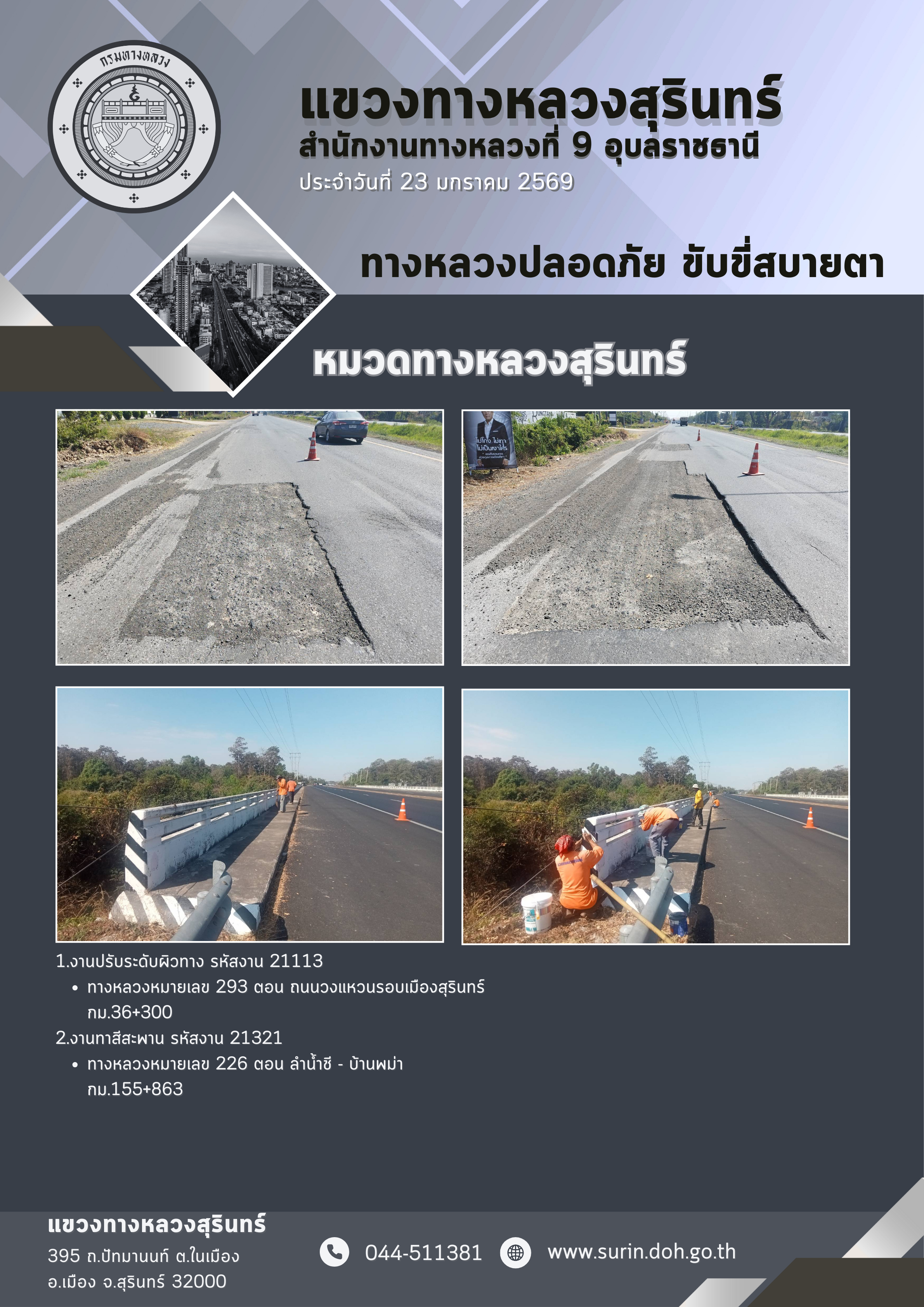 ข้อมูลข่าว : ทางหลวงปลอดภัย ขับขี่สบายตา 23 มกราคม 2569