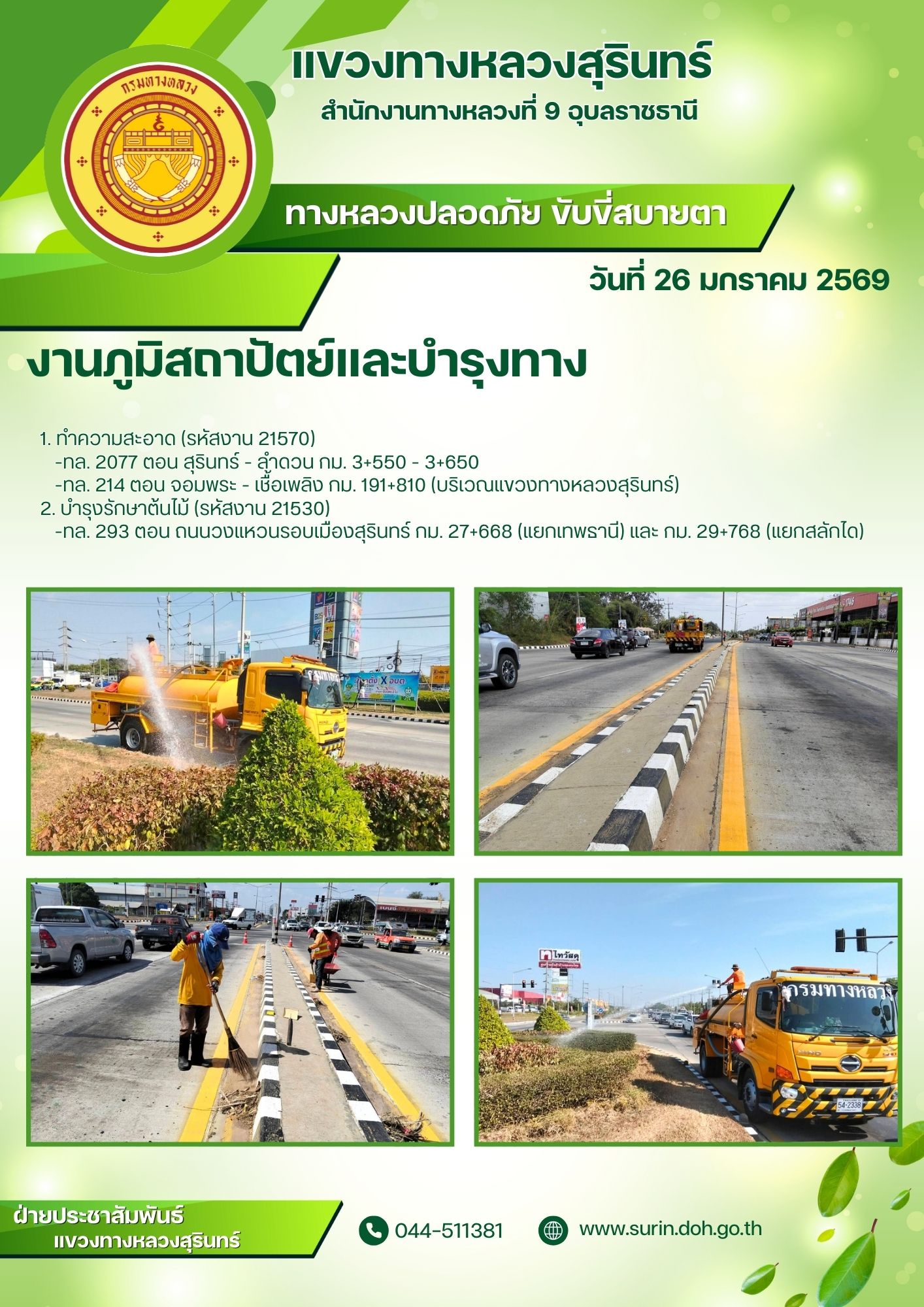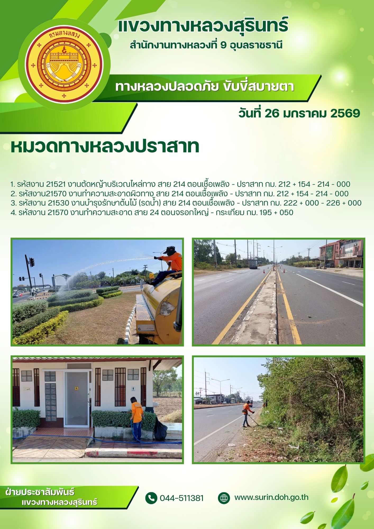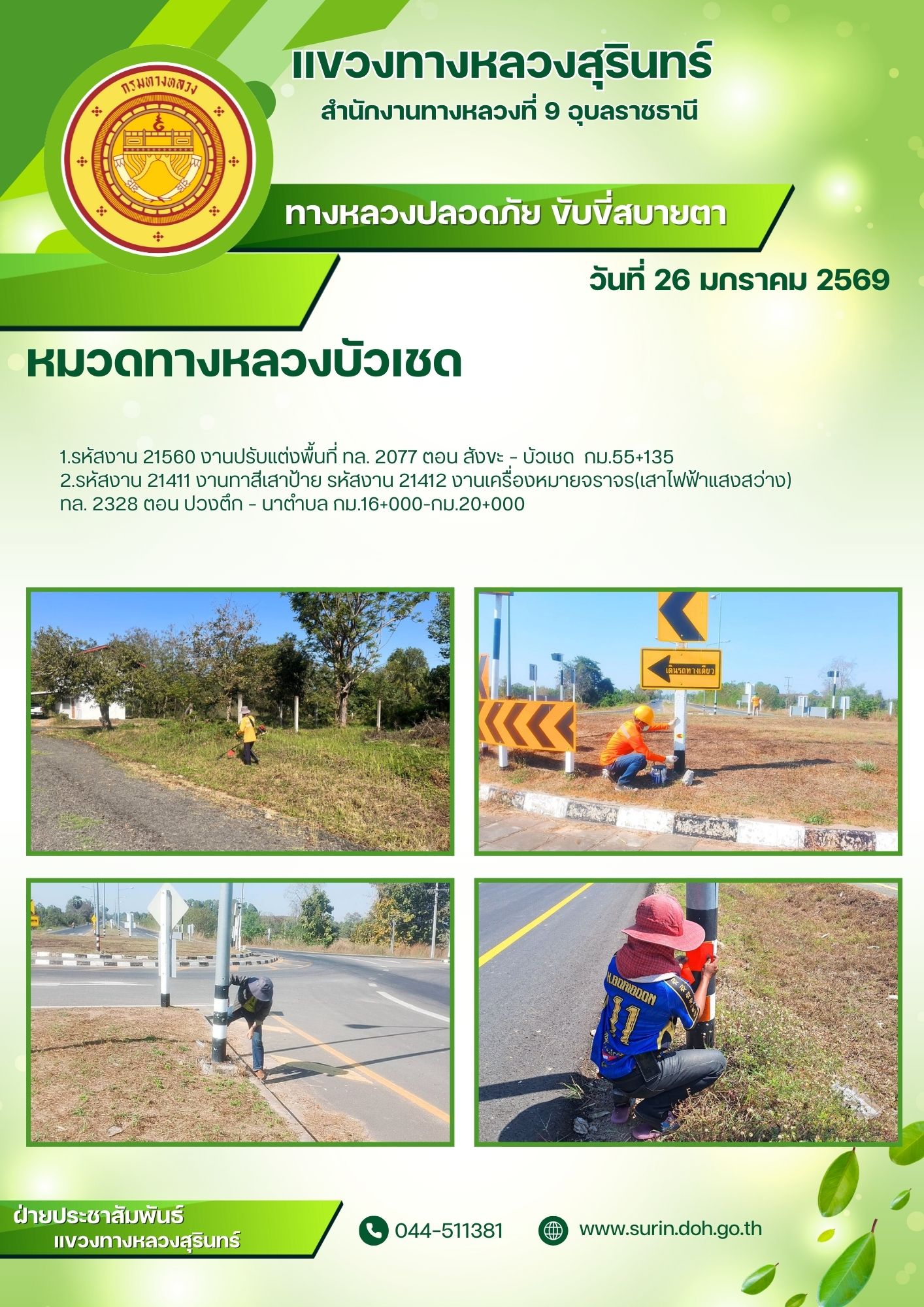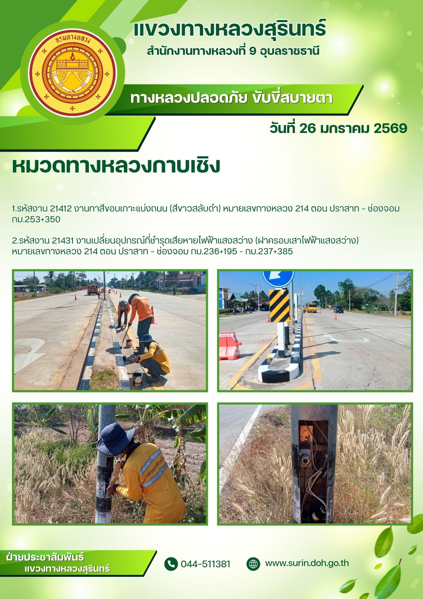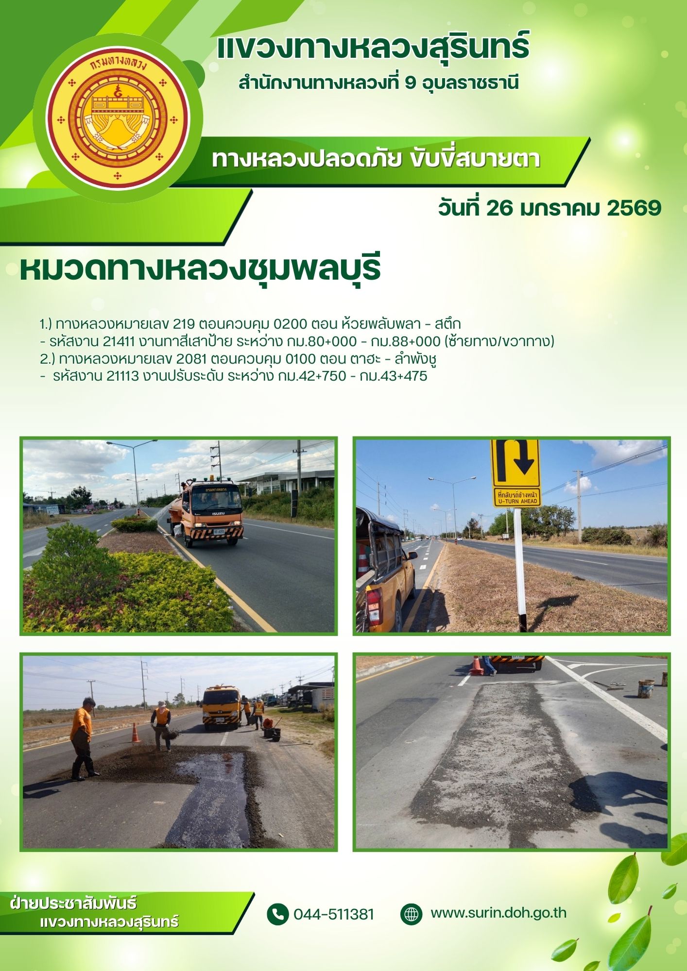 ข้อมูลข่าว : ทางหลวงปลอดภัย ขับขี่สบายตา 26 มกราคม 2569