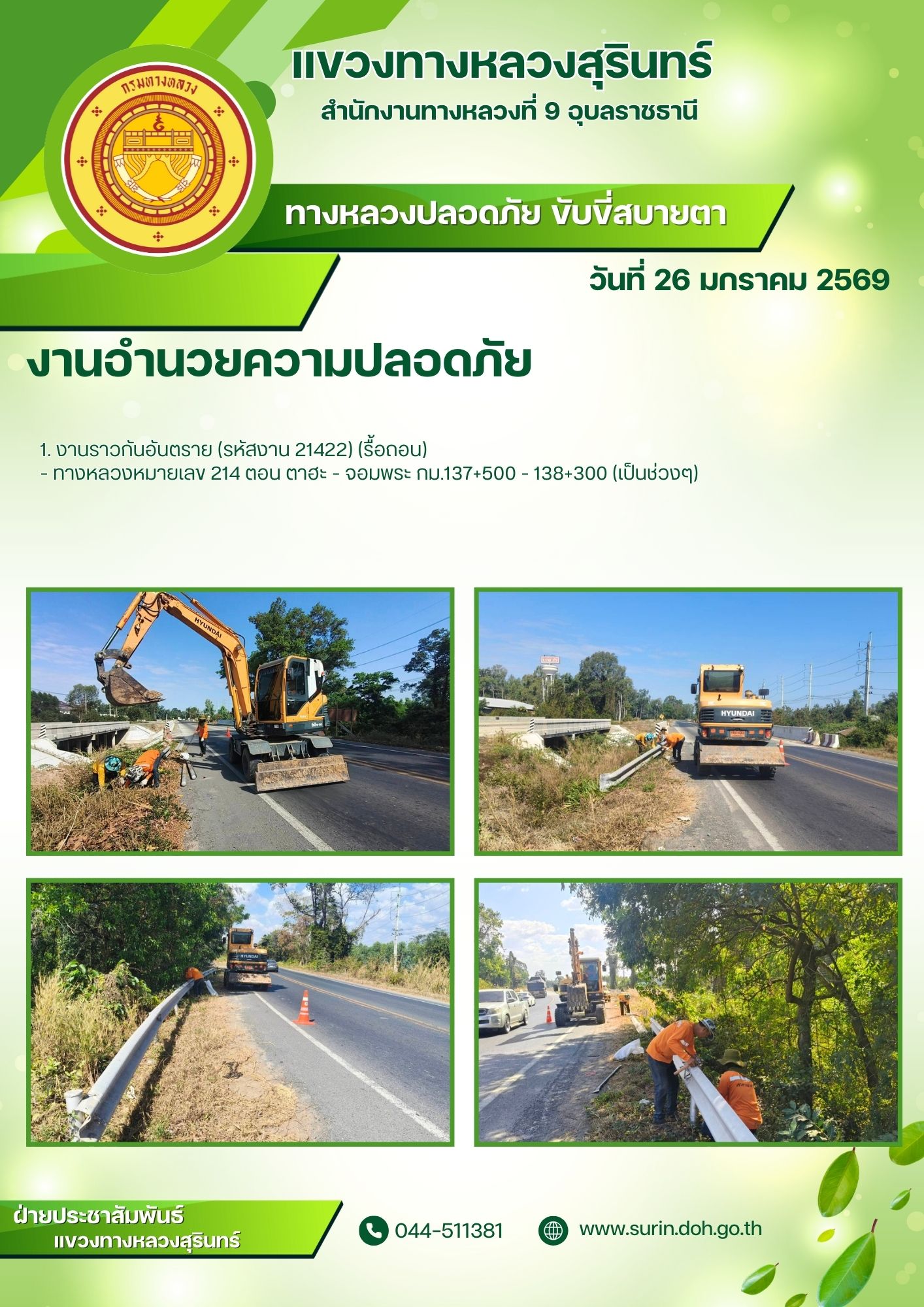 ทางหลวงปลอดภัย ขับขี่สบายตา 26 มกราคม 2569