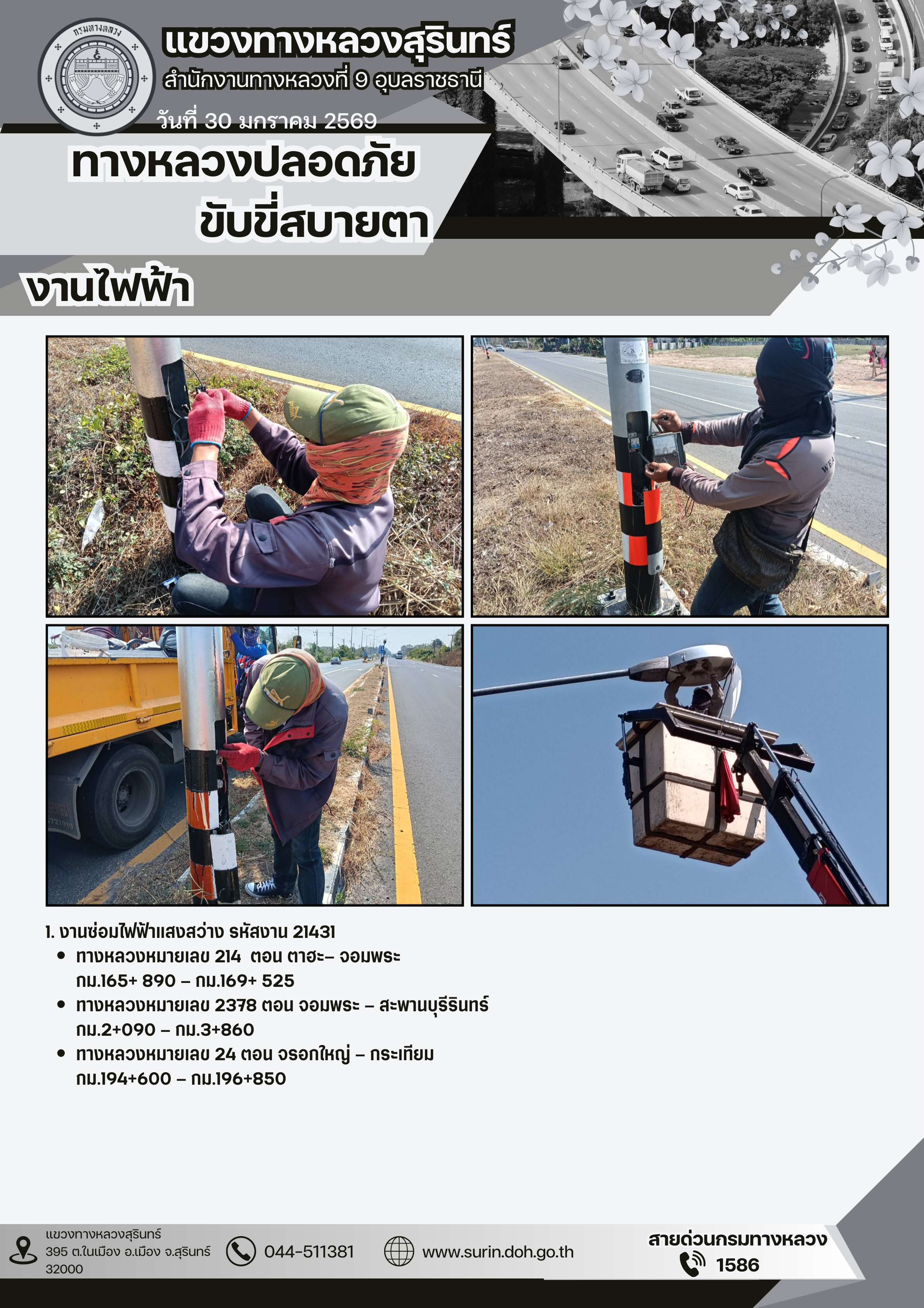ข้อมูลข่าว : ทางหลวงปลอดภัย ขับขี่สบายตา 30 มกราคม 2569