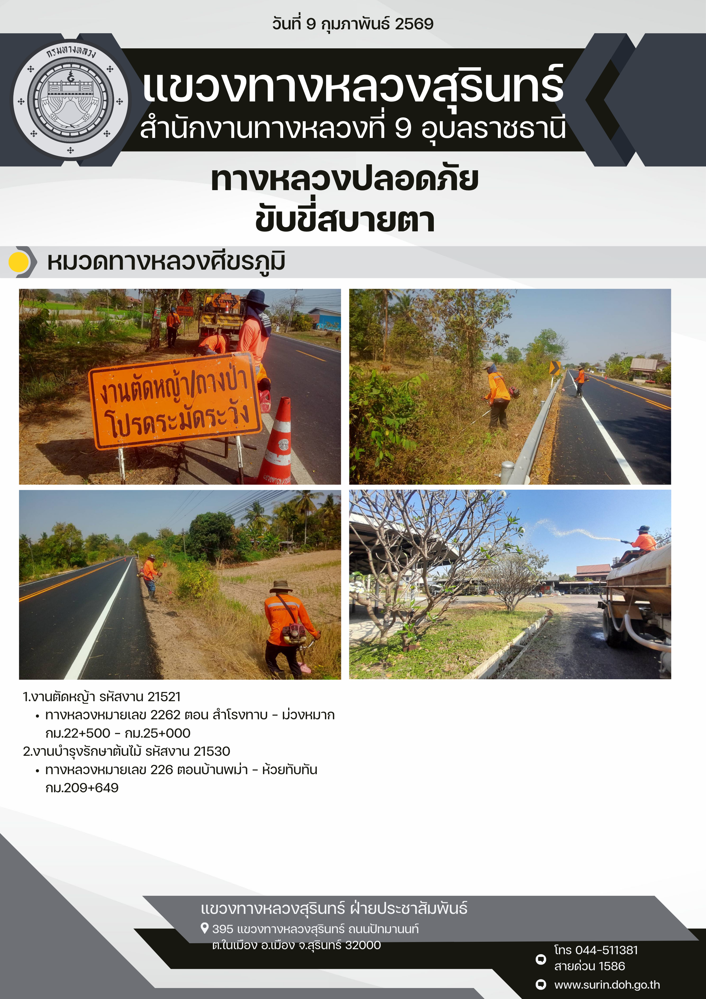 ข้อมูลข่าว : ทางหลวงปลอดภัย ขับขี่สบายตา 9 กุมภาพันธ์ 2569