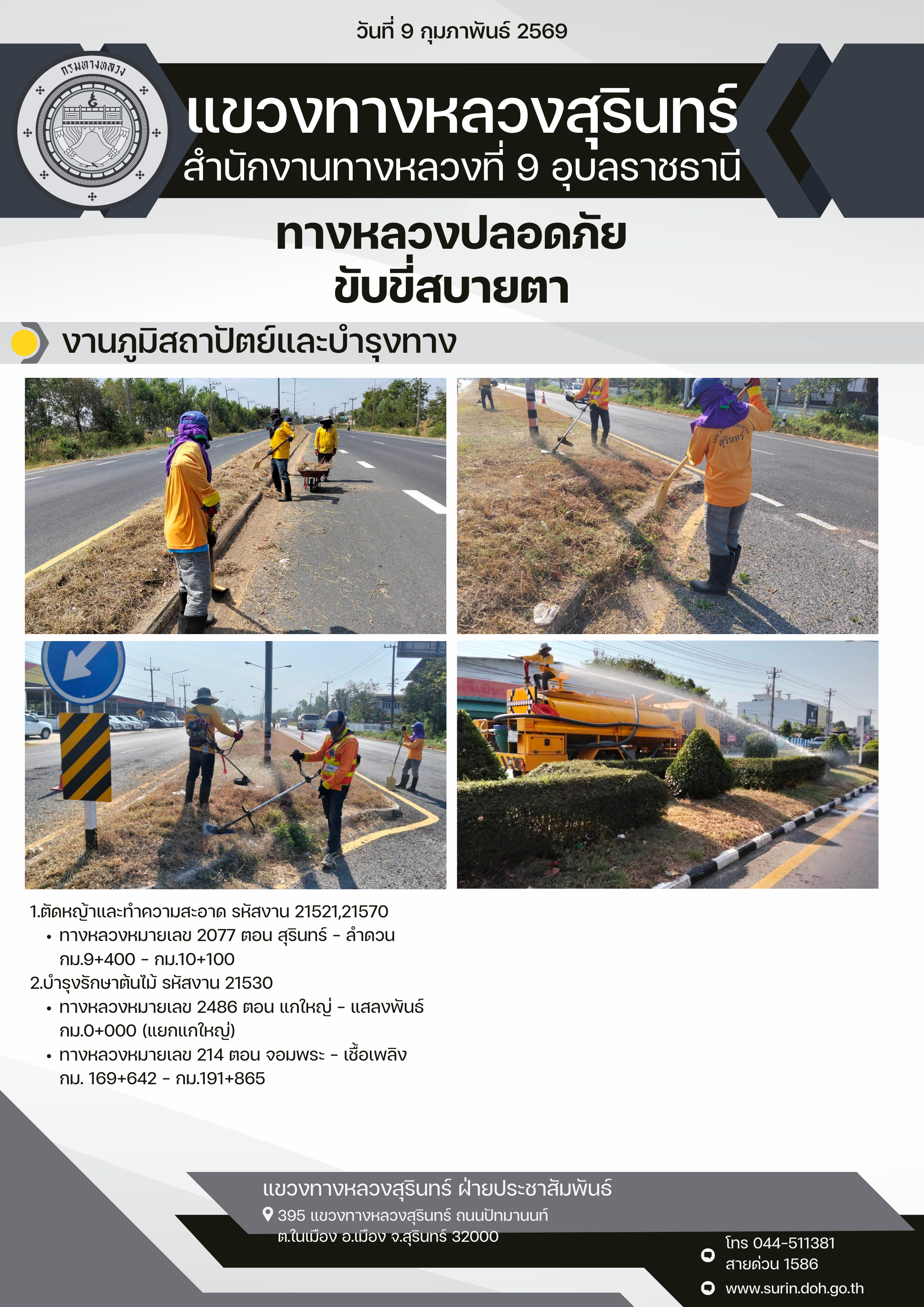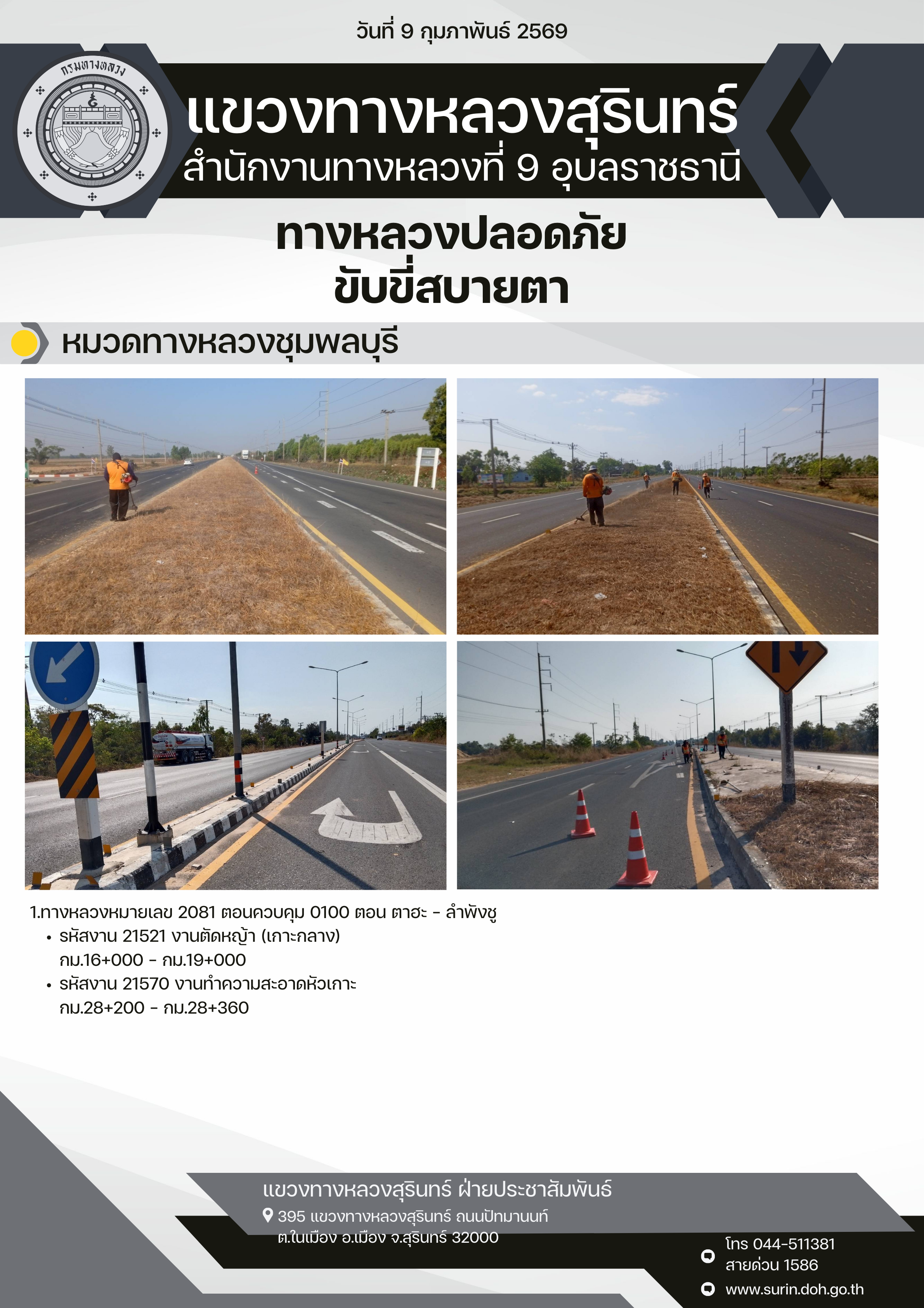 ทางหลวงปลอดภัย ขับขี่สบายตา 9 กุมภาพันธ์ 2569