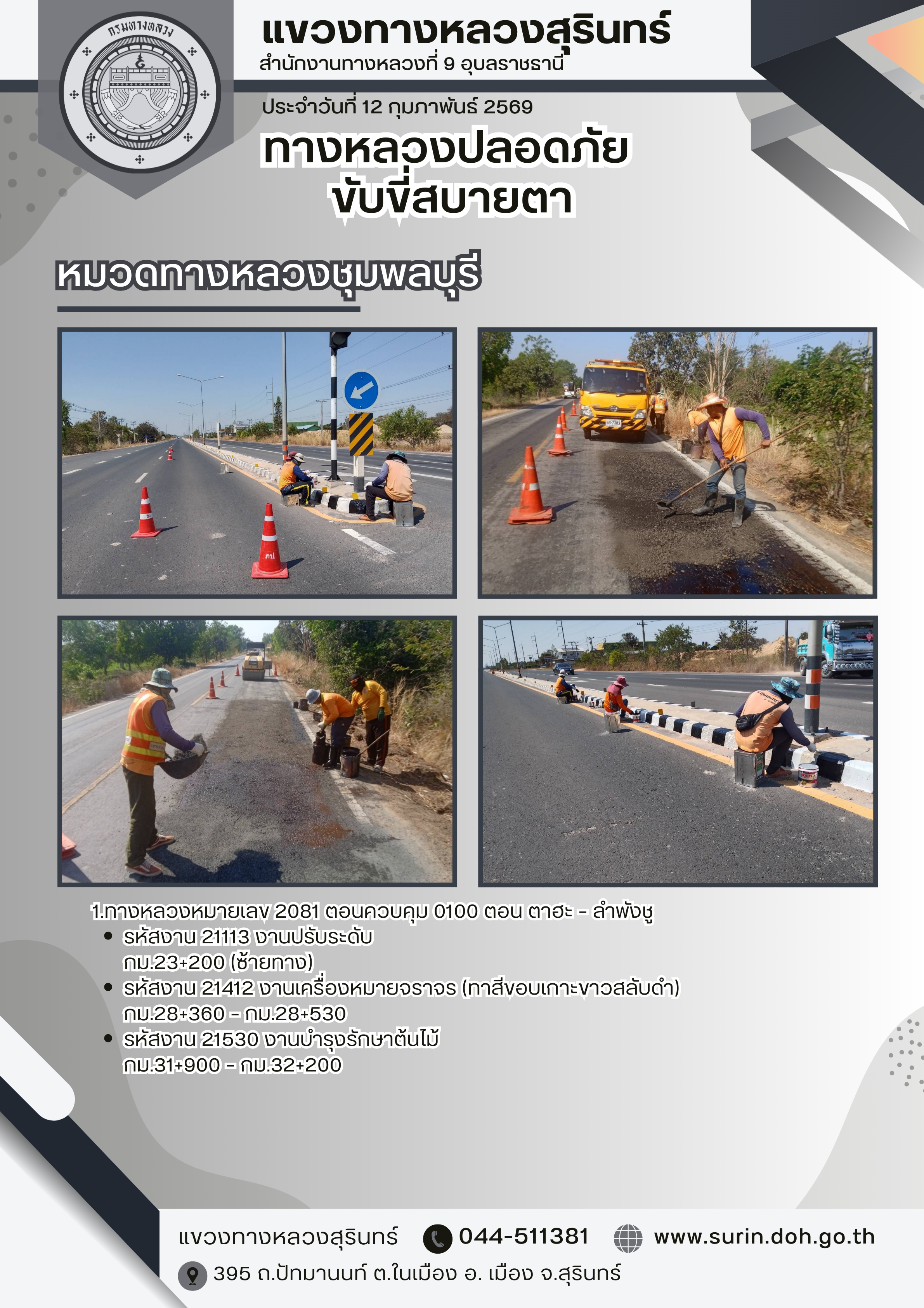 ทางหลวงปลอดภัย ขับขี่สบายตา 12 กุมภาพันธ์ 2569