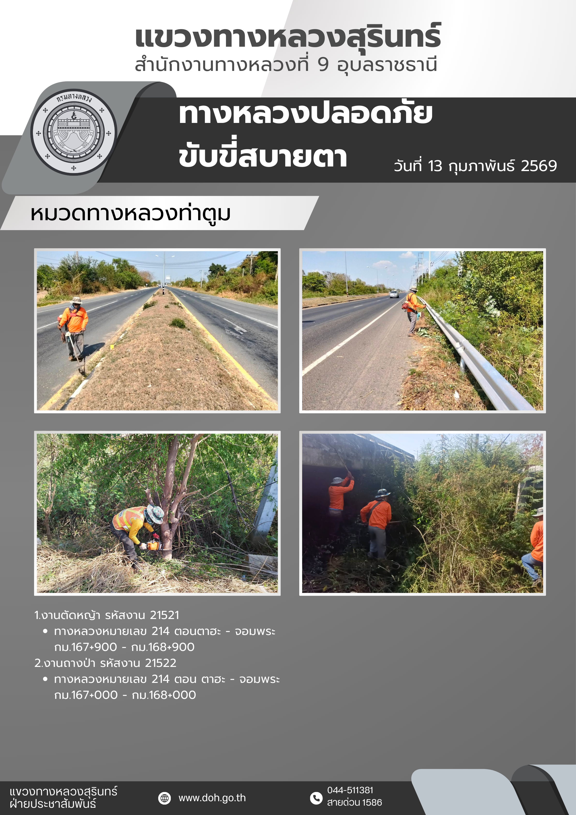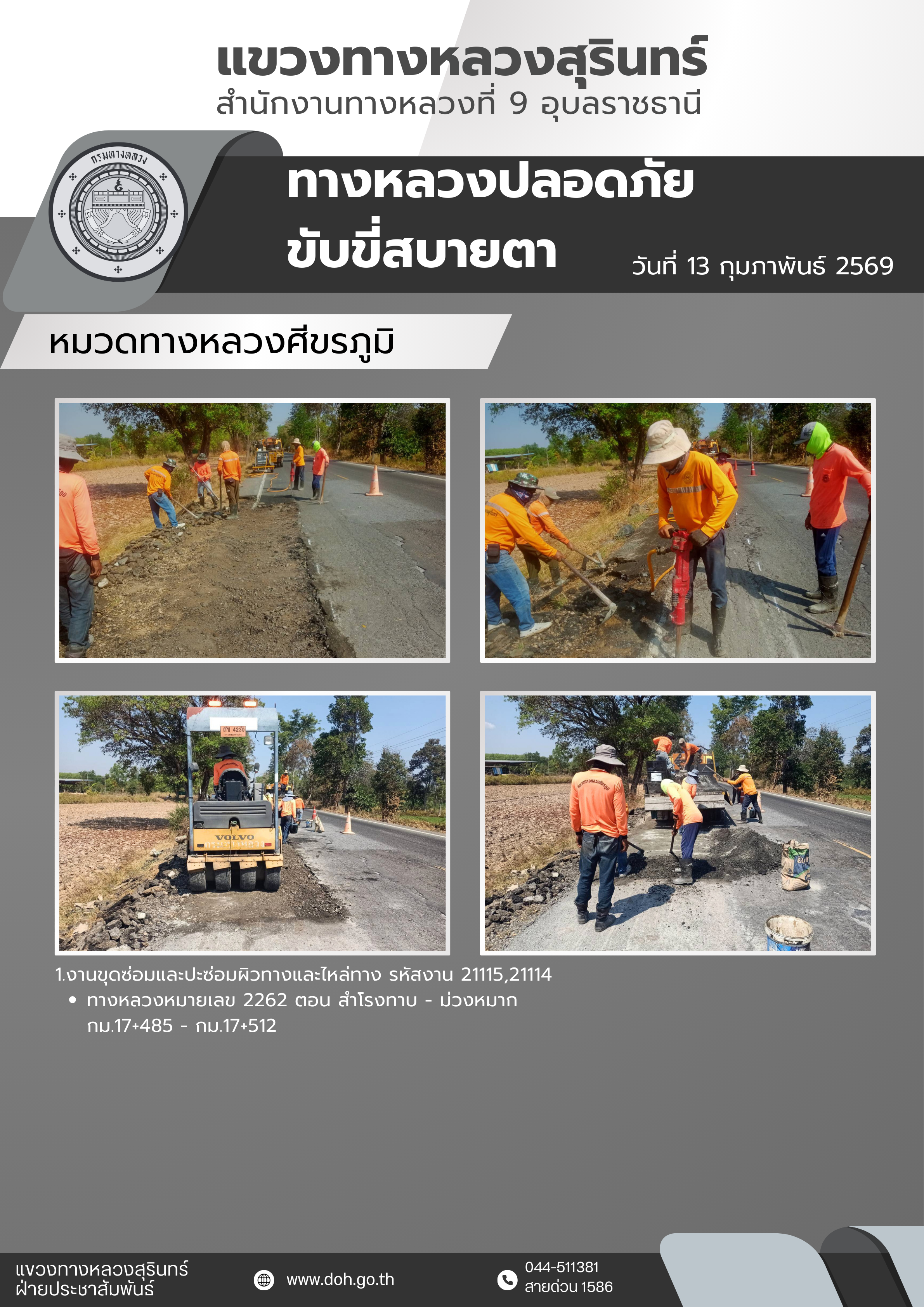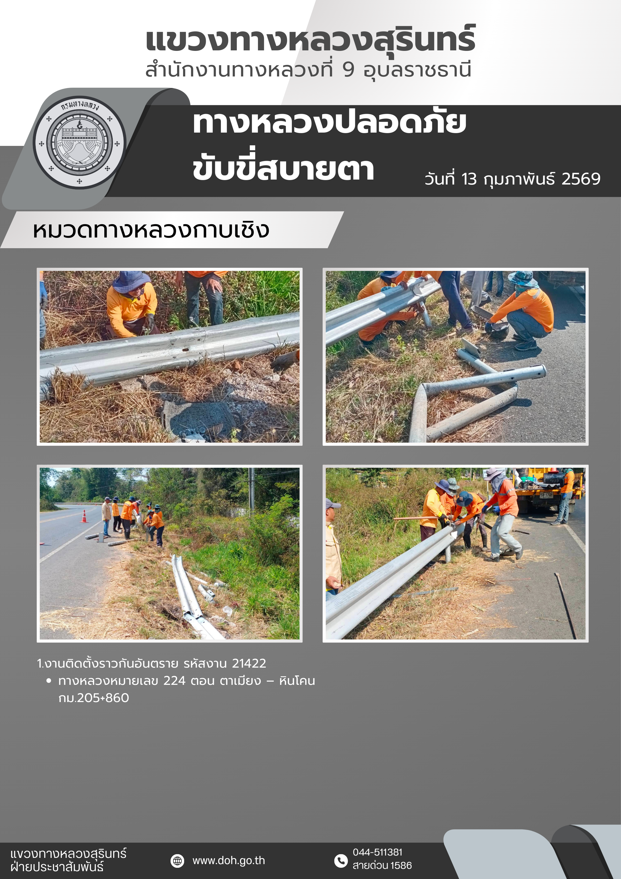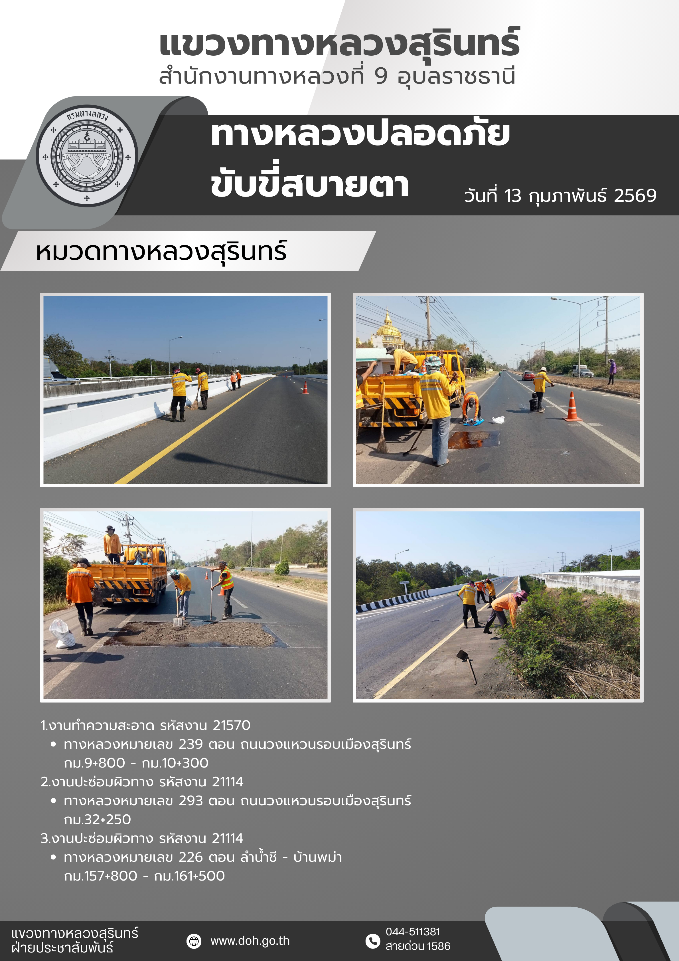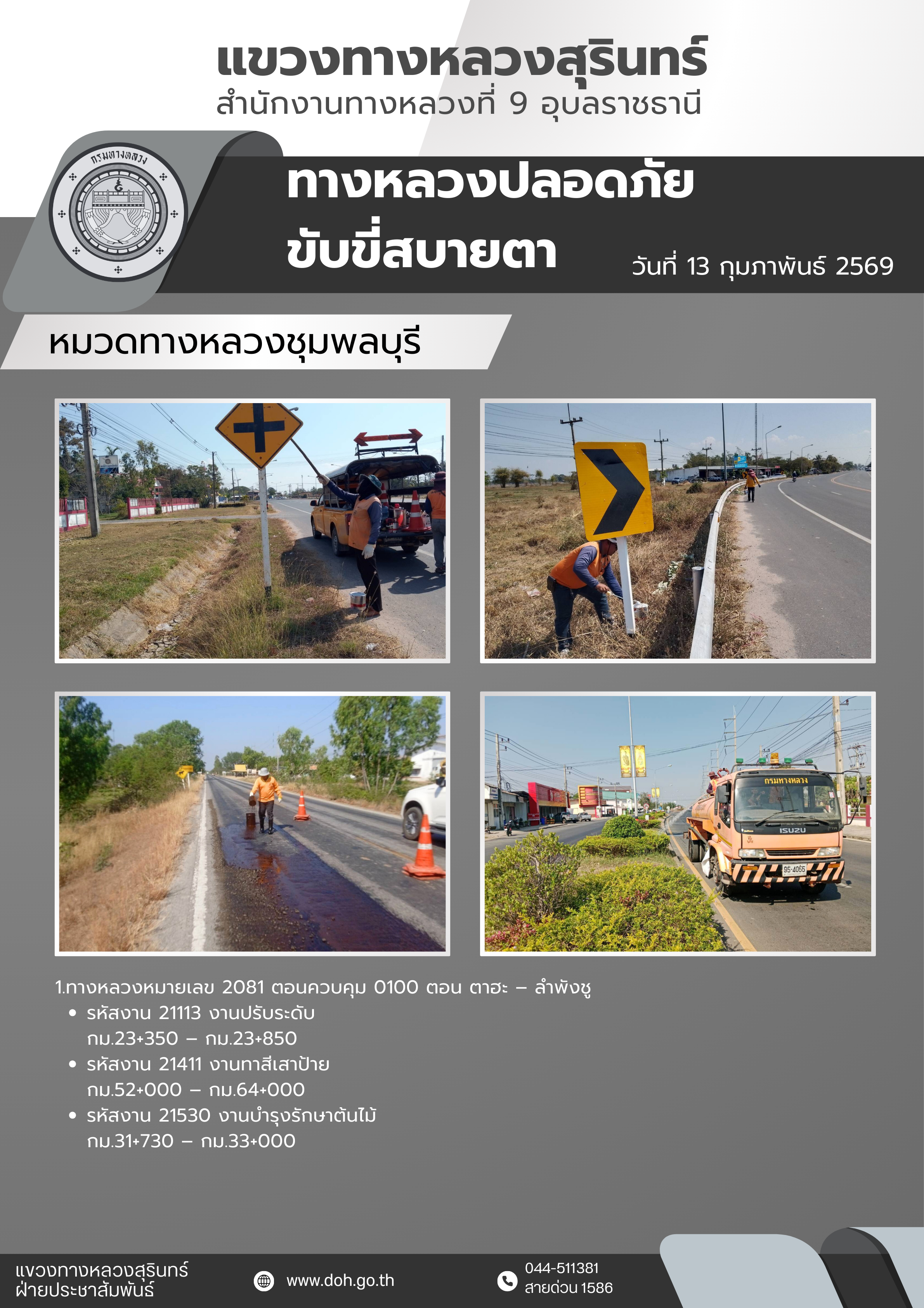 ทางหลวงปลอดภัย ขับขี่สบายตา 13 กุมภาพันธ์ 2569