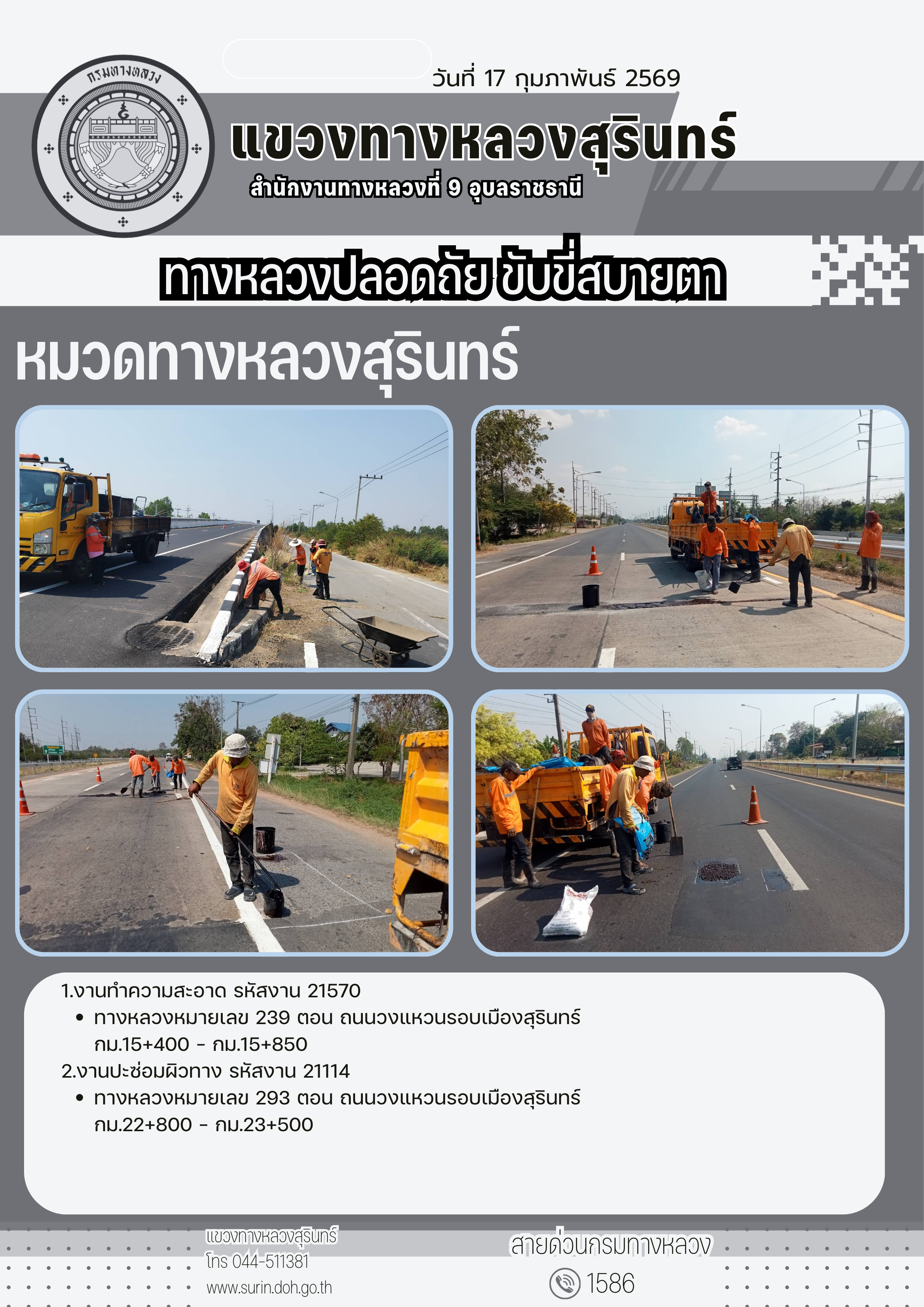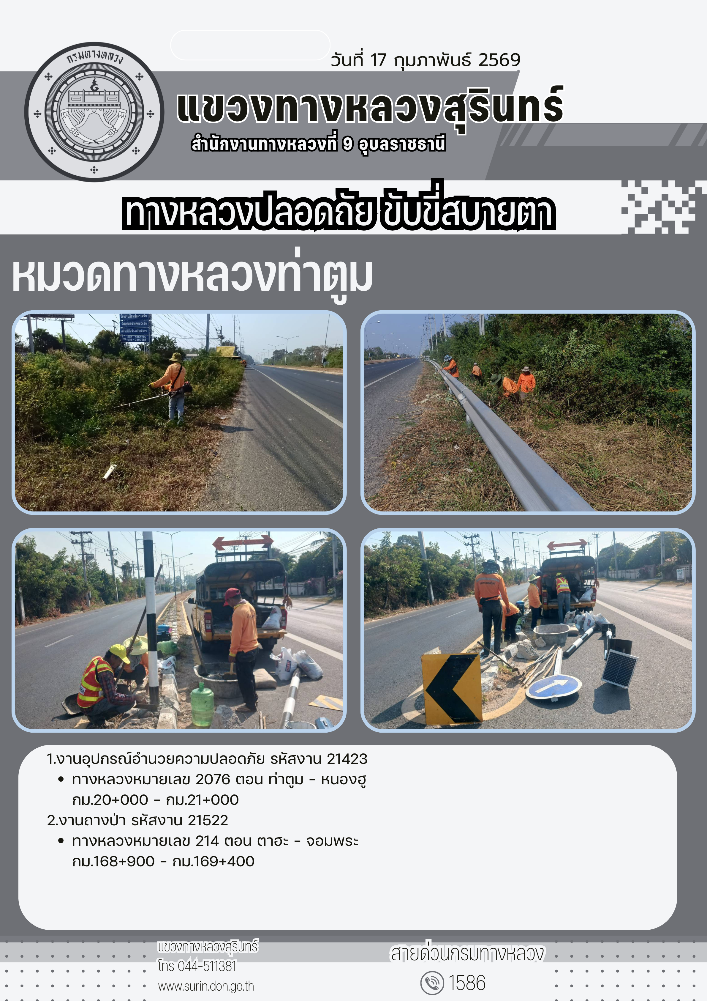 ทางหลวงปลอดภัย ขับขี่สบายตา 17 กุมภาพันธ์ 2569