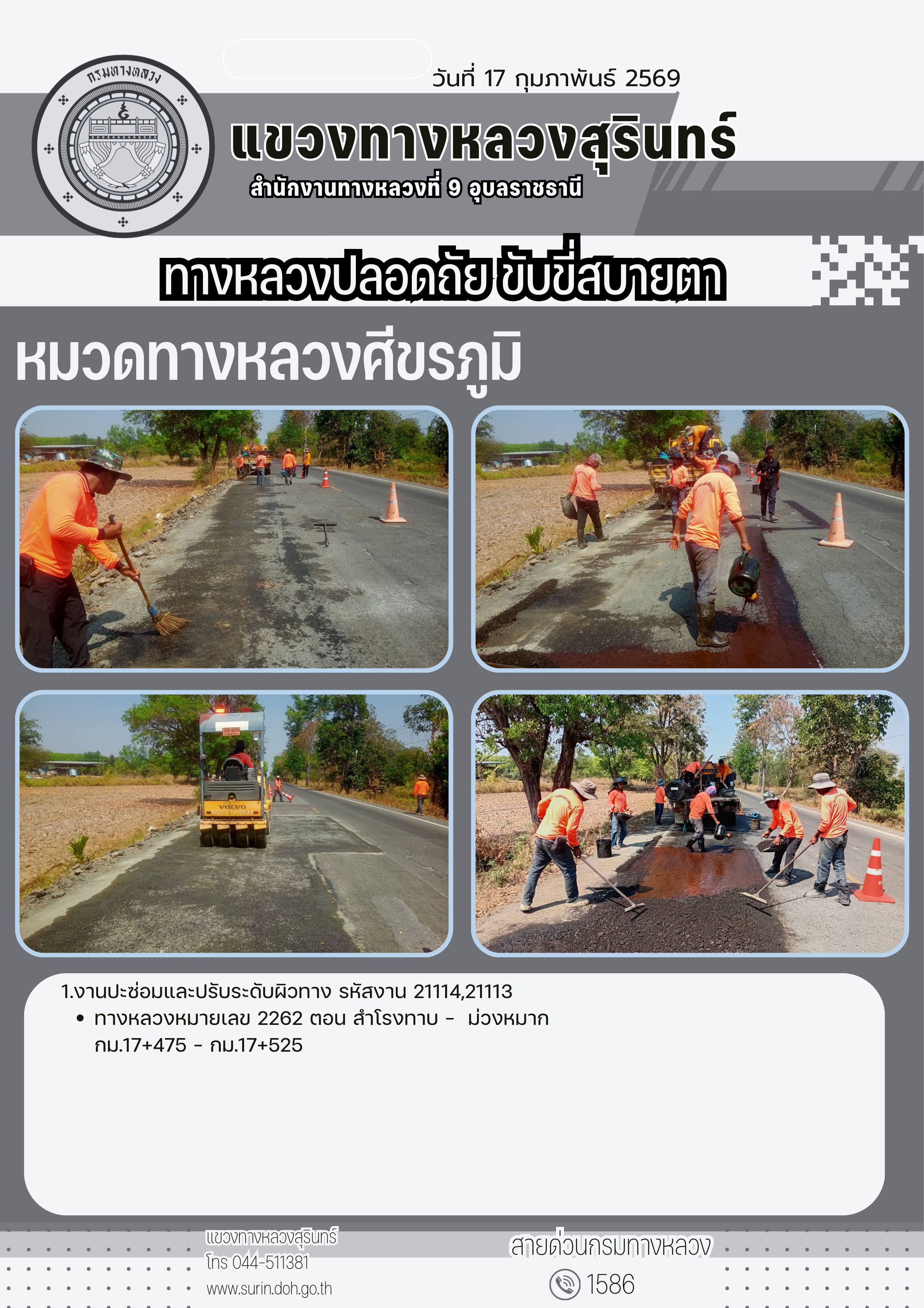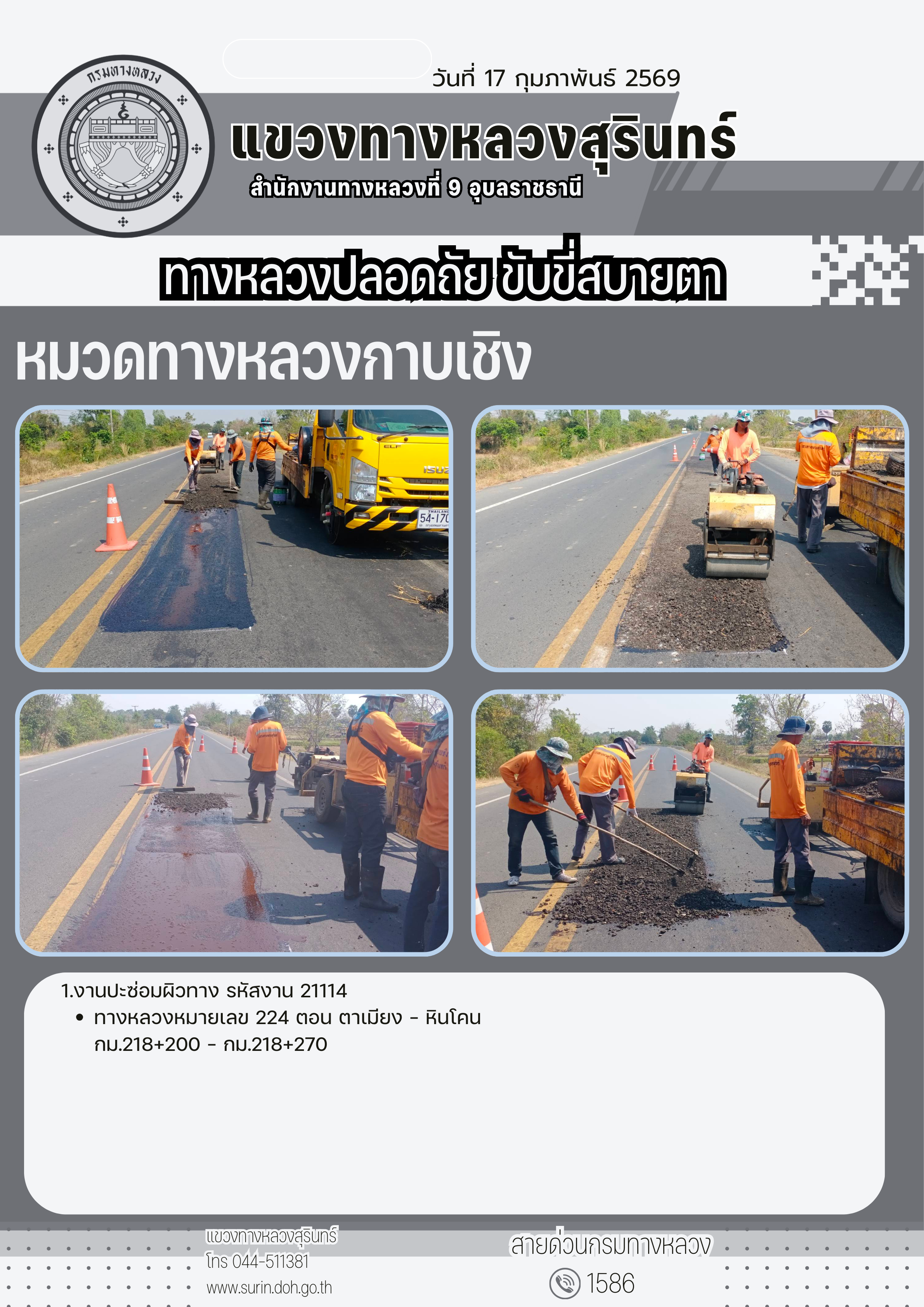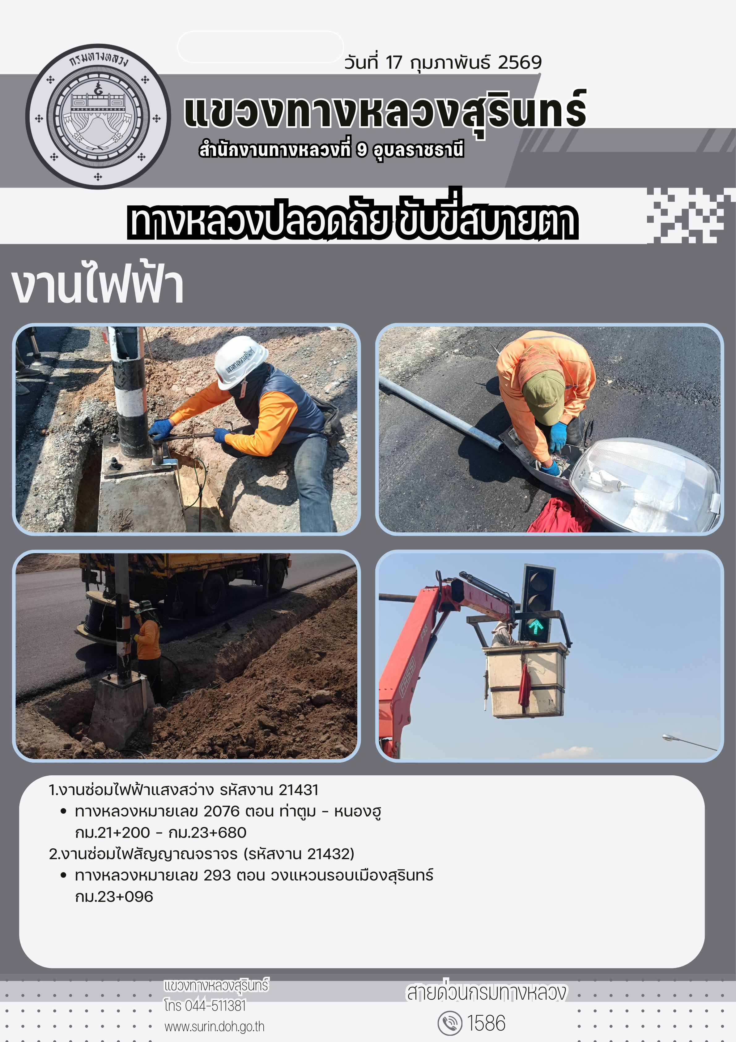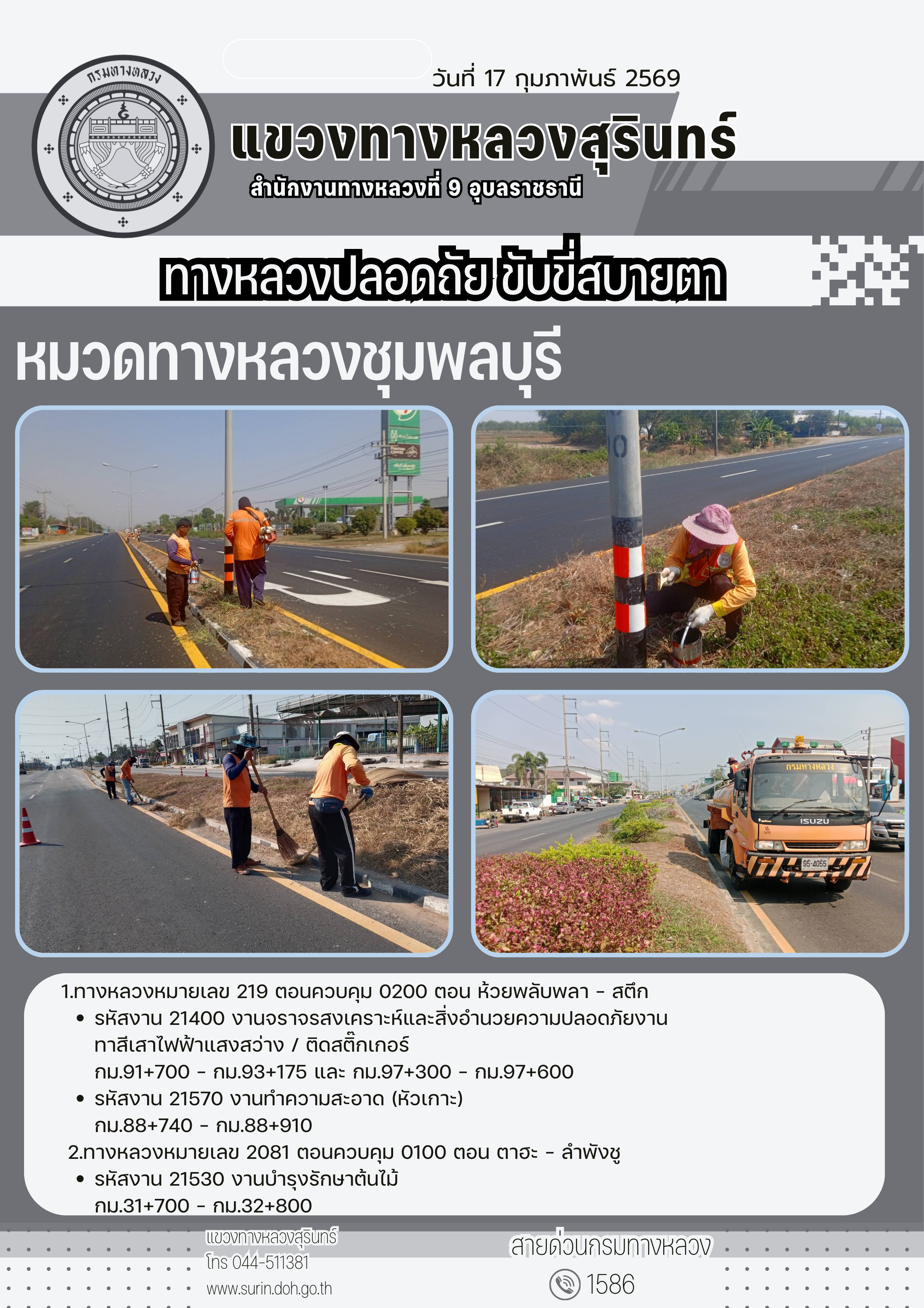 ข้อมูลข่าว : ทางหลวงปลอดภัย ขับขี่สบายตา 17 กุมภาพันธ์ 2569