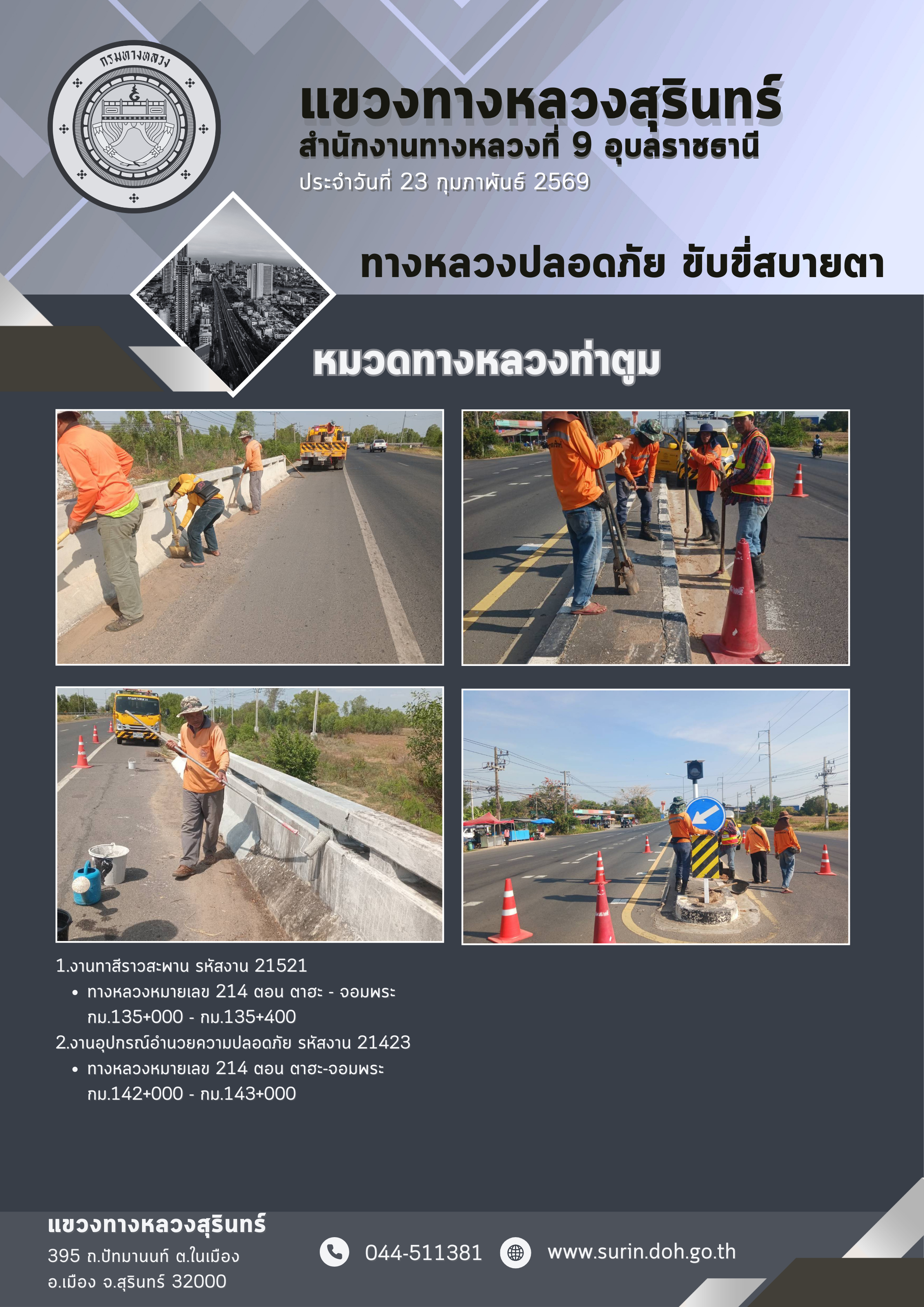 ทางหลวงปลอดภัย ขับขี่สบายตา 23 กุมภาพันธ์ 2569