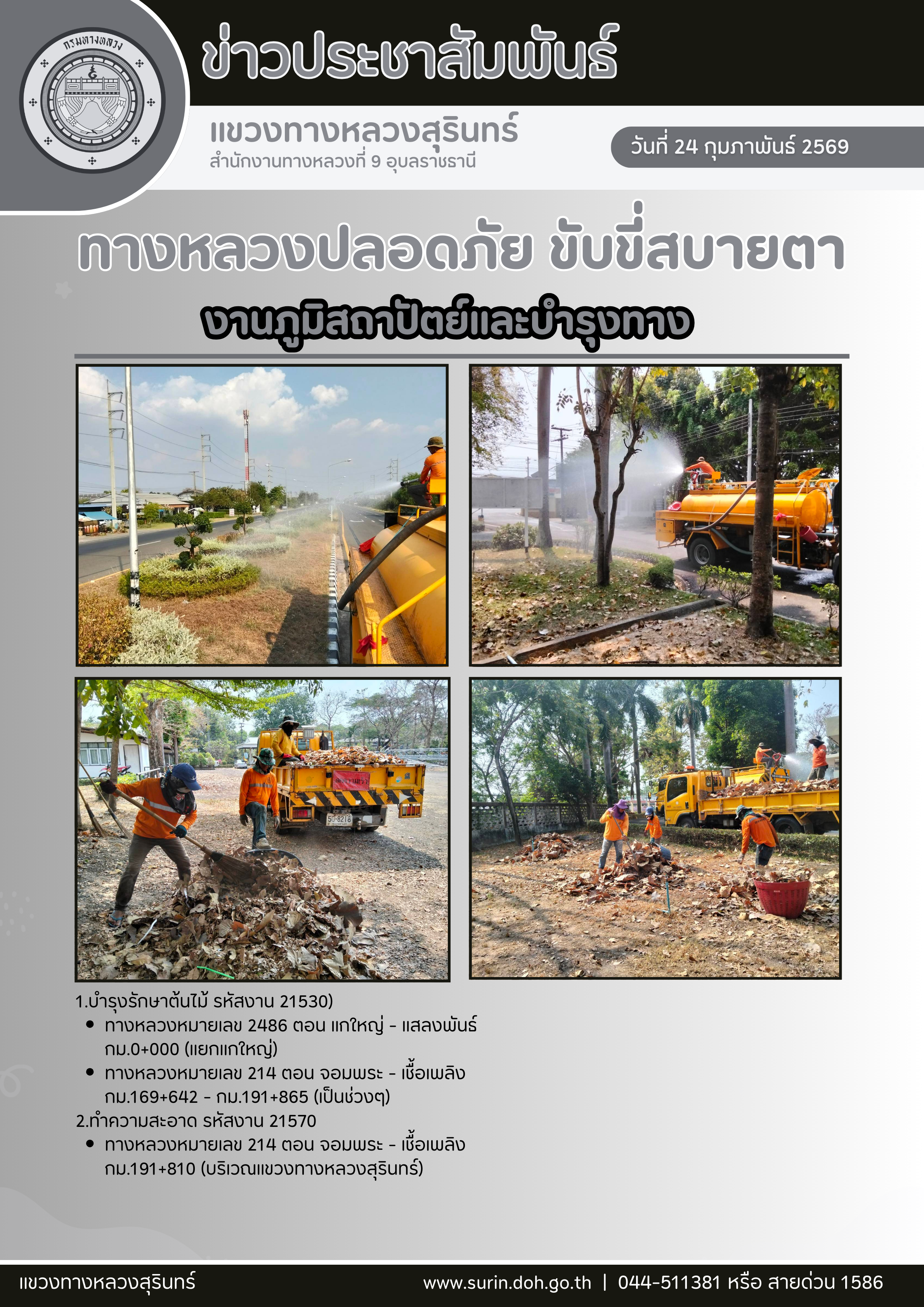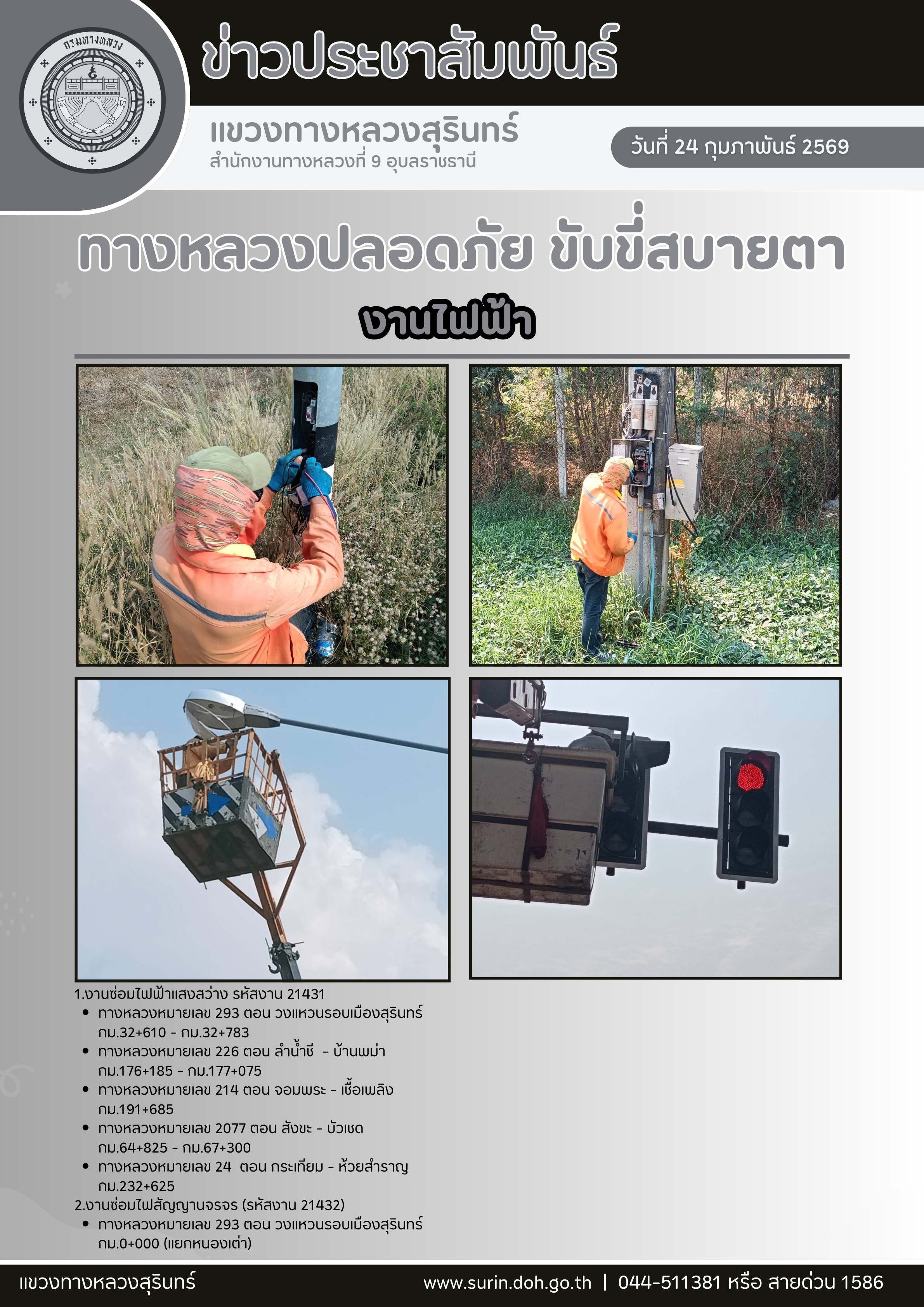 ข้อมูลข่าว : ทางหลวงปลอดภัย ขับขี่สบายตา 24 กุมภาพันธ์ 2569