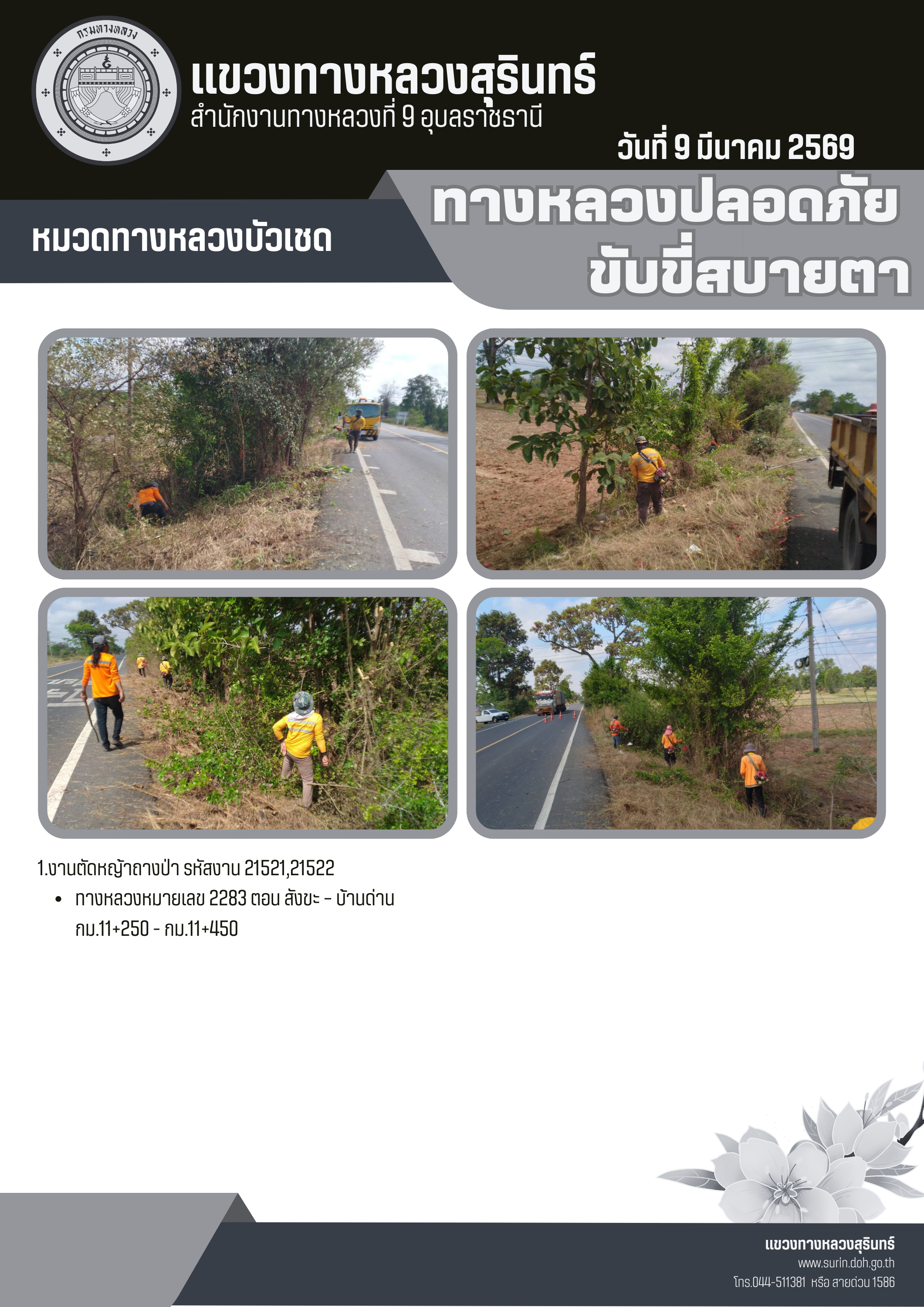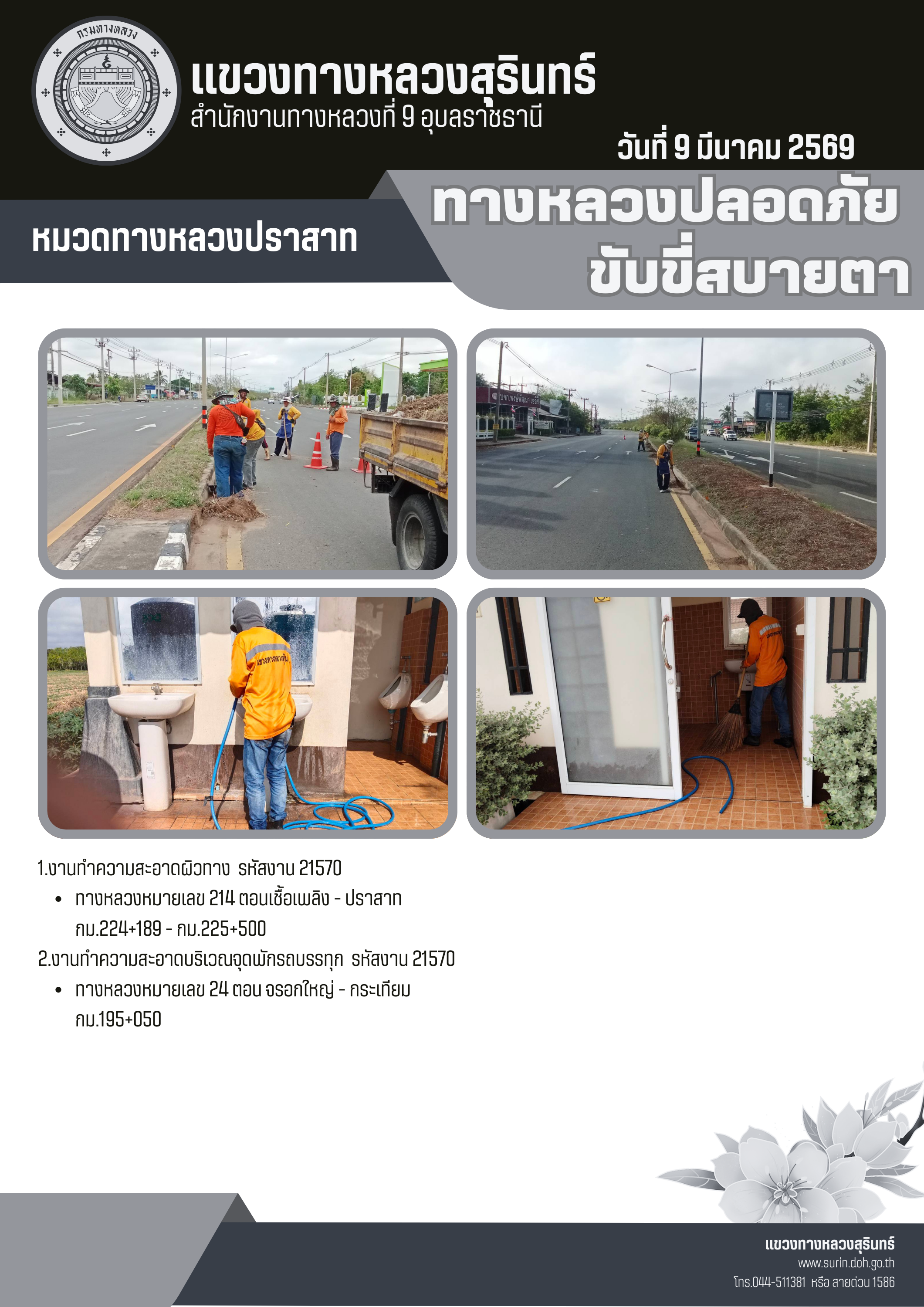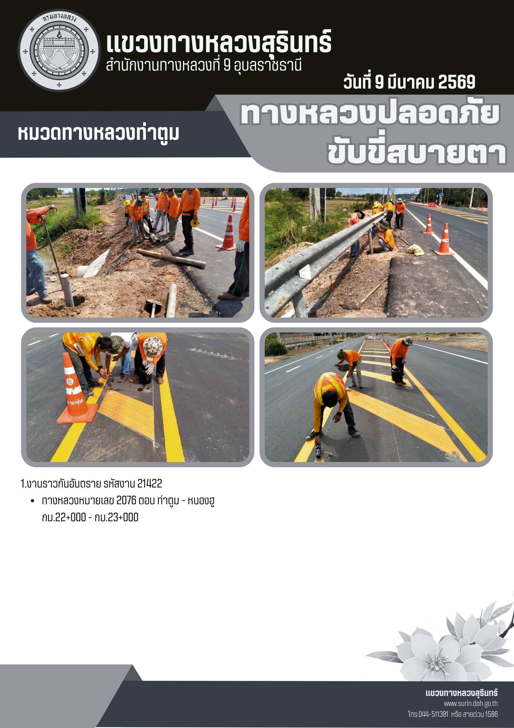 ทางหลวงปลอดภัย ขับขี่สบายตา 9 มีนาคม 2569