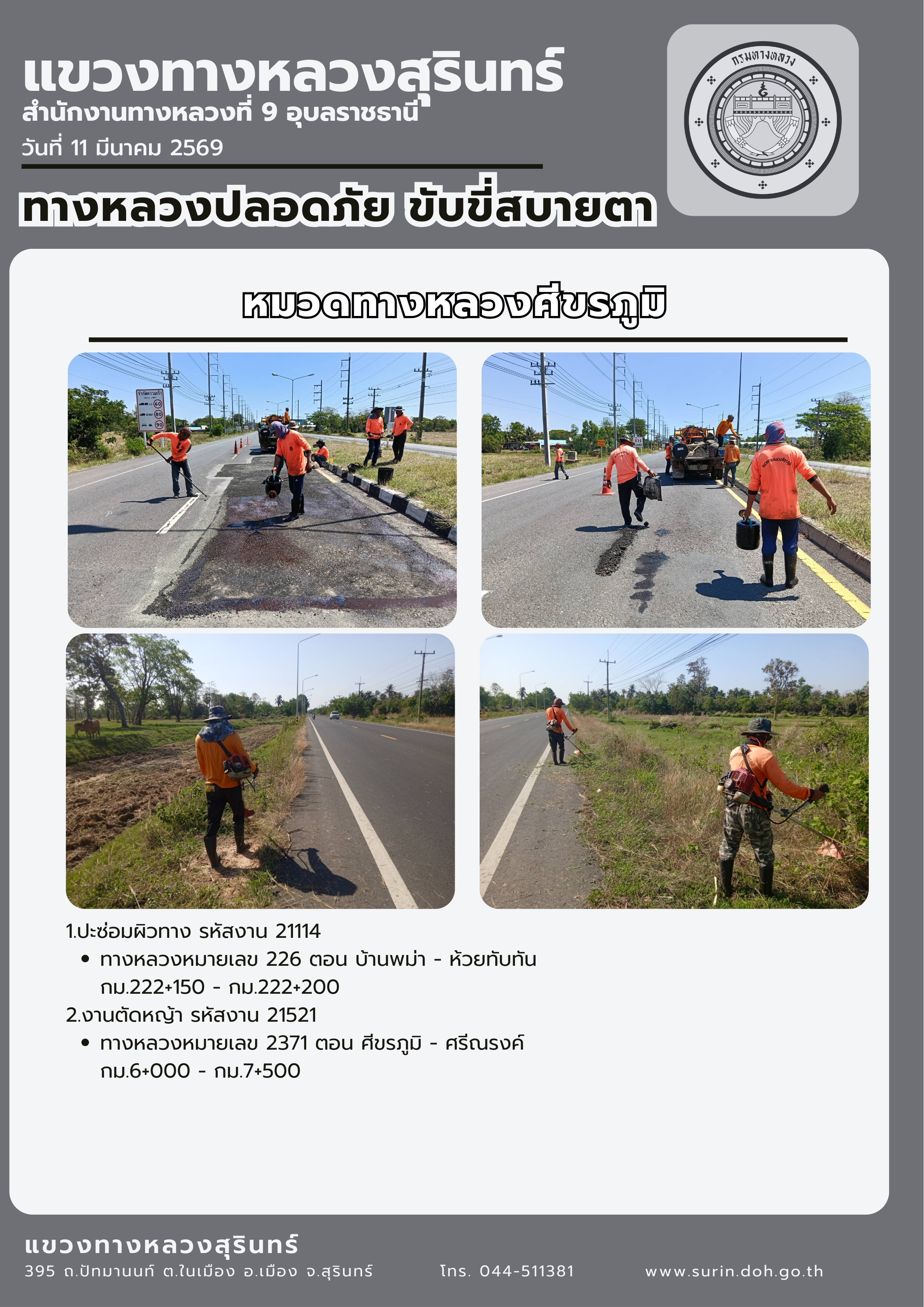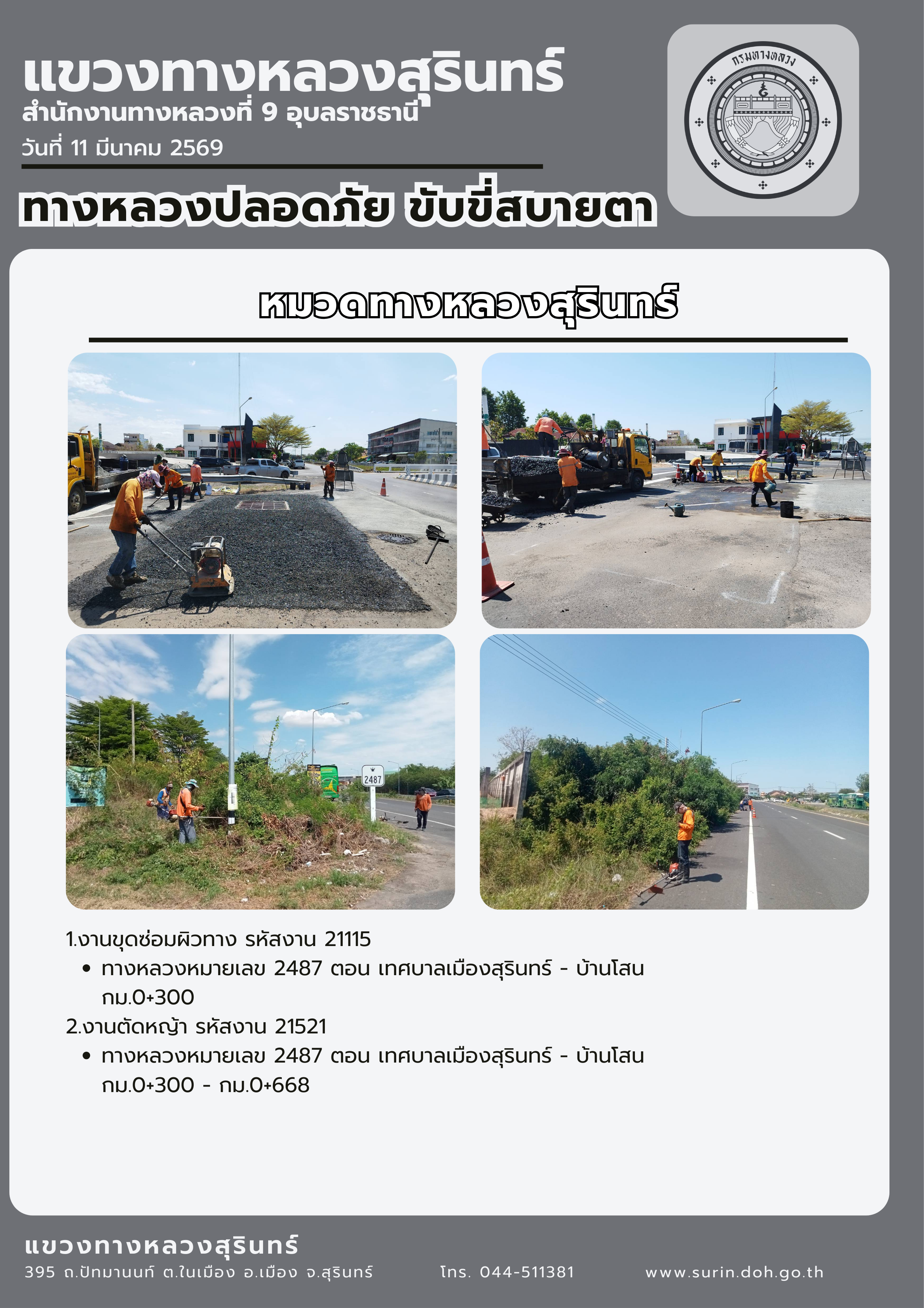 ทางหลวงปลอดภัย ขับขี่สบายตา 11 มีนาคม 2569