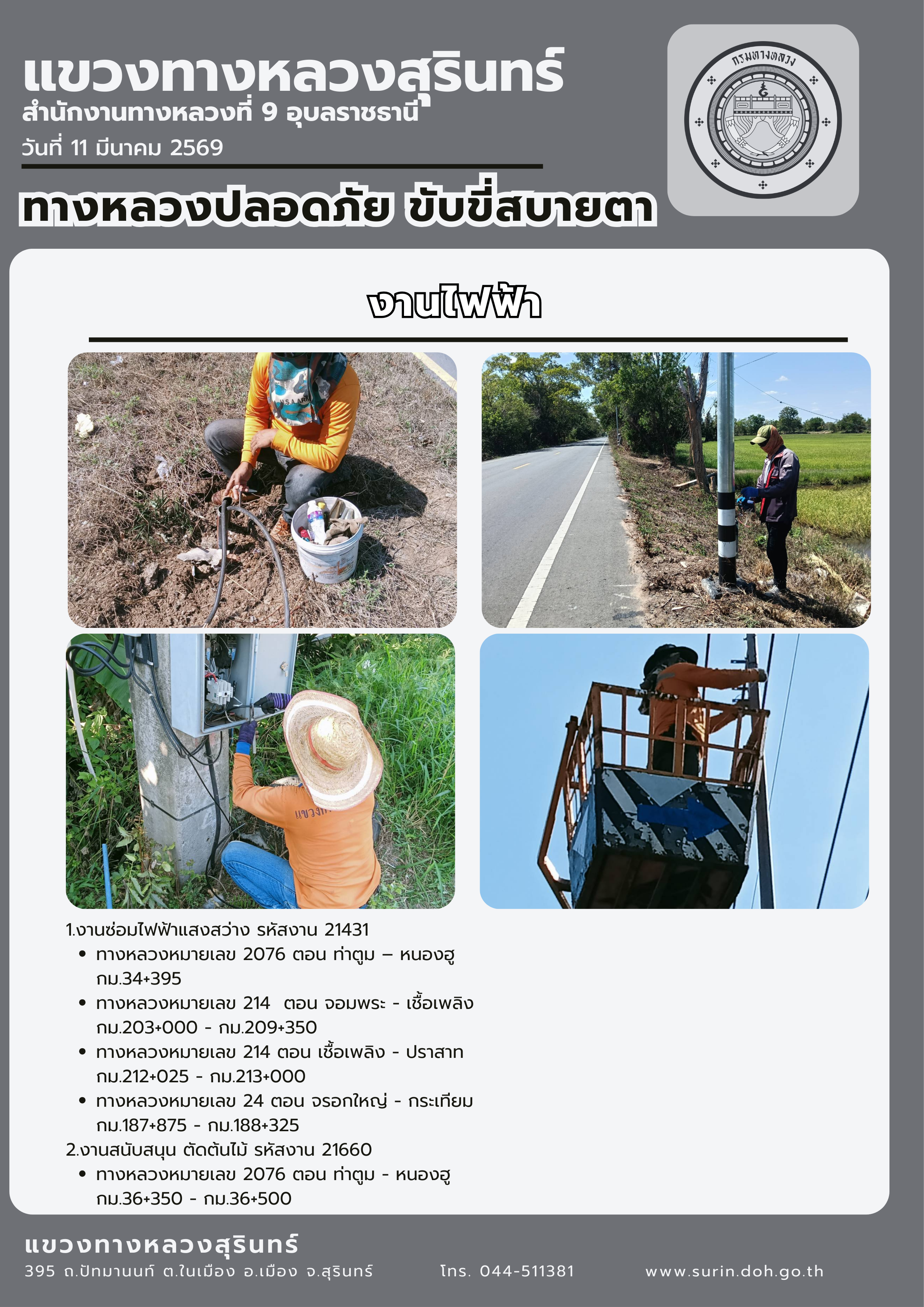 ข้อมูลข่าว : ทางหลวงปลอดภัย ขับขี่สบายตา 11 มีนาคม 2569