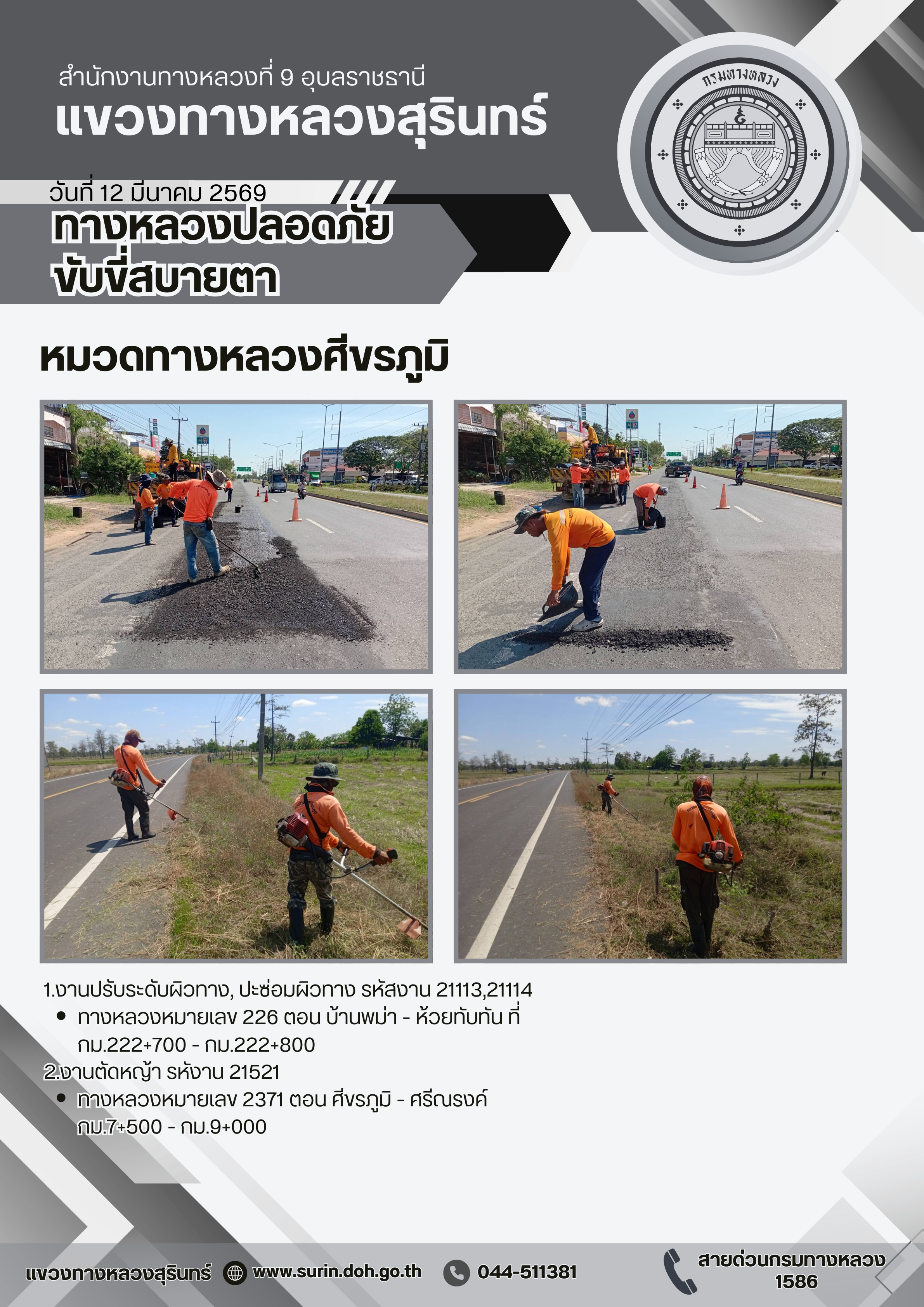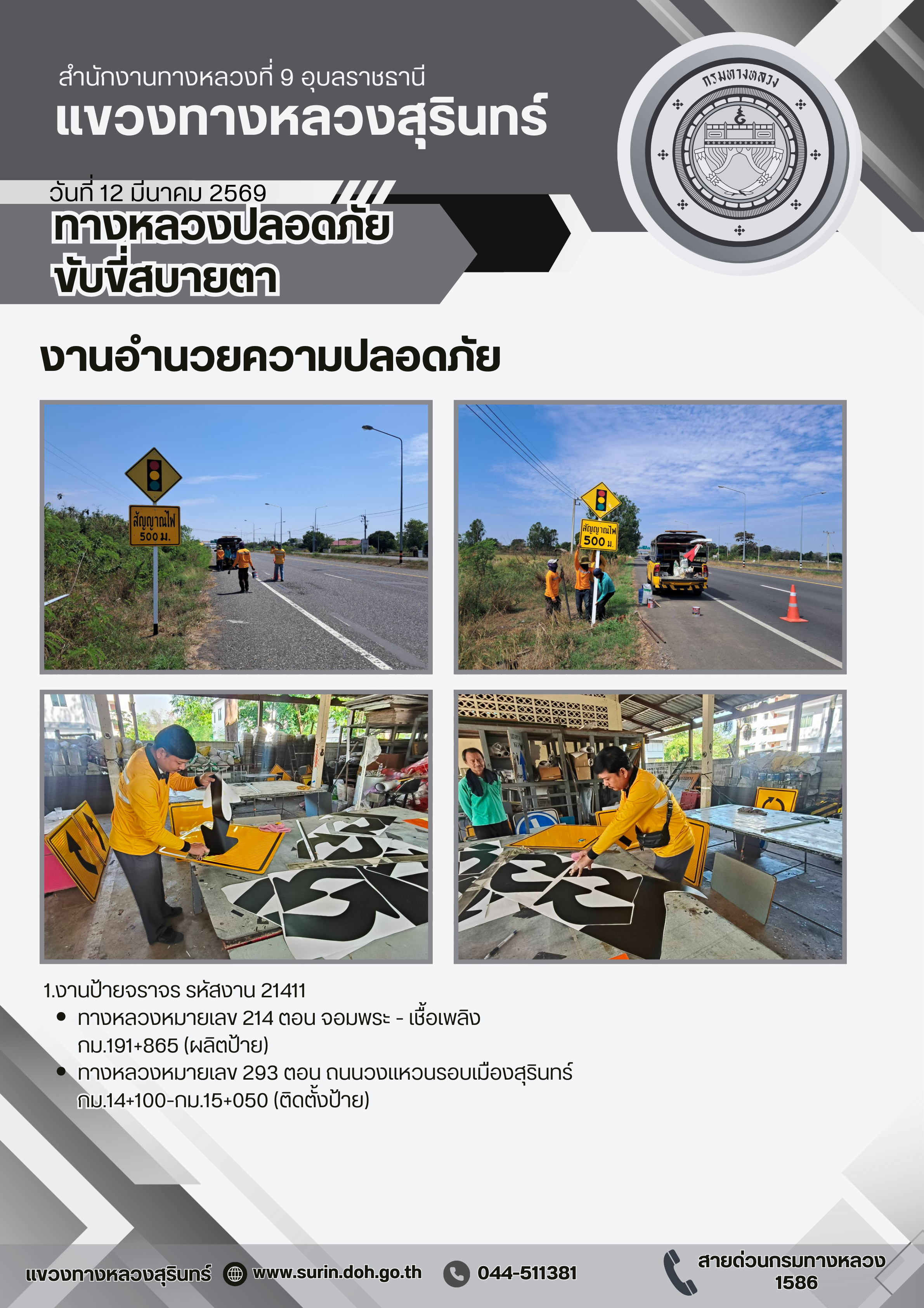 ทางหลวงปลอดภัย ขับขี่สบายตา 12 มีนาคม 2569