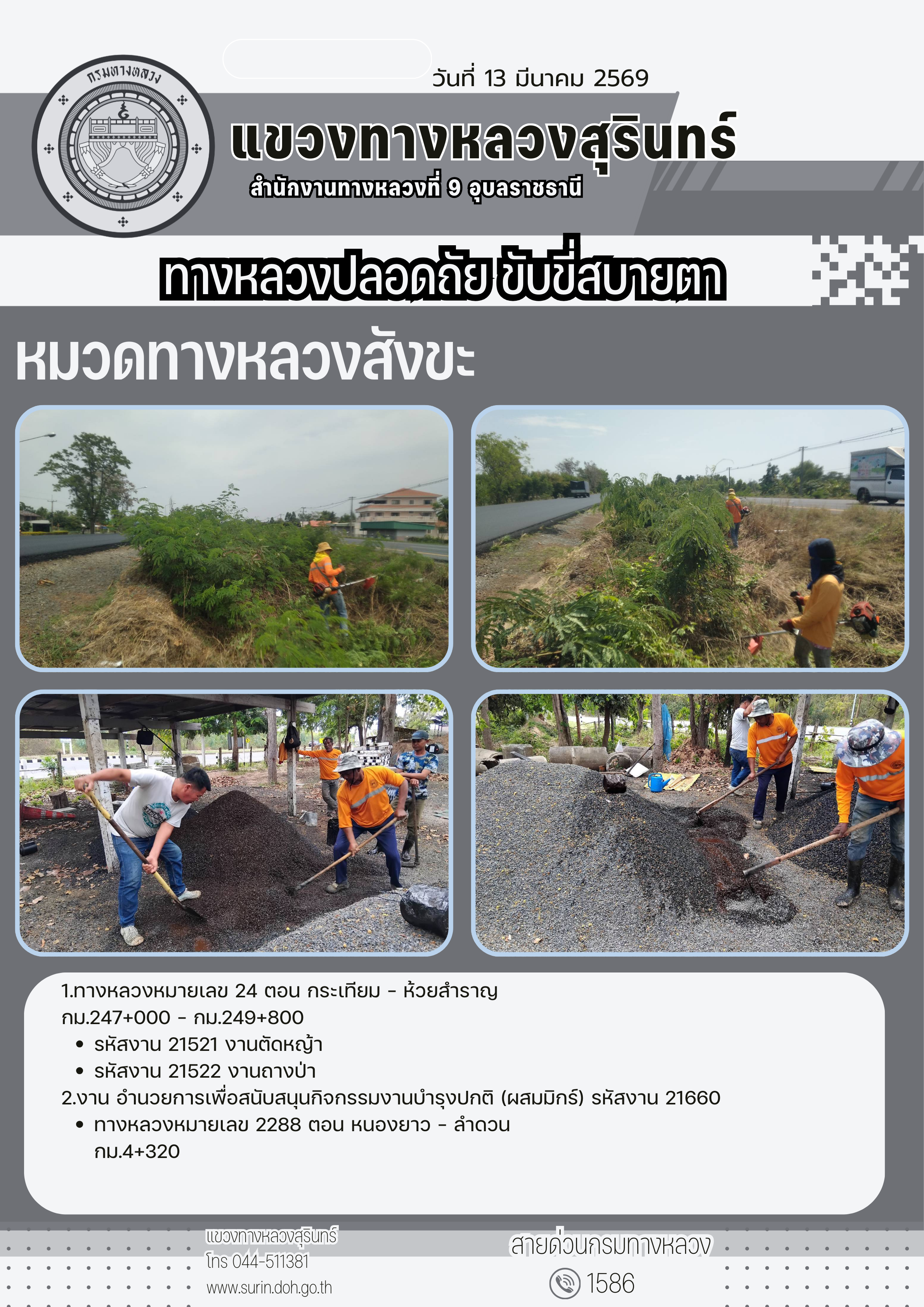 ทางหลวงปลอดภัย ขับขี่สบายตา 13 มีนาคม 2569