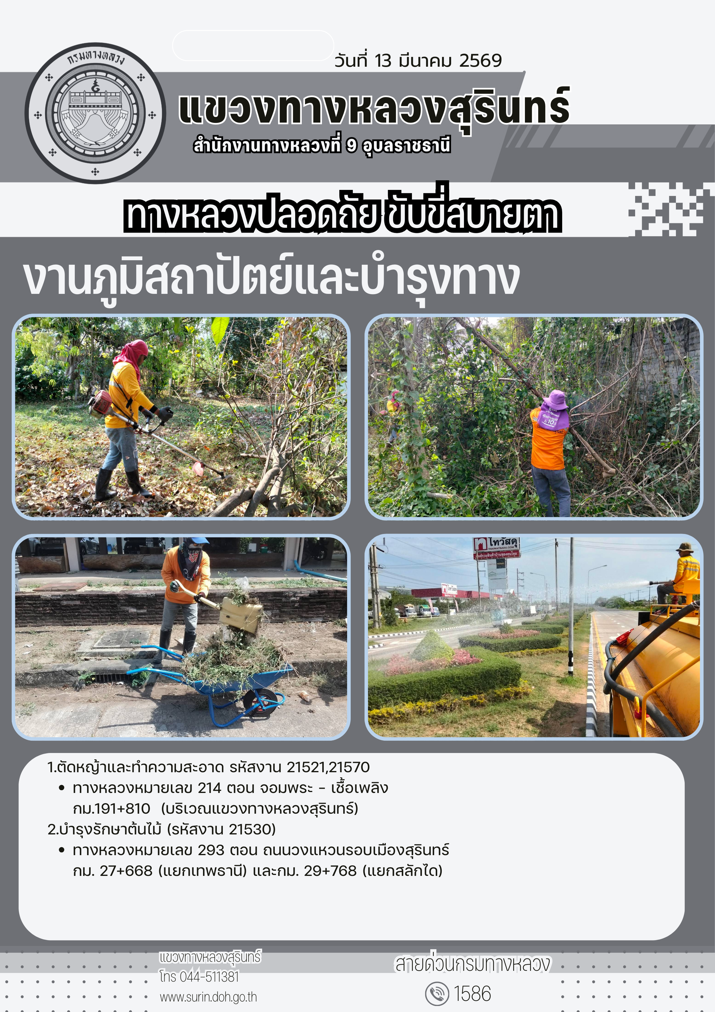 ข้อมูลข่าว : ทางหลวงปลอดภัย ขับขี่สบายตา 13 มีนาคม 2569