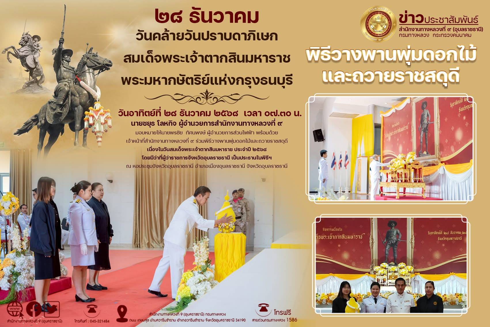 พิธีวางพานพุ่มดอกไม้และถวายราชสดุดี วันสมเด็จพระเจ้าตากสินมหาราช ประจำปี ๒๕๖๘
