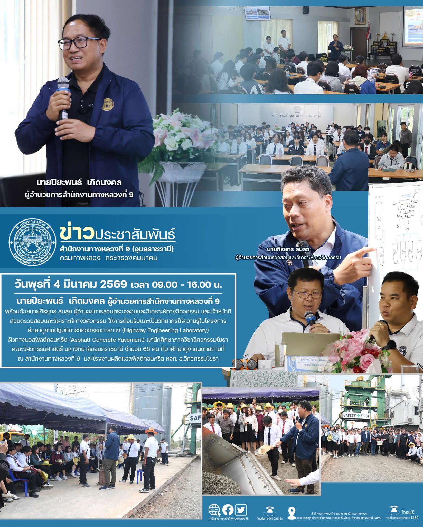 คณะวิศวกรรมศาสตร์ มหาวิทยาลัยอุบลราชธานี ศึกษาดูงานปฏิบัติการวิศวกรรมการทาง
