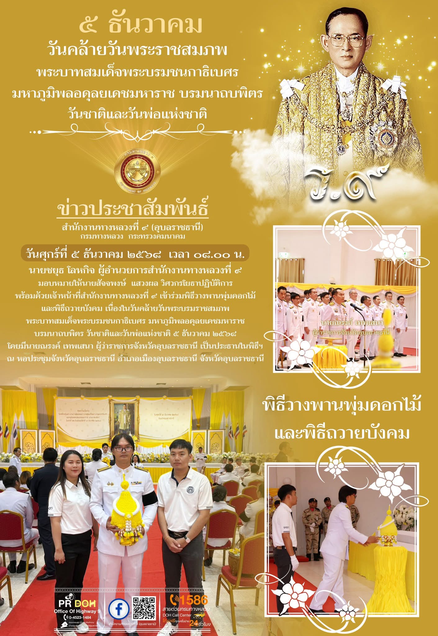 พิธีวางพานพุ่มดอกไม้ และพิธีถวายบังคม วันชาติและวันพ่อแห่งชาติ ๕ ธันวาคม ๒๕๖๘