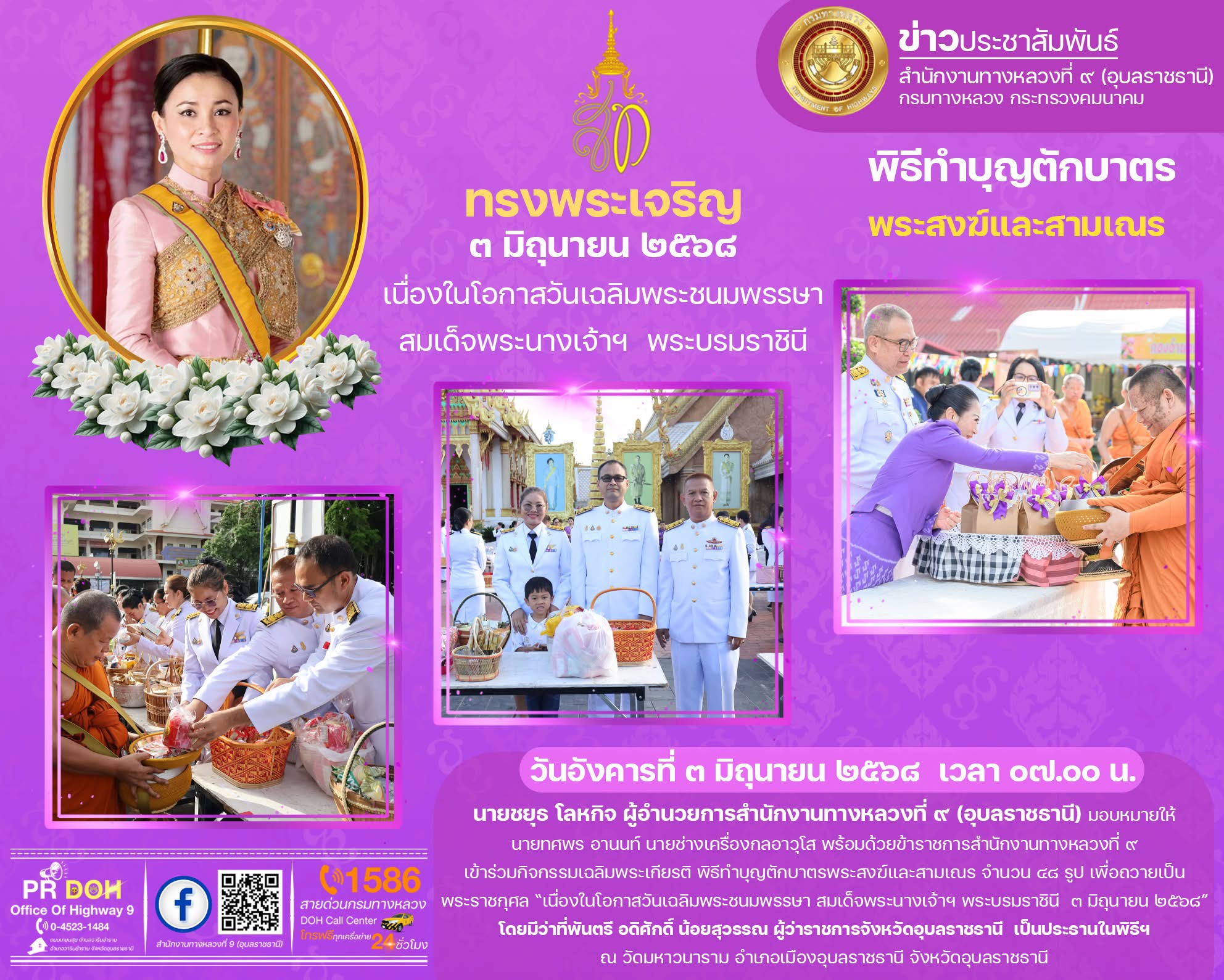 วันเฉลิมพระชนมพรรษา สมเด็จพระนางเจ้าฯ พระบรมราชินี ๓ มิถุนายน ๒๕๖๘
