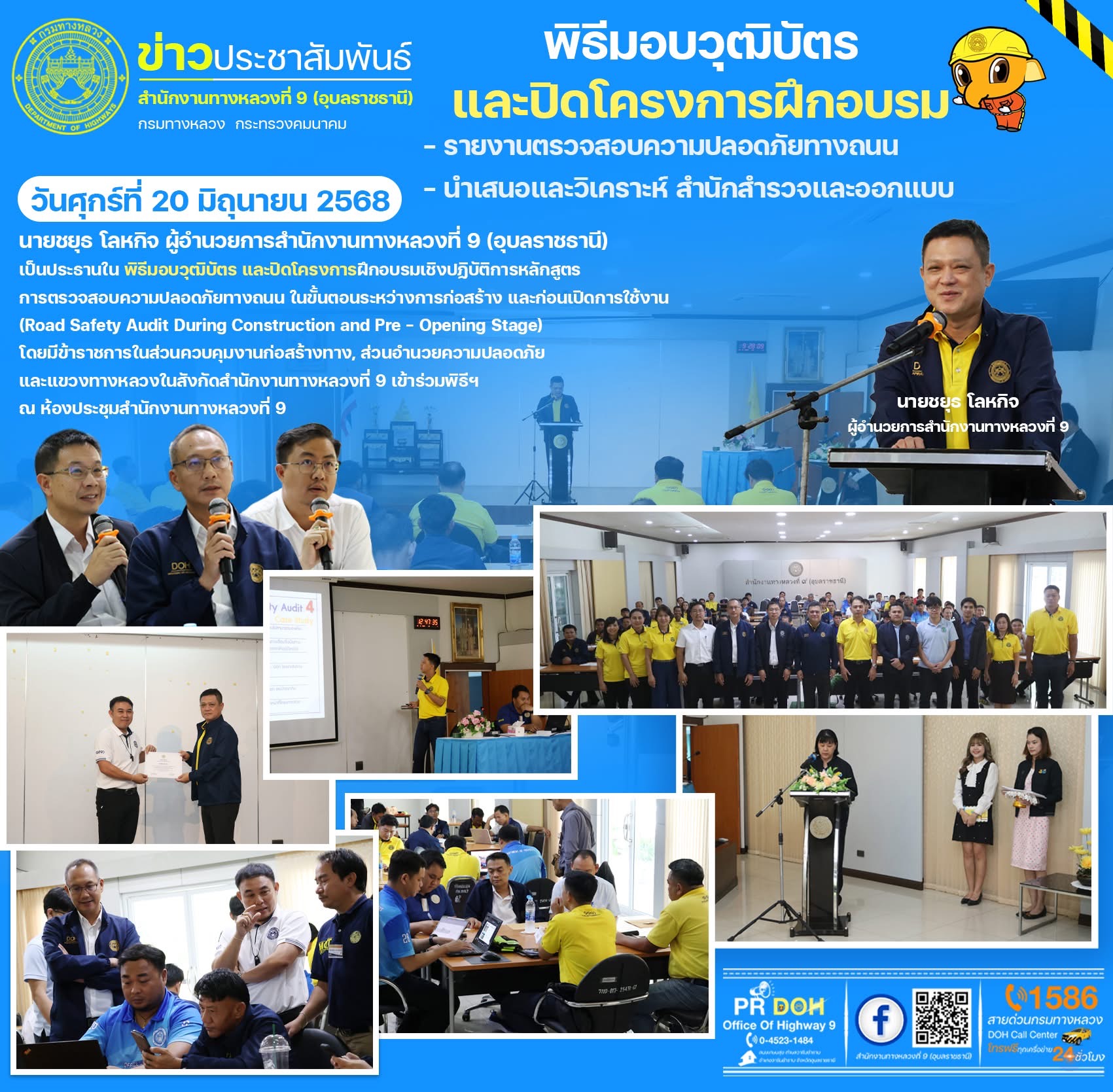 พิธีมอบวุฒิบัตร และปิดโครงการฝึกอบรมเชิงปฏิบัติการหลักสูตรการตรวจสอบความปลอดภัยทางถนน