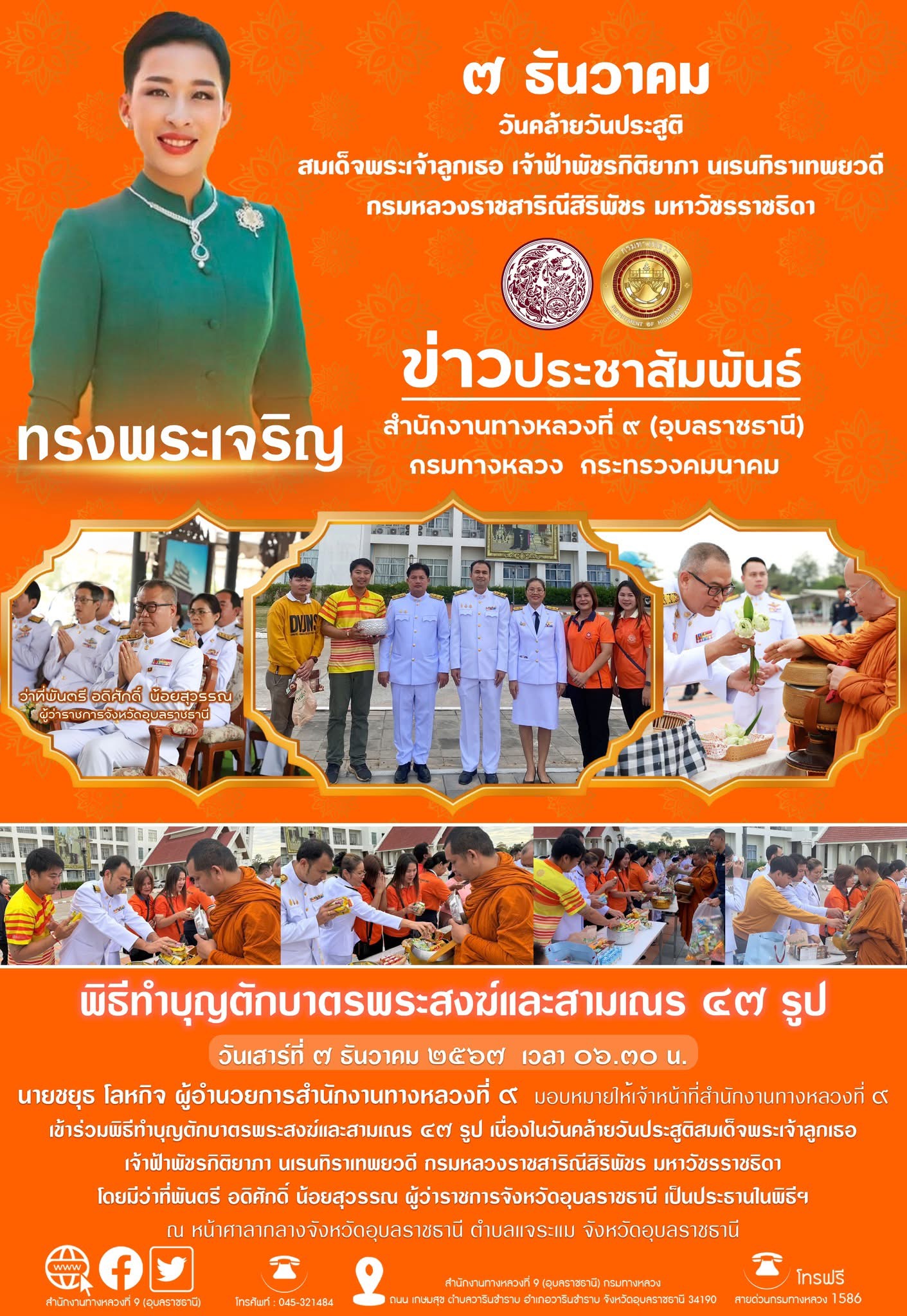 104 07/12/2567 พิธีทำบุญตักบาตร วันคล้ายวันประสูติสมเด็จพระเจ้าลูกเธอเจ้าฟ้าพัชรกิติยาภา