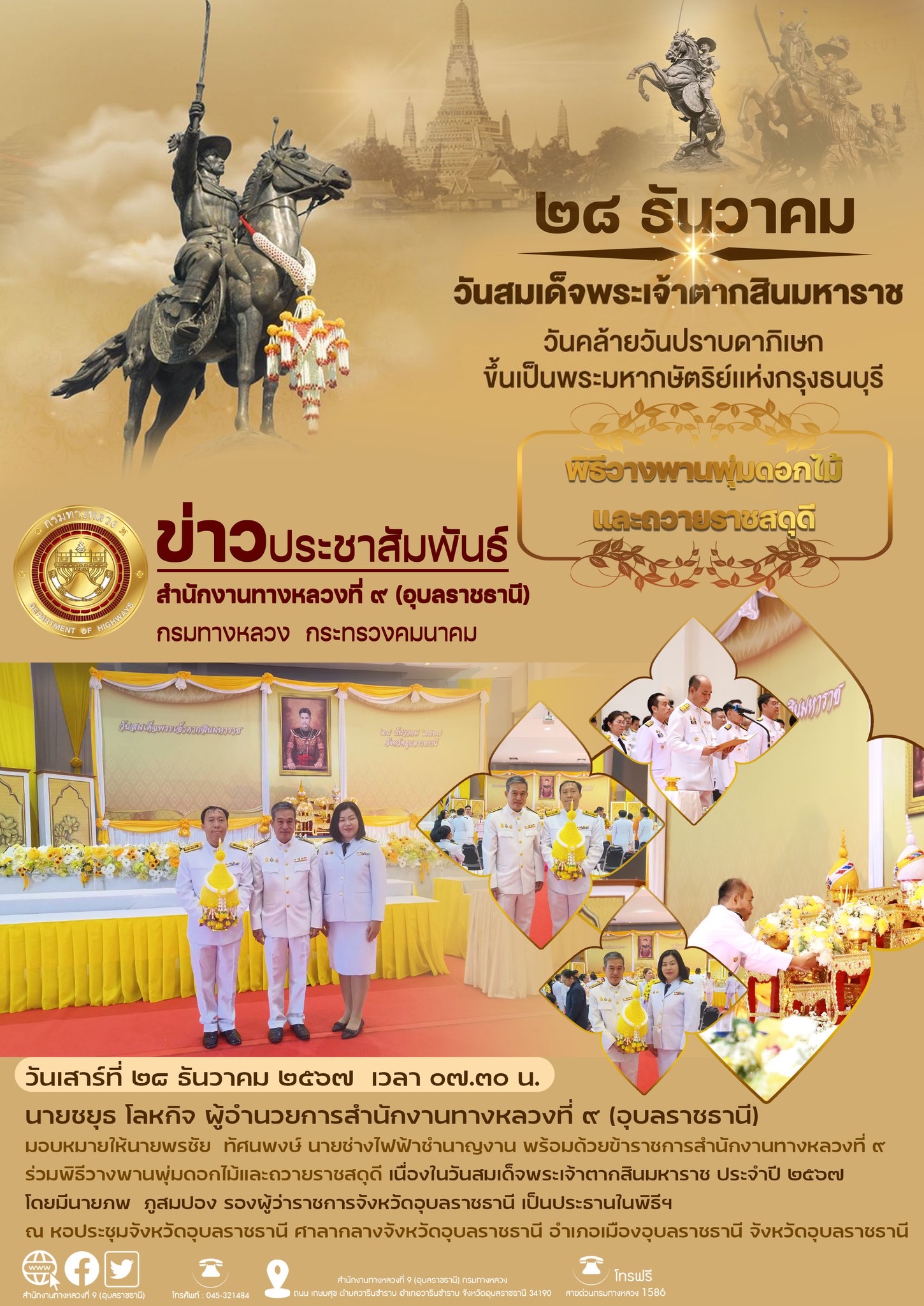 100 28/12/2567 วันสมเด็จพระเจ้าตากสินมหาราช ประจำปี ๒๕๖๗