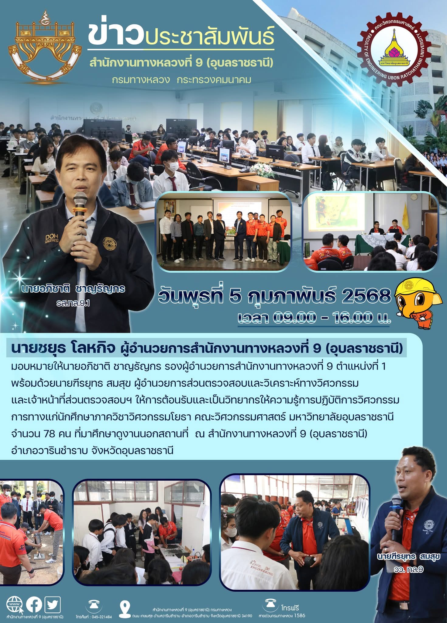 92 05/02/2568 การบรรยายให้ความรู้การปฏิบัติการวิศวกรรมการทางแก่นักศึกษาภาควิชาวิศวกรรมโยธา มหาวิทยาลัยอุบลราชธานี