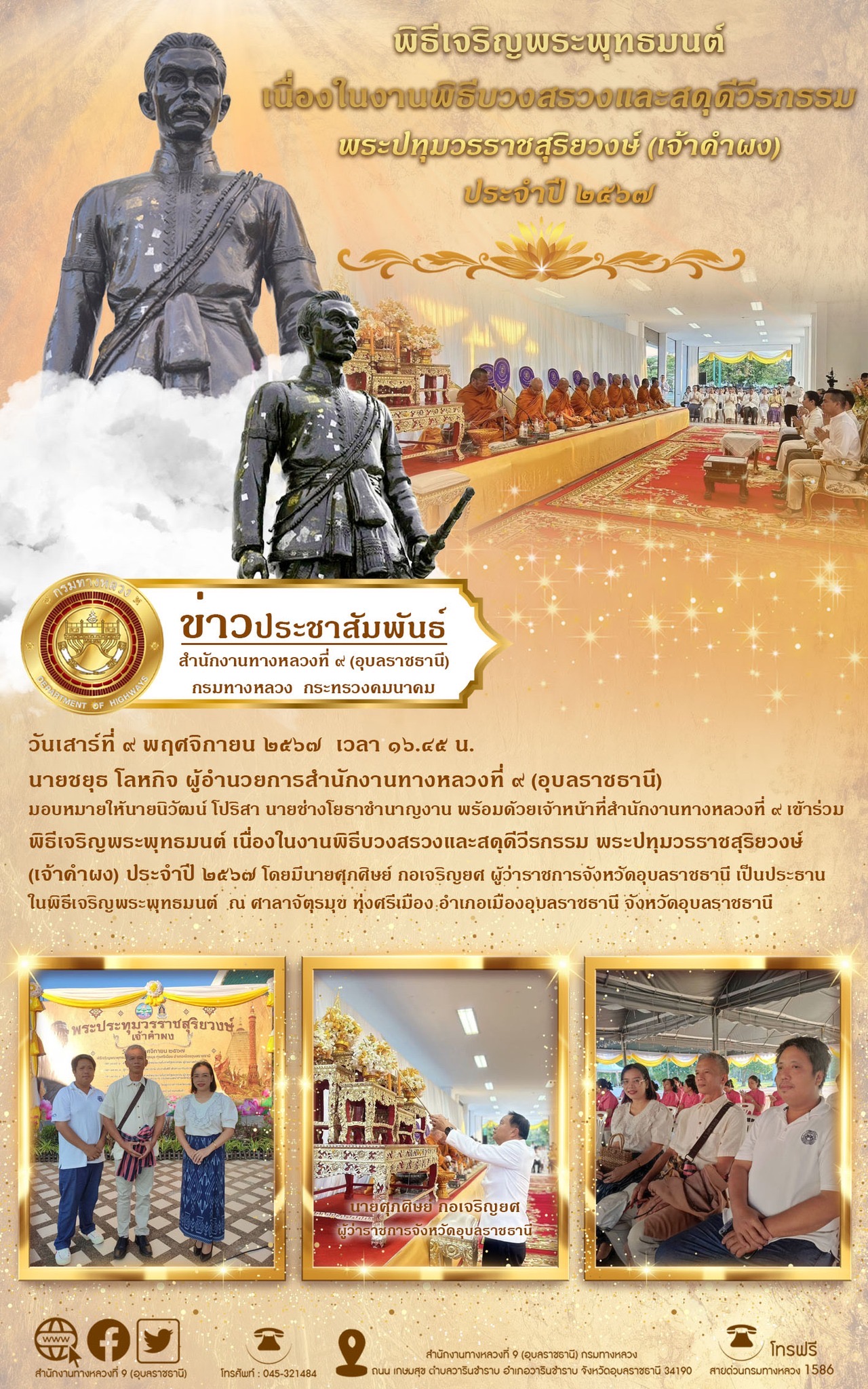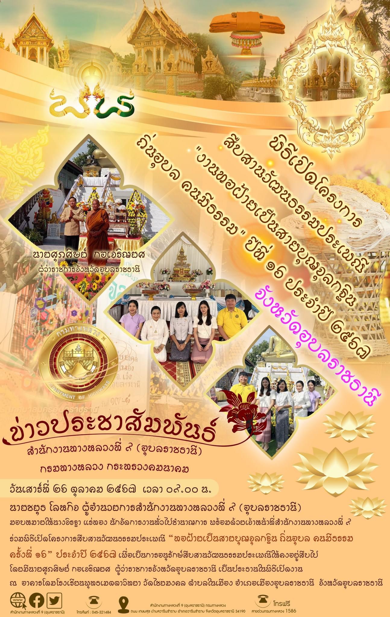 พิธีเปิดโครงการสืบสานวัฒนธรรมประเพณี “ทอฝ้ายเป็นสายบุญจุลกฐิน ถิ่นอุบล คนมีธรรมครั้งที่ ๑๖” ประจำปี ๒๕๖๗