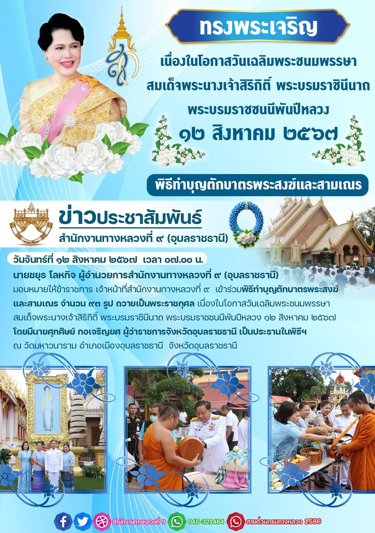 ร่วมพิธีทำบุญตักบาตร วันเฉลิมพระชนมพรรษาสมเด็จพระนางเจ้าสิริกิติ์ พระบรมราชินีนาถ พระบรมราชชนนีพันปีหลวง ๑๒ สิงหาคม ๒๕๖๗