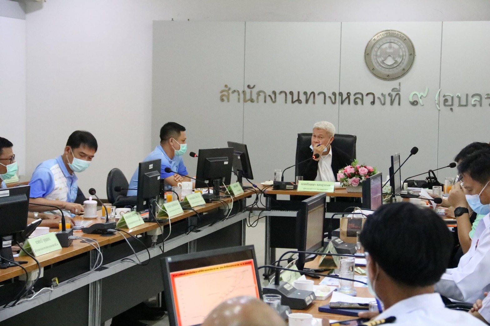 ทั้งนี้ ผู้บริหารของหน่วยงานในสังกัดกระทรวงคมนาคมในพื้นที่ นำโดย นายชยุธ โลหกิจ ผู้อำนวยสำนักงานทางหลวงที่ 9, นายธนศักดิ์ ใฝ่กระโทก รองผู้อำนวยการสำนักงานทางหลวงที่ 9 ตำแหน่งที่ 1, นายวิทวัส หล่อโชติอนันต์ รองผู้อำนวยการสำนักงานทางหลวงที่ 9 ตำแหน่งที่ 2 และผู้อำนวยการแขวงทางหลวงในสังกัด, นายชาญยุทธ์ ชื่นตา ผู้อำนวยการสำนักงานเจ้าท่าภูมิภาคสาขาอุบลราชธานี และคณะ ได้ให้การต้อนรับคณะท่านผู้ตรวจราชการกระทรวงคมนาคม (นายปริญญา แสงสุวรรณ) และเข้าร่วมประชุมการติดตามการดำเนินงานดังกล่าว ณ ห้องประชุมสำนักงานทางหลวงที่ 9 (อุบลราชธานี)