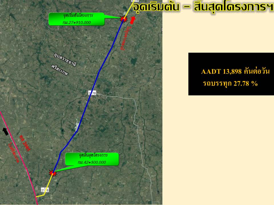 ทางหลวงหมายเลข 2178 สายแยกทางหลวงหมายเลข 2085 - อุบลราชธานี ระหว่าง กม.27+910 – กม.42+500 ระยะทาง 14.590 กิโลเมตร