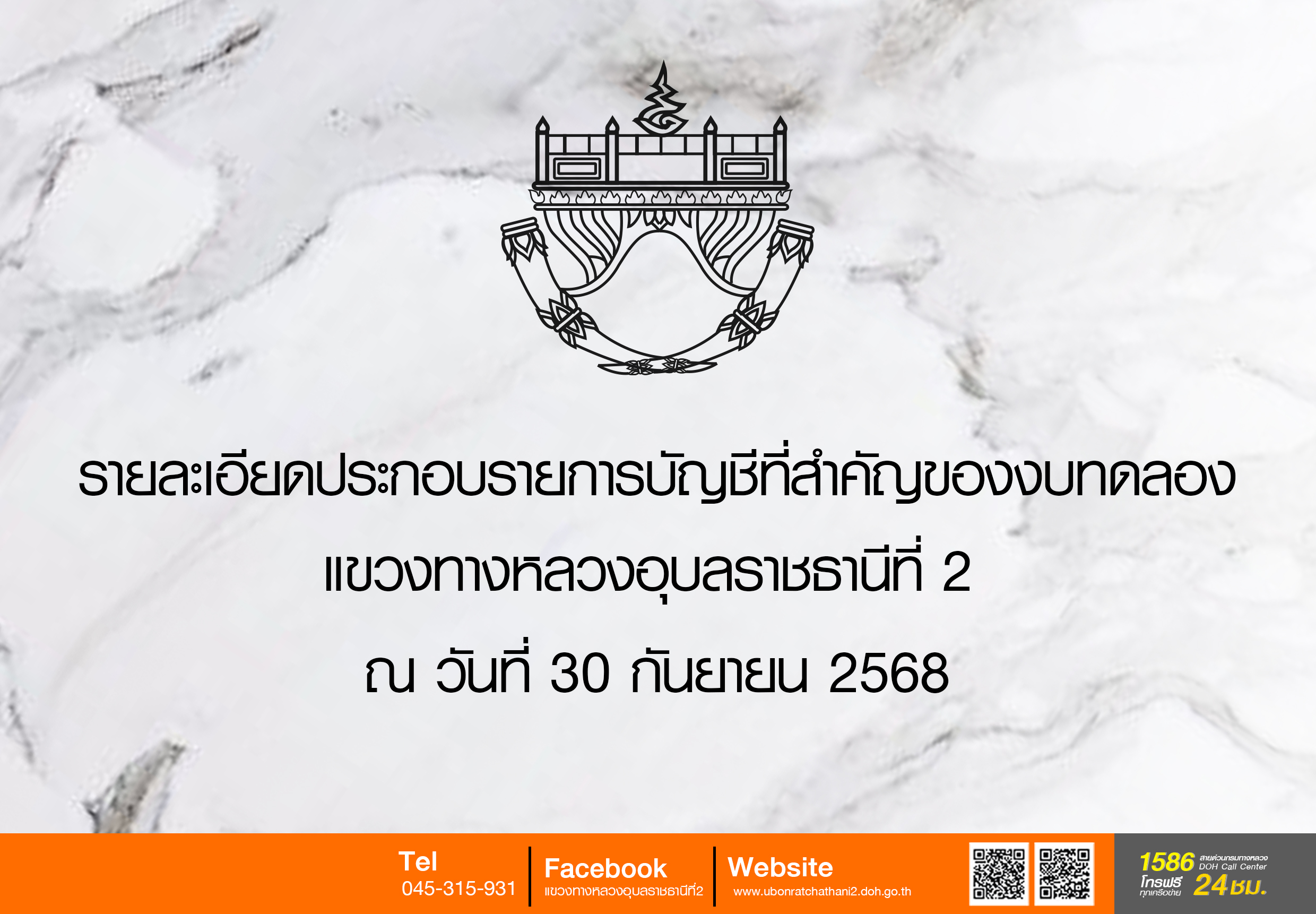 รายละเอียดประกอบรายการบัญชีที่สำคัญของงบทดลอง แขวงทางหลวงอุบลราชธานีที่ 2 วันที่ 30 กันยายน 2568