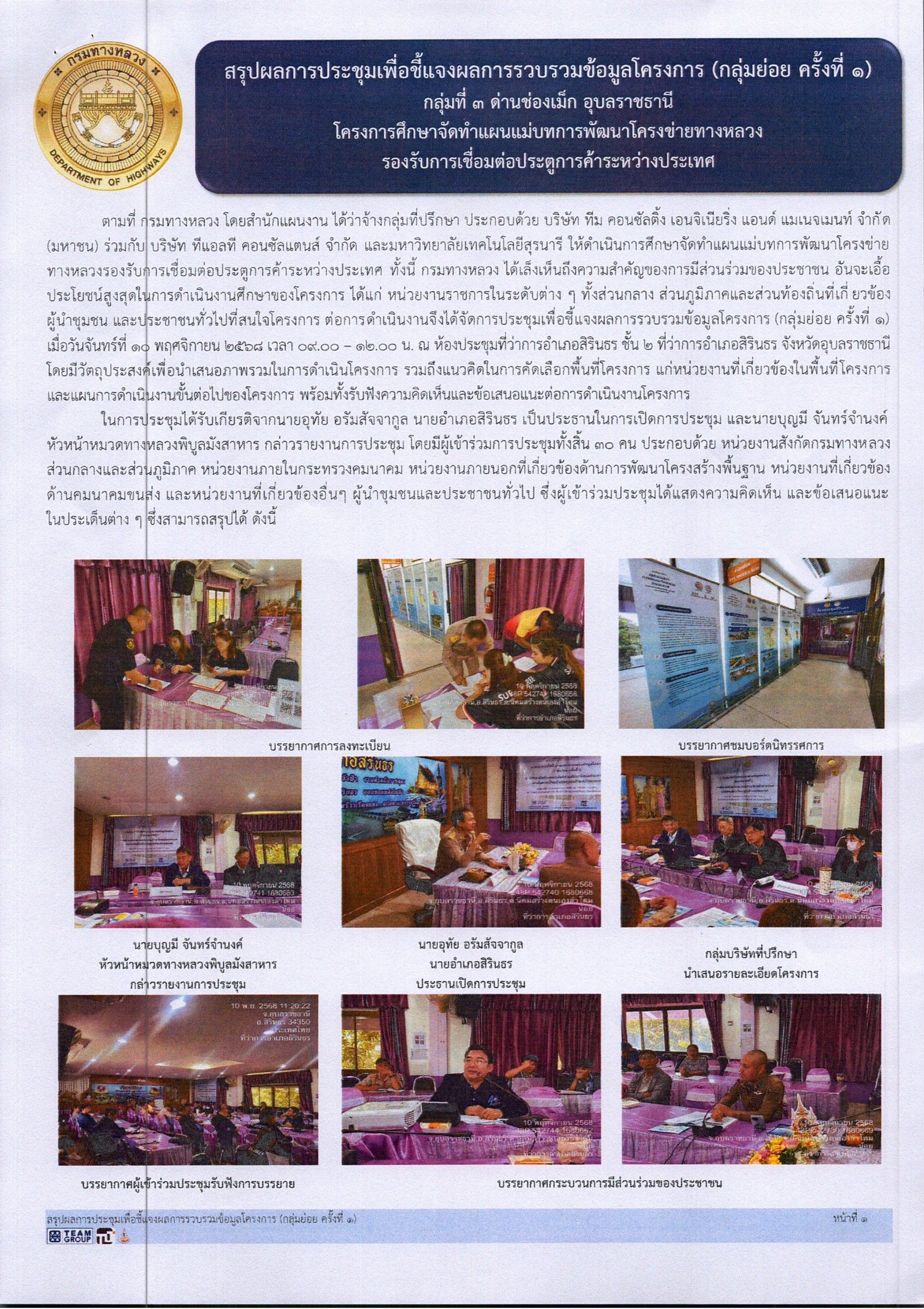 สรุปผลการประชุมเพื่อชี้แจงผลการรวบรวมข้อมูลโครงการ โครงการศึกษาจำทำแผนแม่บทการพัฒนาโครงข่ายทางหลวงรองรับการเชื่อมต่อประตูการค้าระหว่างประเทศ