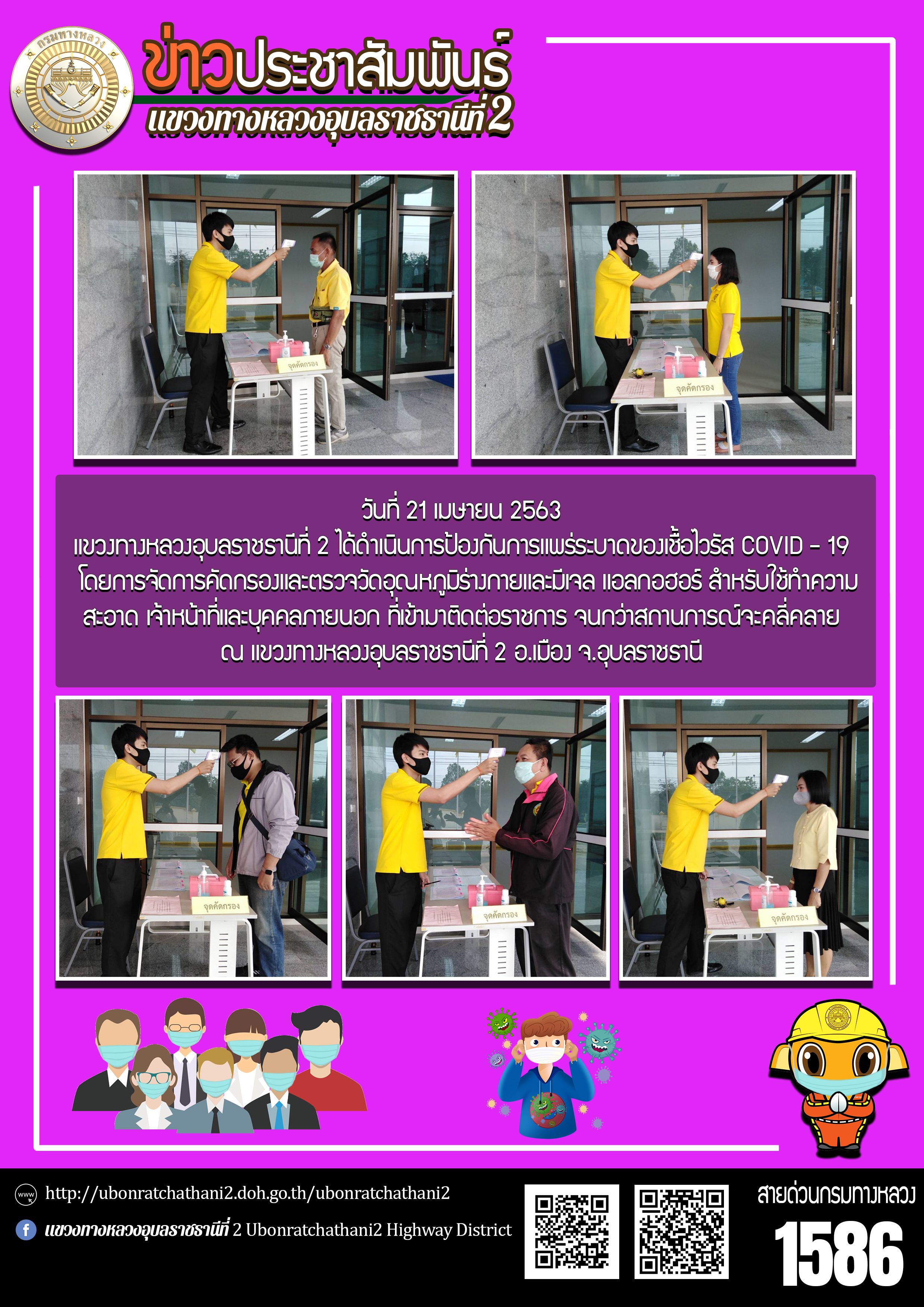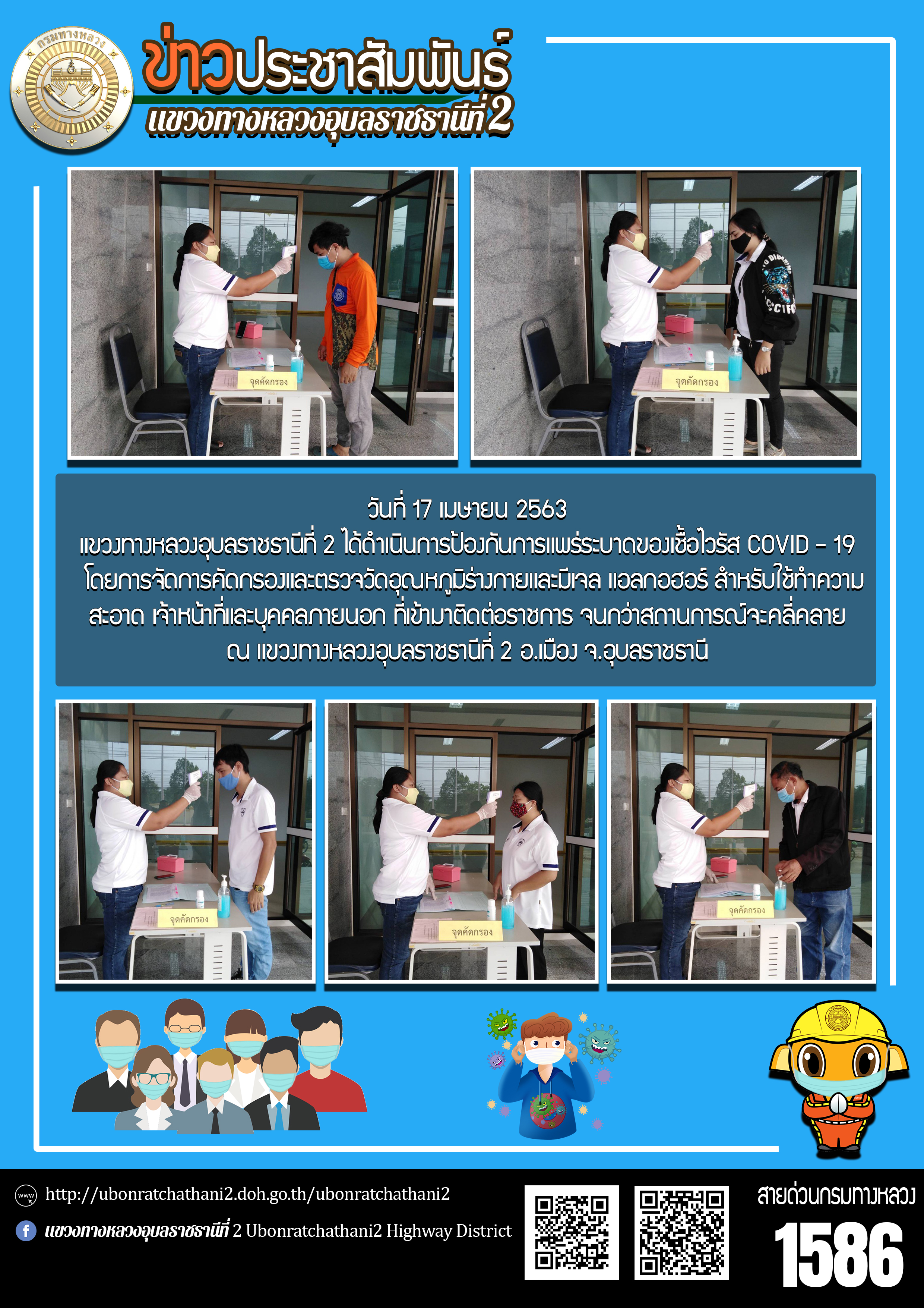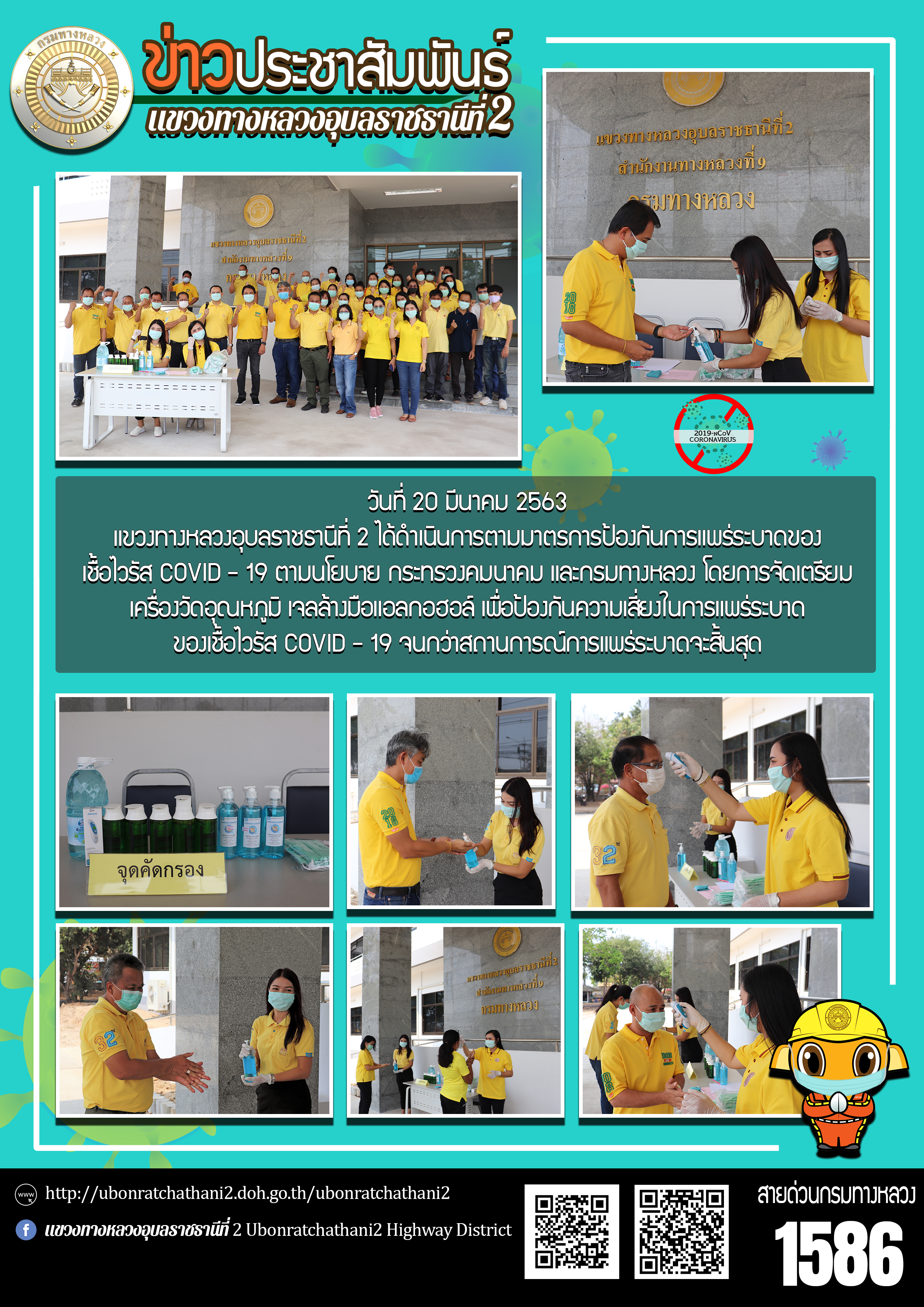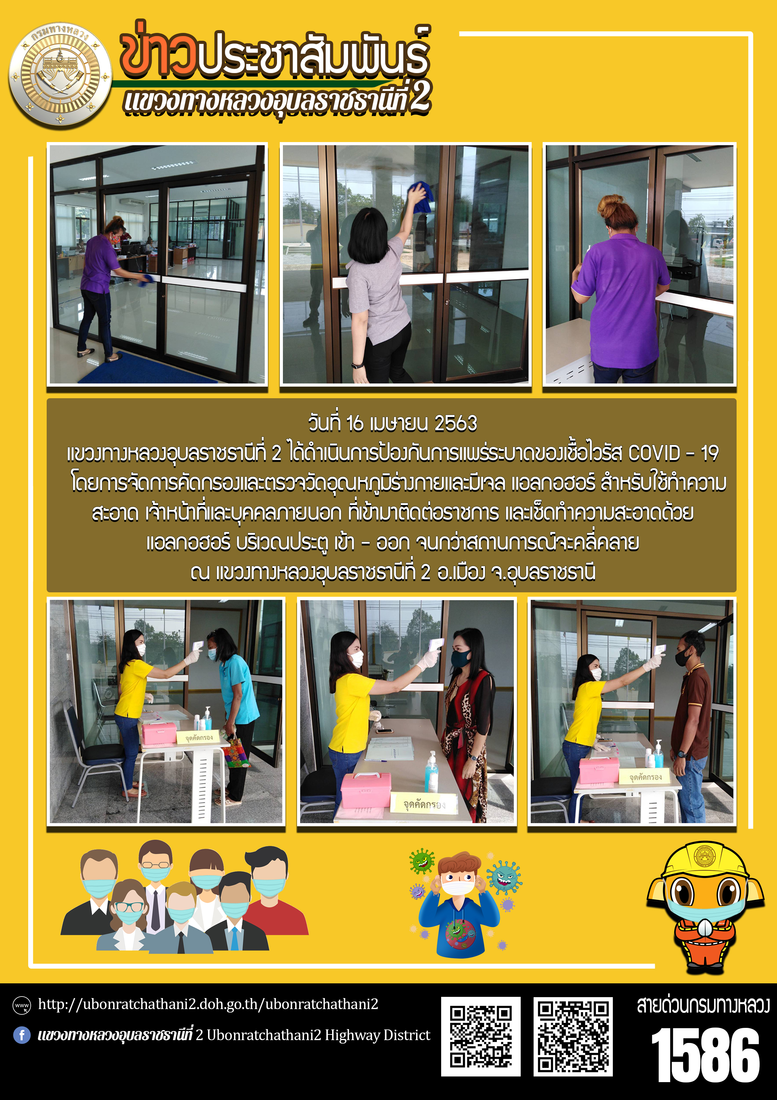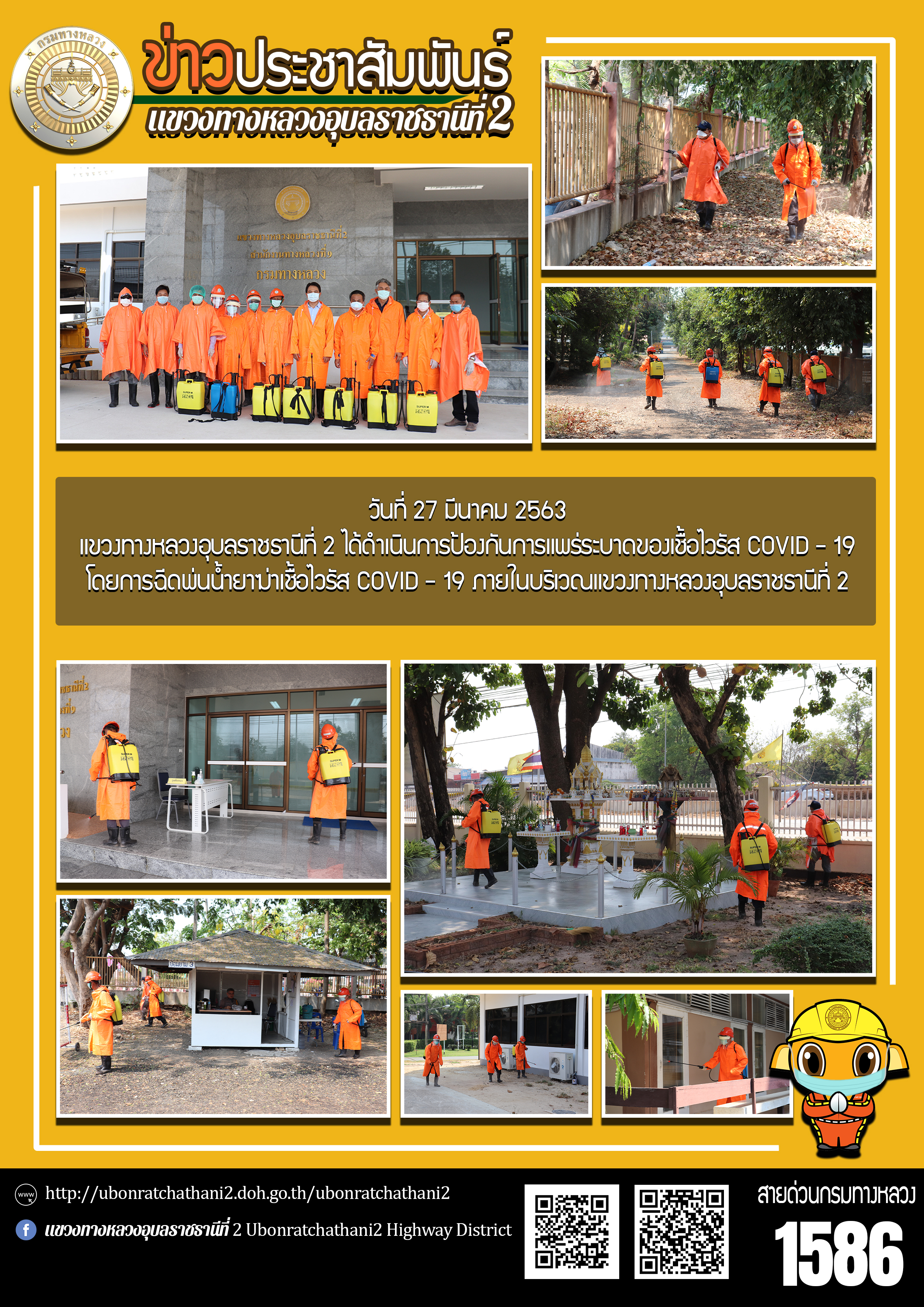 ฉีดพ่นน้ำยาฆ่าเชื้อไวรัส COVID - 19 ภายในบริเวณแขวงทางหลวงอุบลราชธานีที่ 2