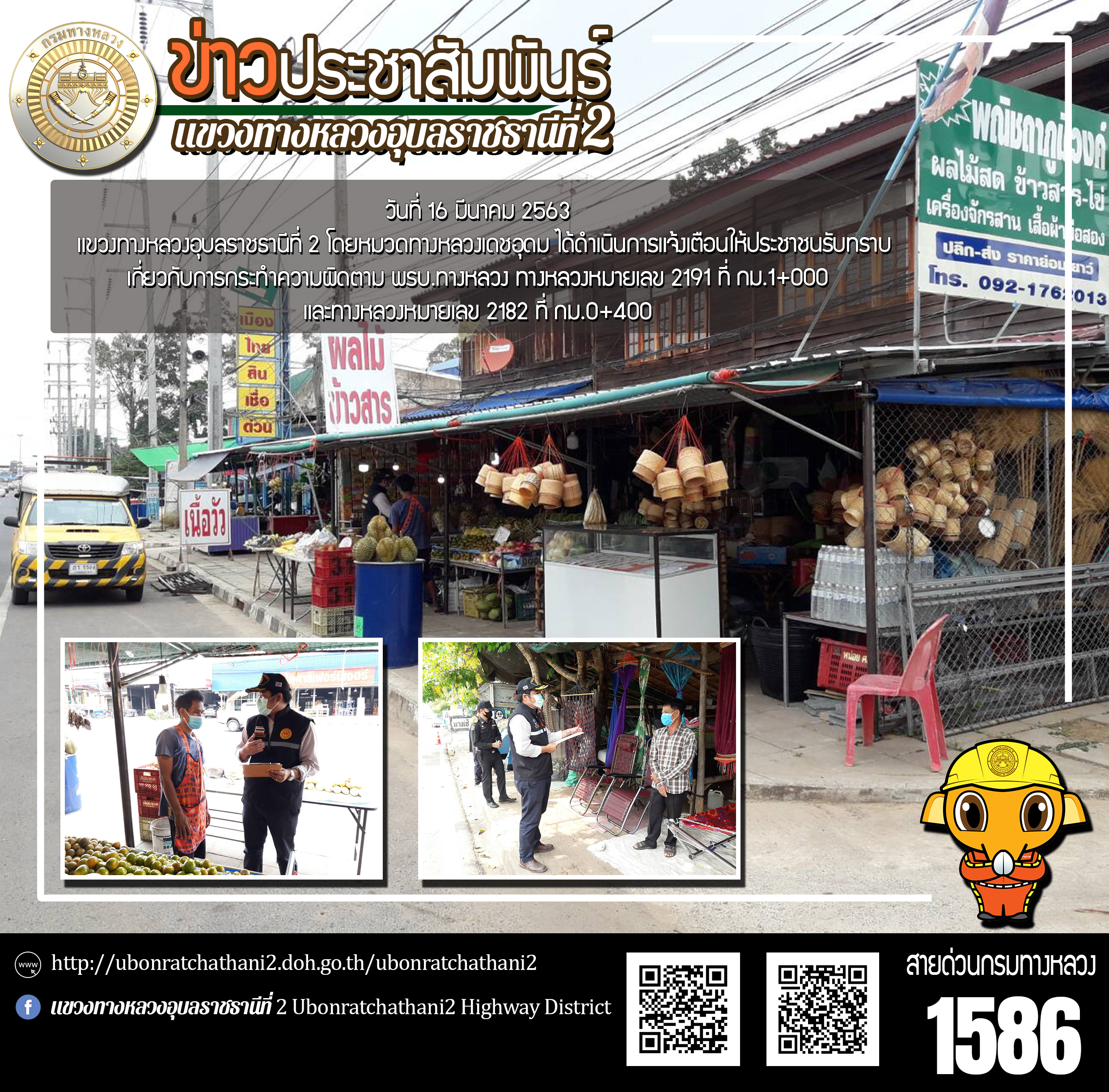 ดำเนินการแจ้งเตือนให้ประชาชนรับทราบเกี่ยวกับการกระทำความผิดตาม พรบ.ทางหลวง