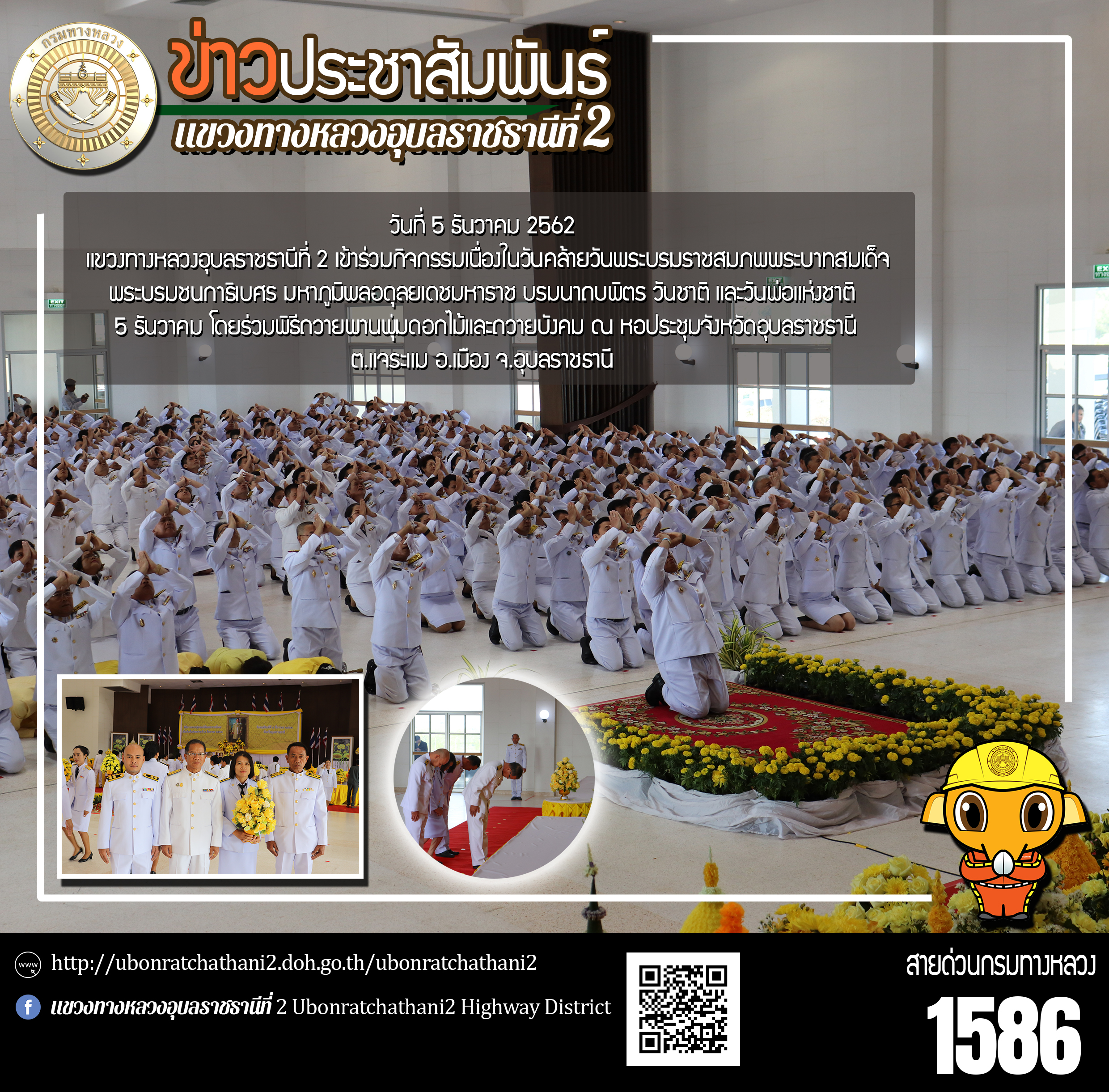 ร่วมพิธีถวายพานพุ่มดอกไม้และถวายบังคม เนื่องในวันคล้ายวันพระบรมราชสมภพพระบาทสมเด็จพระบรมชนกาธิเบศร มหาภูมิพลอดุลยเดชมหาราช บรมนาถบพิตร วันชาติ และวันพ่อแห่งชาติ 5 ธันวาคม