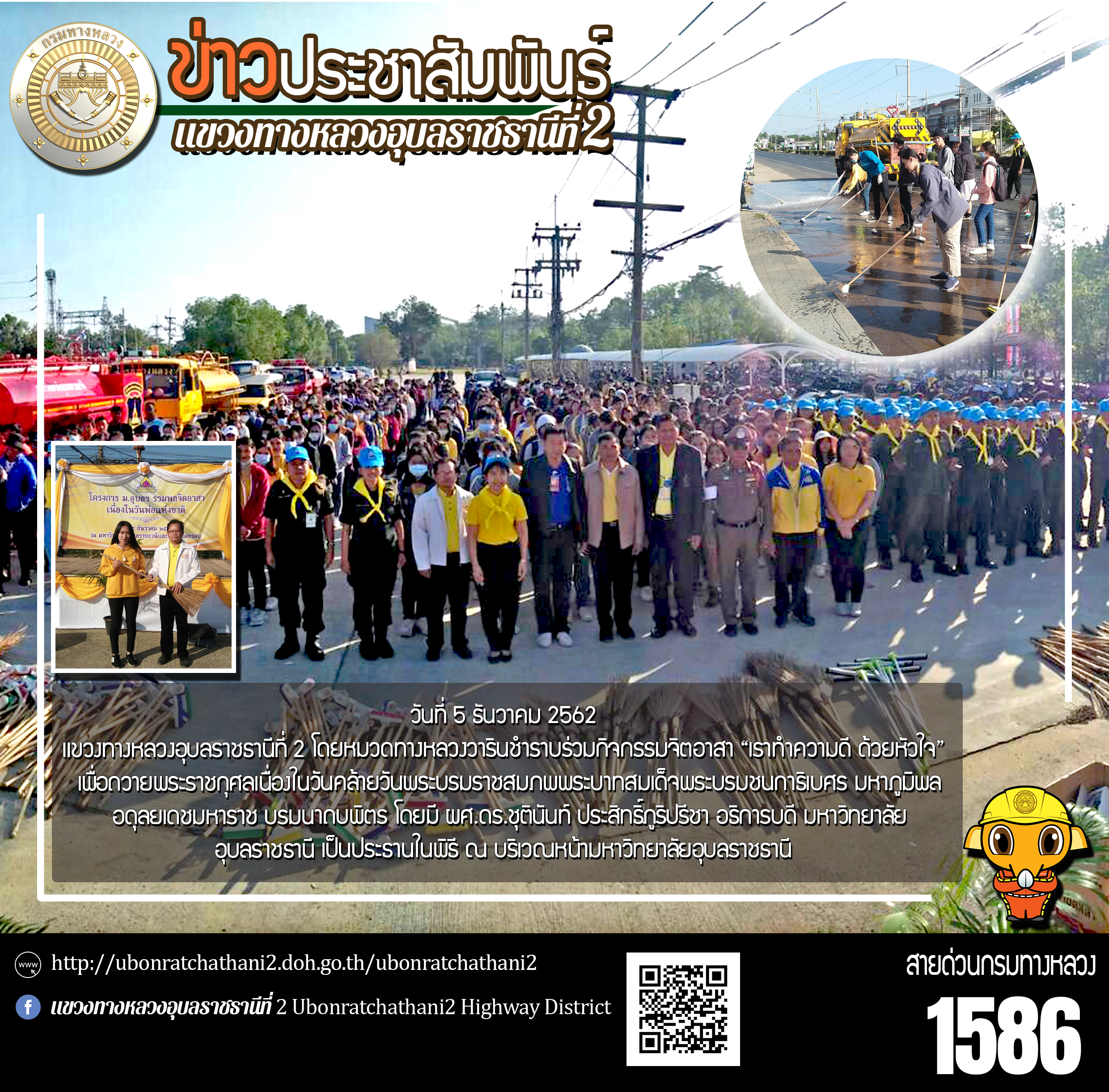 แขวงทางหลวงอุบลราชธานีที่ 2 โดยหมวดทางหลวงวารินชำราบร่วมกิจกรรมจิตอาสา “เราทำความดี ด้วยหัวใจ”