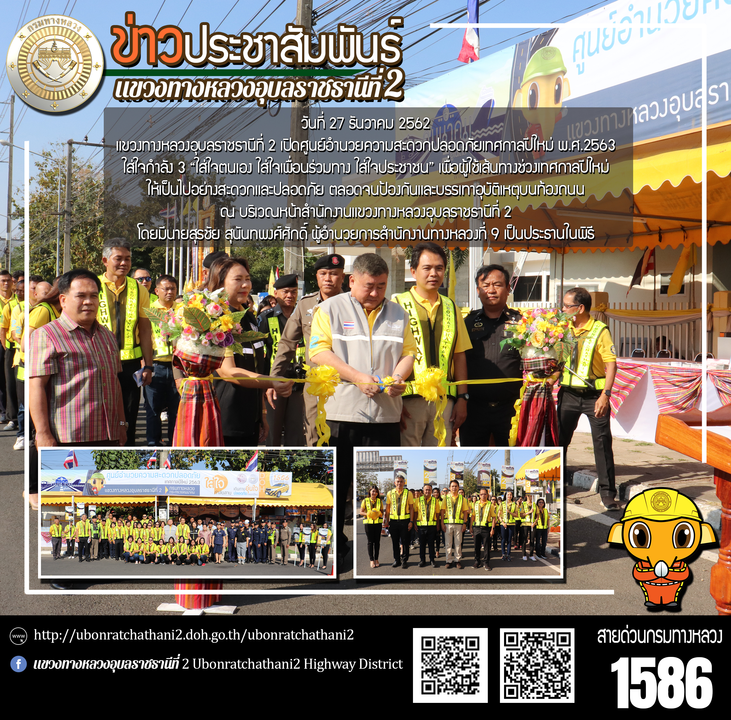 เปิดศูนย์อำนวยความสะดวกปลอดภัยเทศกาลปีใหม่ พ.ศ.2563 ใส่ใจกำลัง 3 “ใส่ใจตนเอง ใส่ใจเพื่อนร่วมทาง ใส่ใจประชาชน”