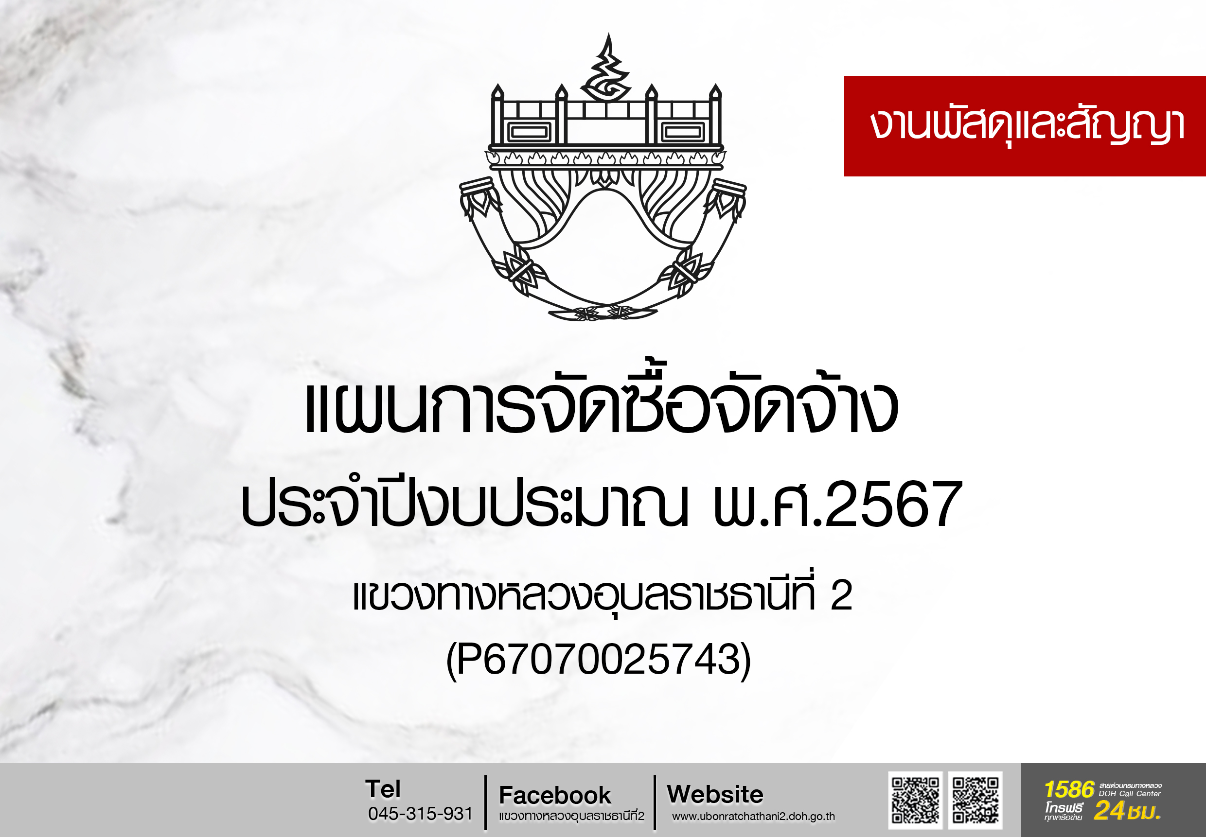 แผนการจัดซื้อจัดจ้าง ประจำปีงบประมาณ พ.ศ.2567 24 กรกฎาคม 2567 (M67070020925) รหัสแผนจัดซื้อจัดจ้าง (P67070025743)