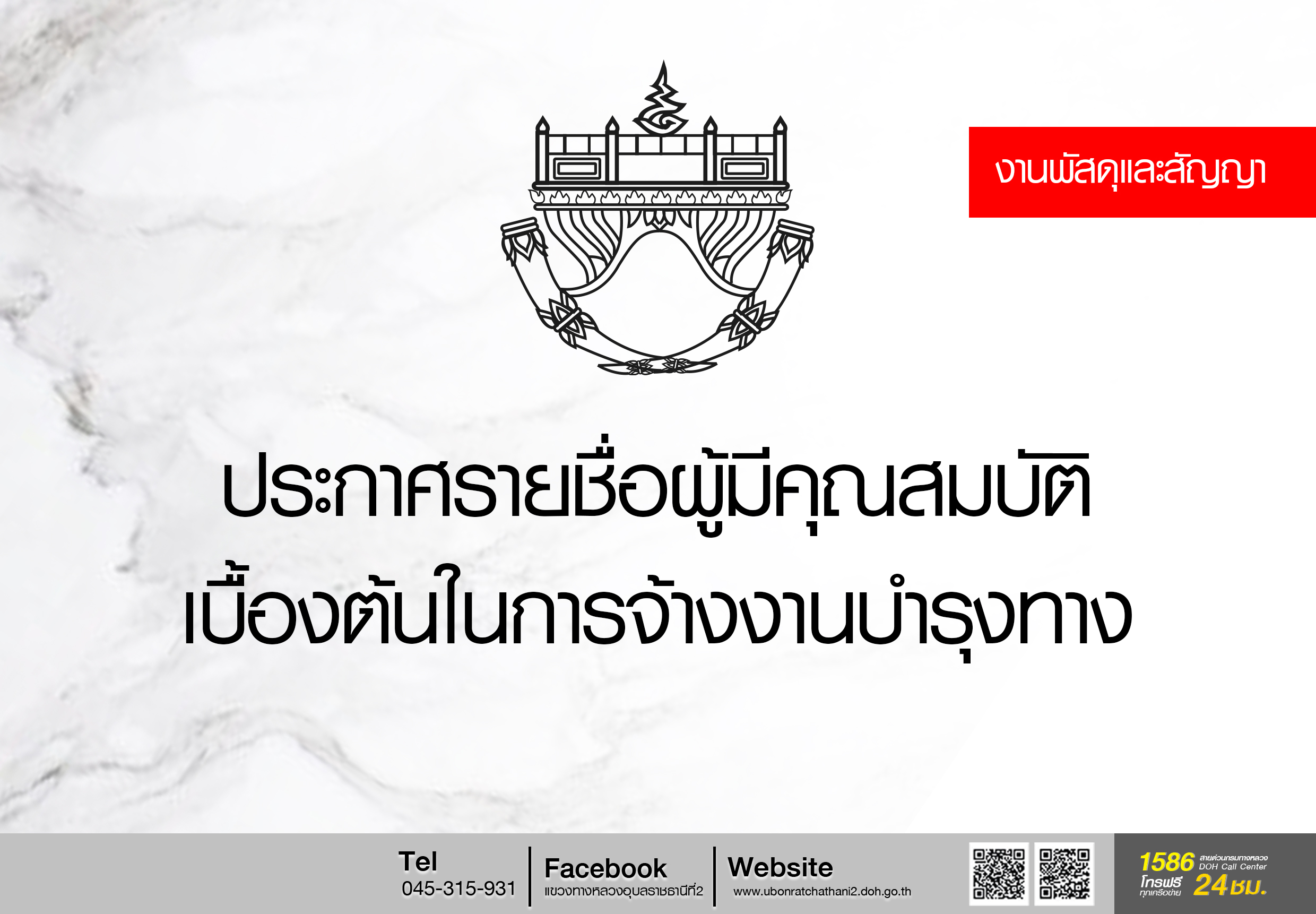 ประกาศสำนักงานทางหลวงที่ 9 อุบลราชธานี ประกาศรายชื่อผู้มีคุณสมบัติเบื้องต้นในการจ้างงานบำรุงทาง