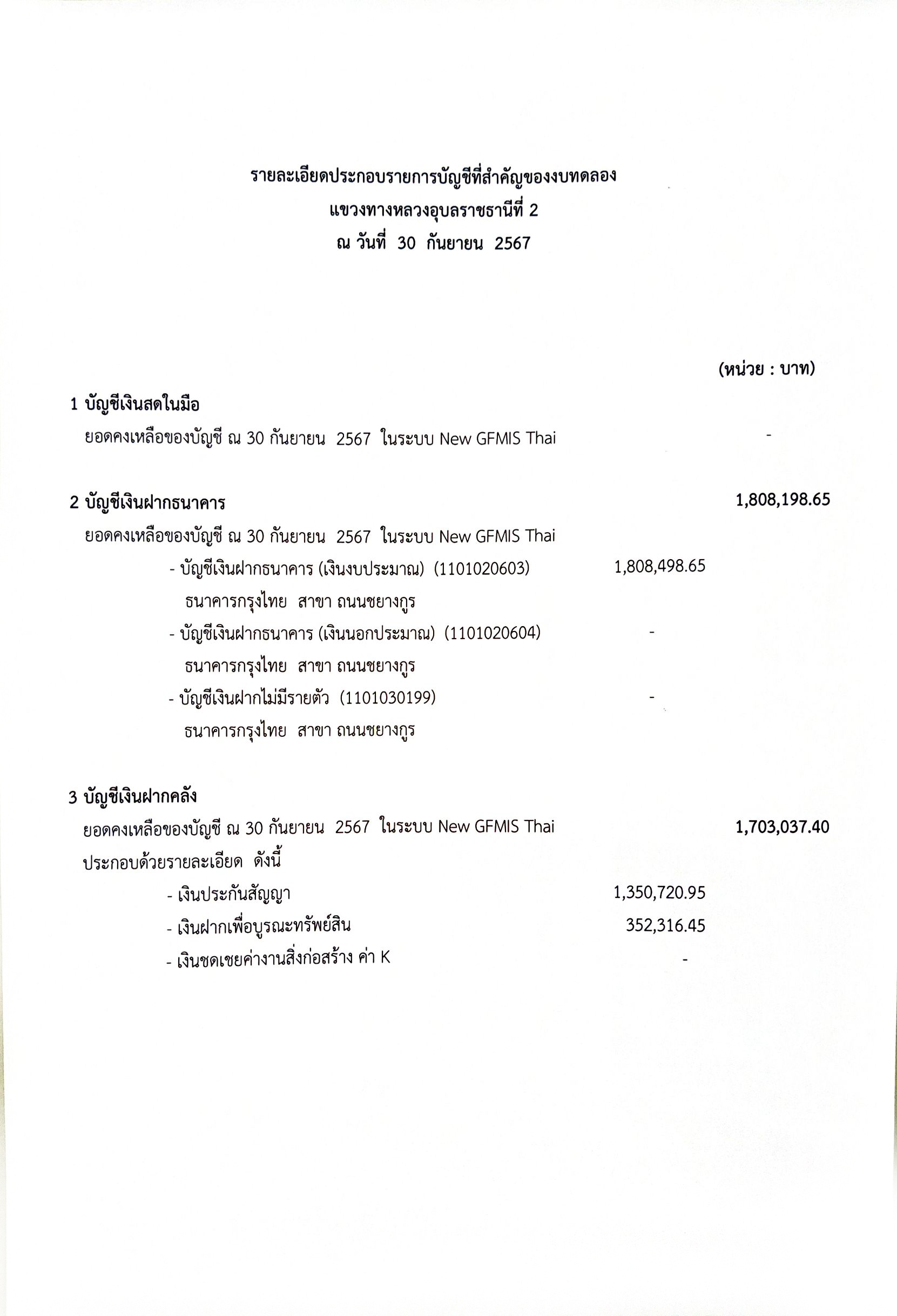 รายละเอียดประกอบรายการบัญชีที่สำคัญของงบทดลอง แขวงทางหลวงอุบลราชธานีที่ 2