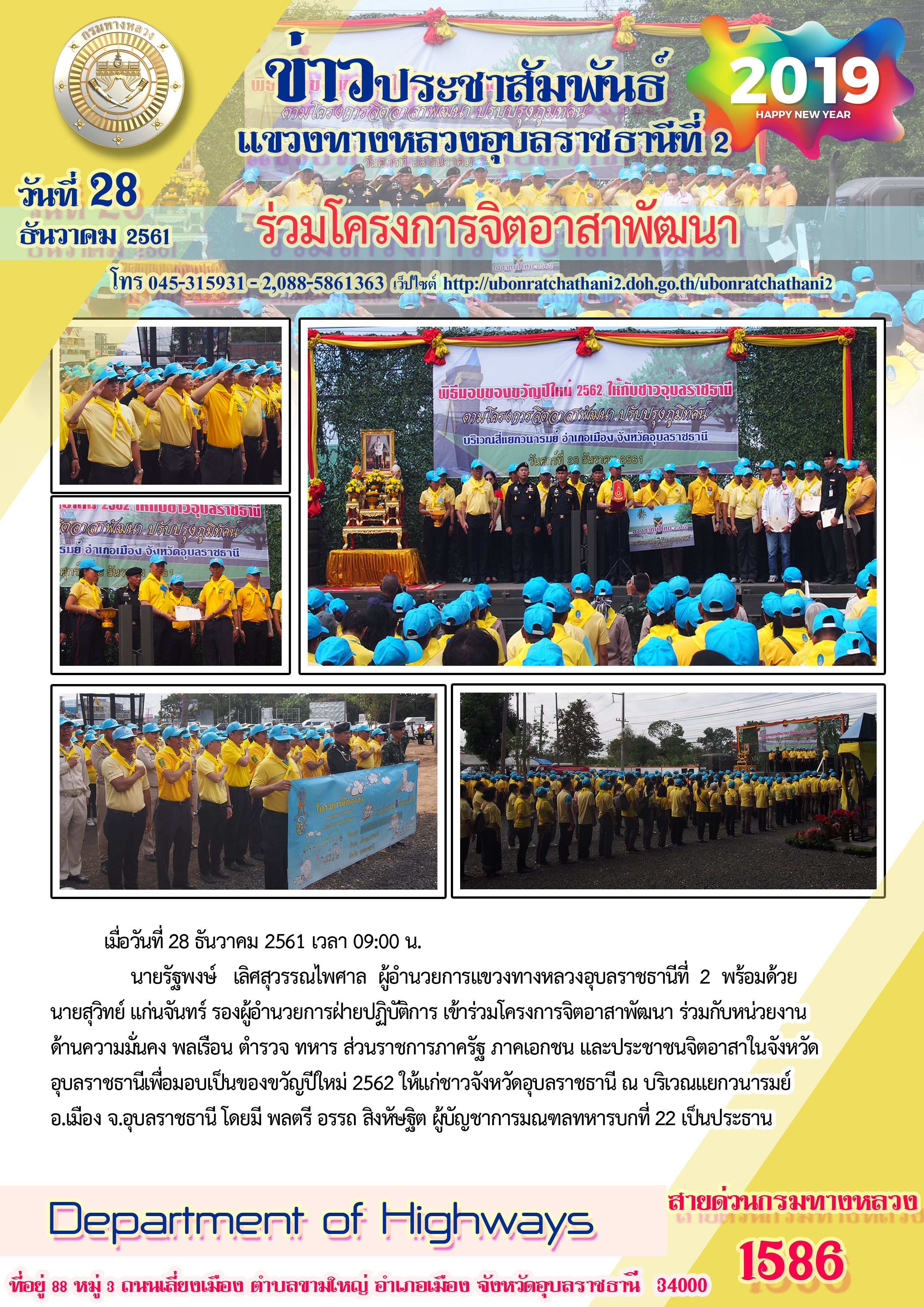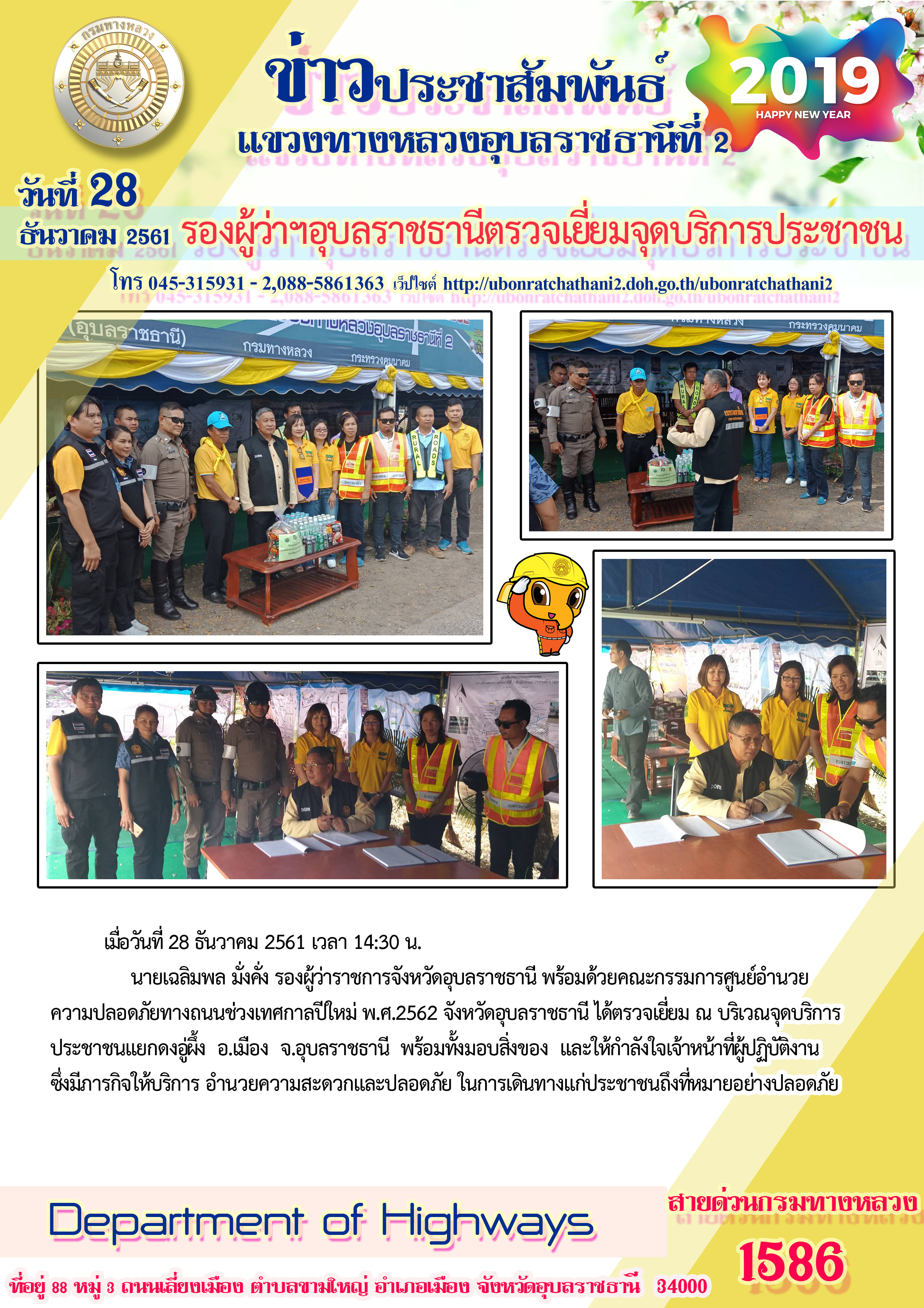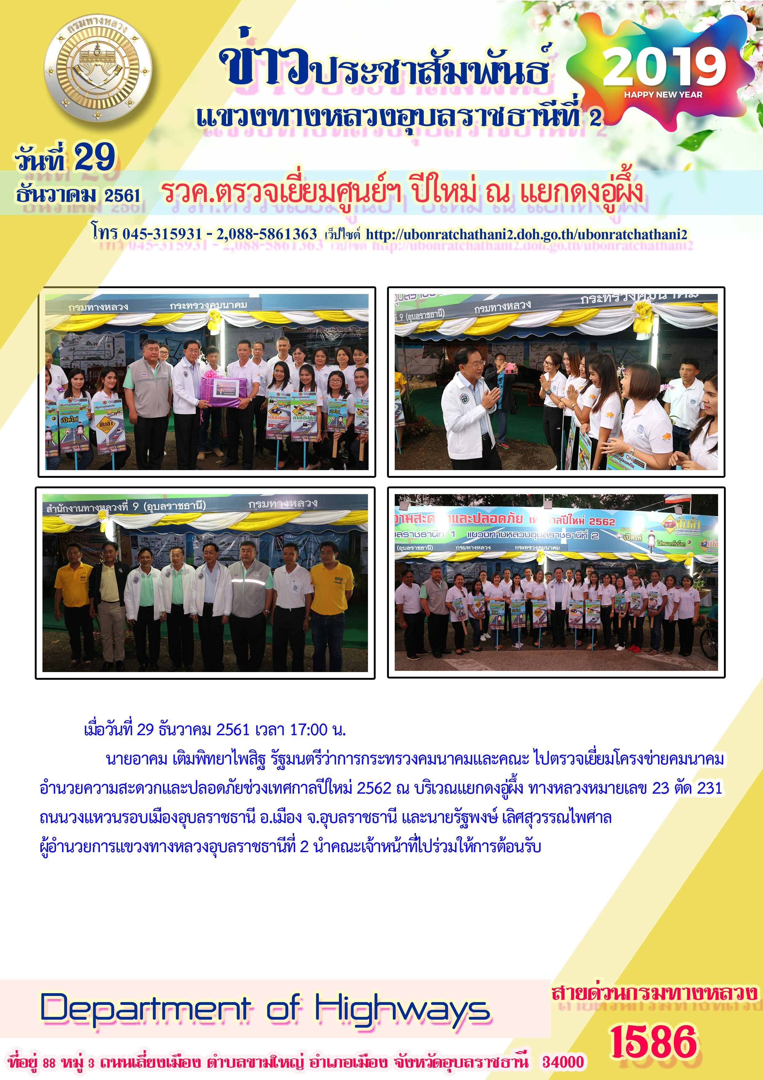 พิธีเปิดศูนย์ปฏิบัติการป้องกันและลดอุบัติเหตุทางถนนบริเวณหน้าหมวดทางหลวงเดชอุดม |