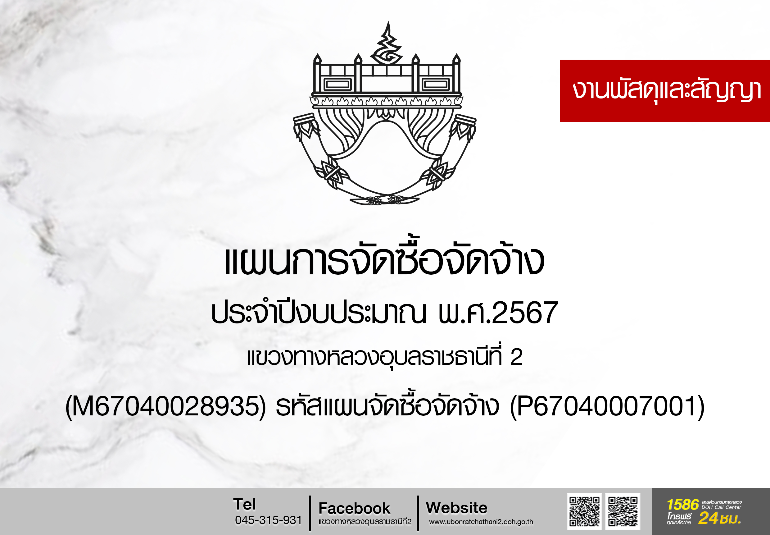 แผนการจัดซื้อจัดจ้าง ประจำปีงบประมาณ พ.ศ.2567 29 มีนาคม 2567 (M67030042967) รหัสแผนจัดซื้อจัดจ้าง (P67030063001)