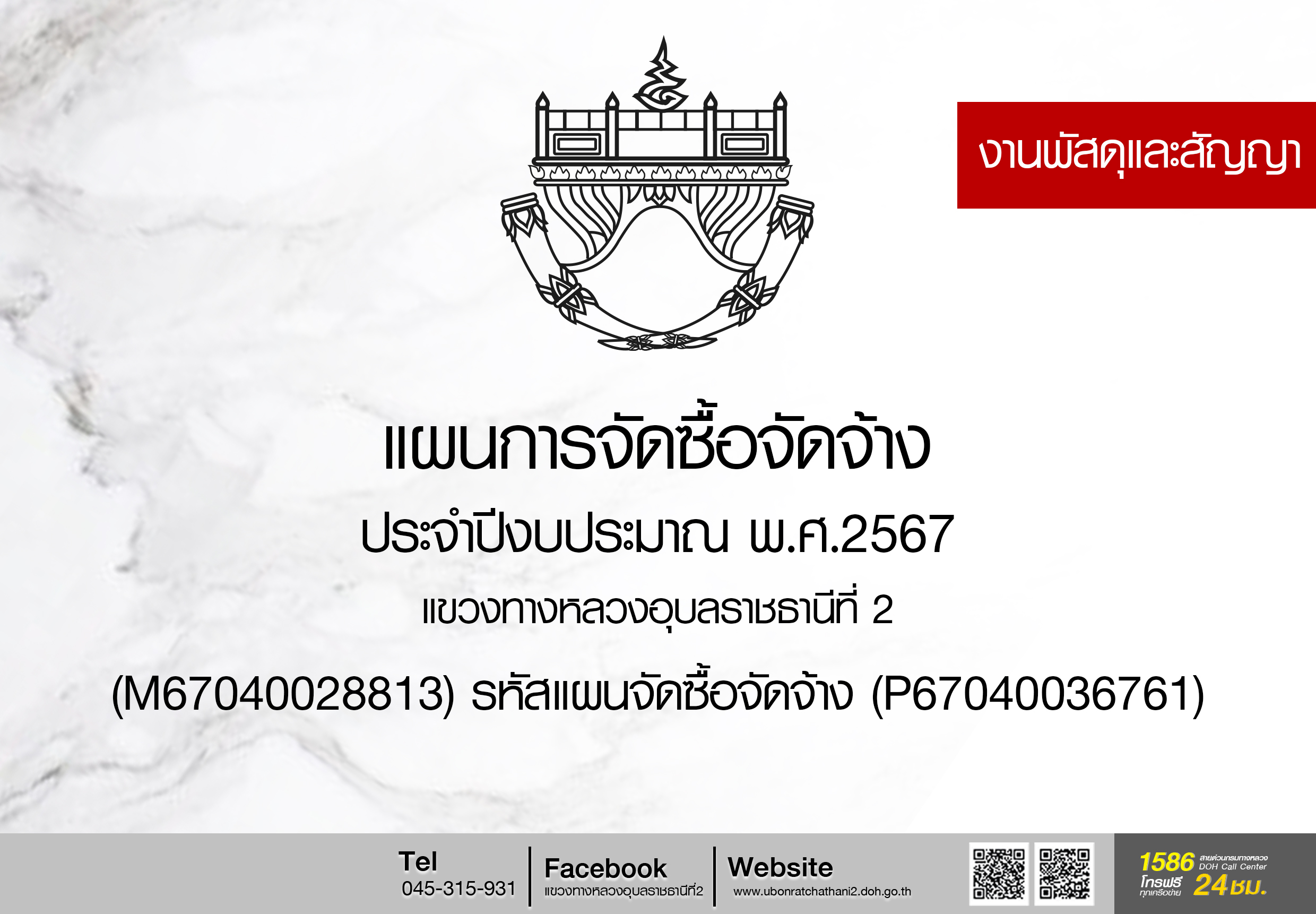 แผนการจัดซื้อจัดจ้าง ประจำปีงบประมาณ พ.ศ.2567 29 มีนาคม 2567 (M67030043022) รหัสแผนจัดซื้อจัดจ้าง (P67030063056)
