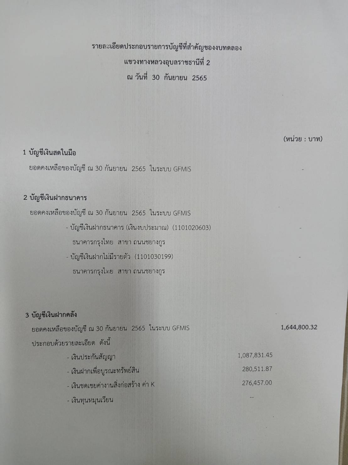 ข้อมูลข่าว : รายละเอียดประกอบรายการบัญชีที่สำคัญของงบทดลอง ณ วันที่ 30 กันยายน 2565