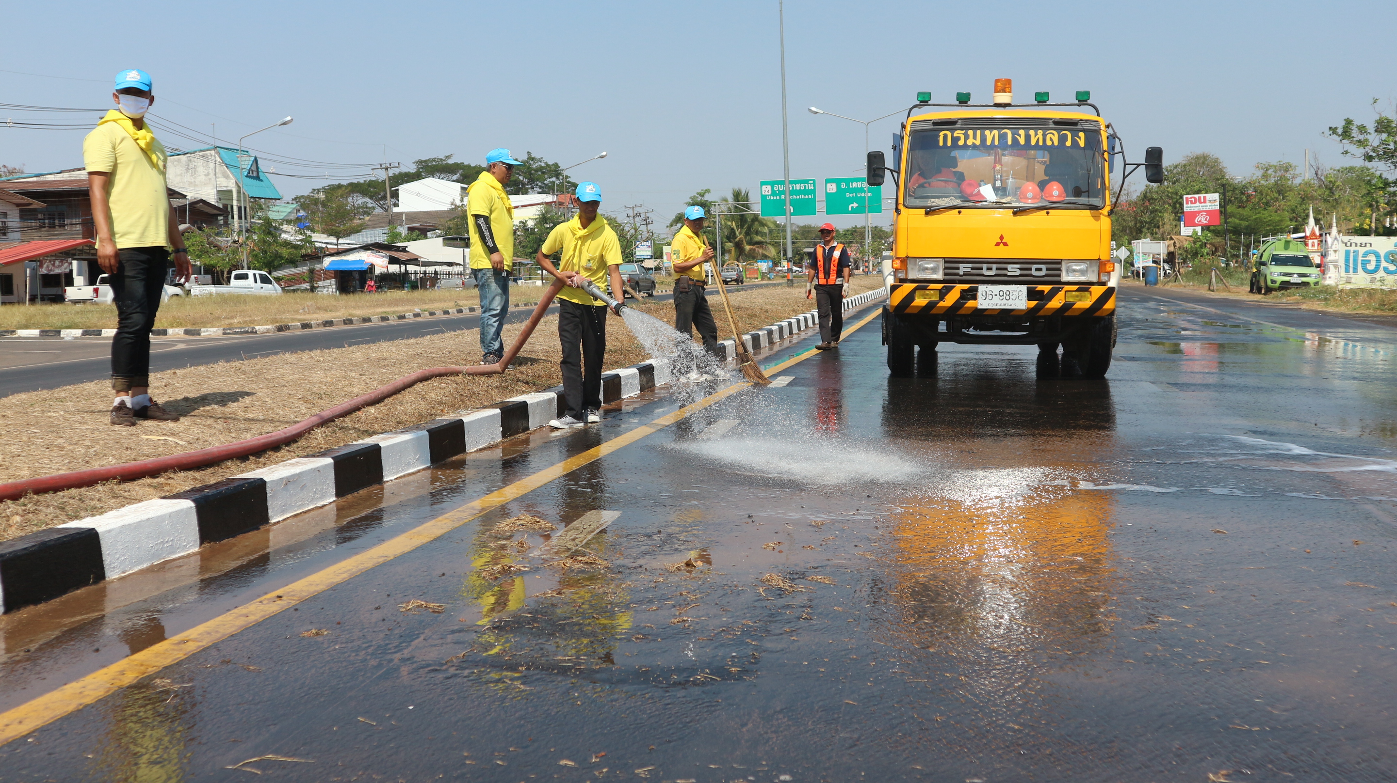 นายรัฐพงษ์ เลิศสุวรรณไพศาล ผู้อำนวยการแขวงทางหลวงอุบลราชธานีที่ 2 นำคณะเจ้าหน้าที่หมวดทางหลวงเดชอุดม และเจ้าหน้าที่แขวงทางหลวงอุบลราชธานีที่ 2 ร่วมรณรงค์ตามมาตรการป้องกันและแก้ไขปัญหาฝุ่นละอองขนาดเล็ก PM 2.5 โดยได้ใช้รถฉีดน้ำล้างทำความสะอาด ทางหลวงหมายเลข 24 บริเวณหน้าโรงพยาบาลสมเด็จพระยุพราชเดชอุดม อำเภอเดชอุดม จังหวัดอุบลราชธานี รวมระยะทาง 1 กม.